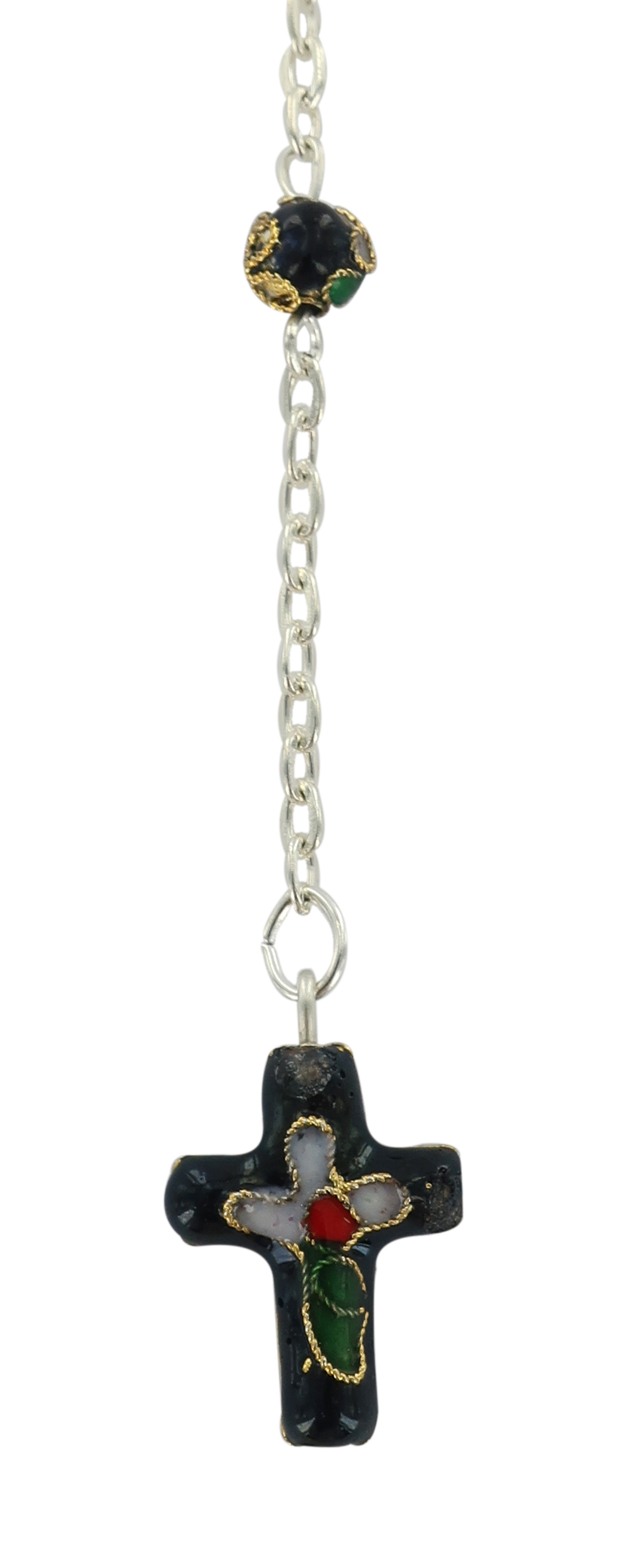 Bracciale Rosario cloisonnè con 11 grani di diametro 5 mm e croce di altezza 2 cm con base di colore