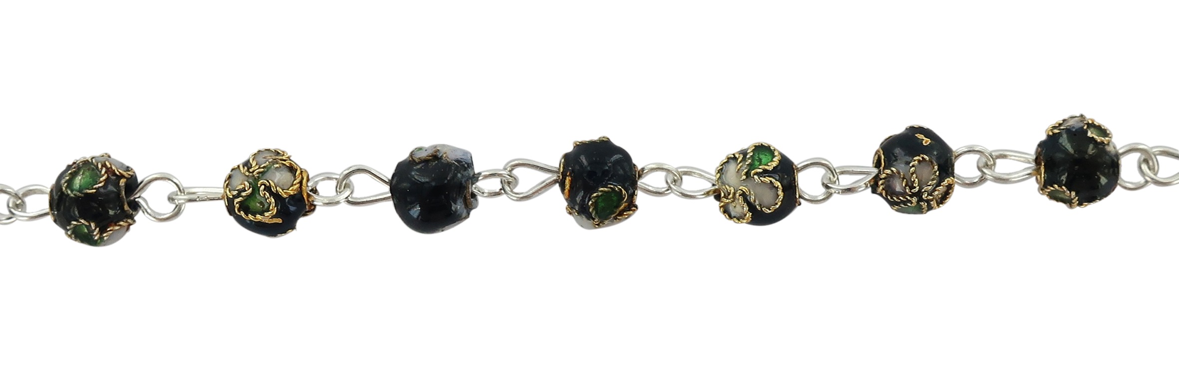 Braccialetto cloisonnè con 11 grani da Ø 5 mm e croce - nero