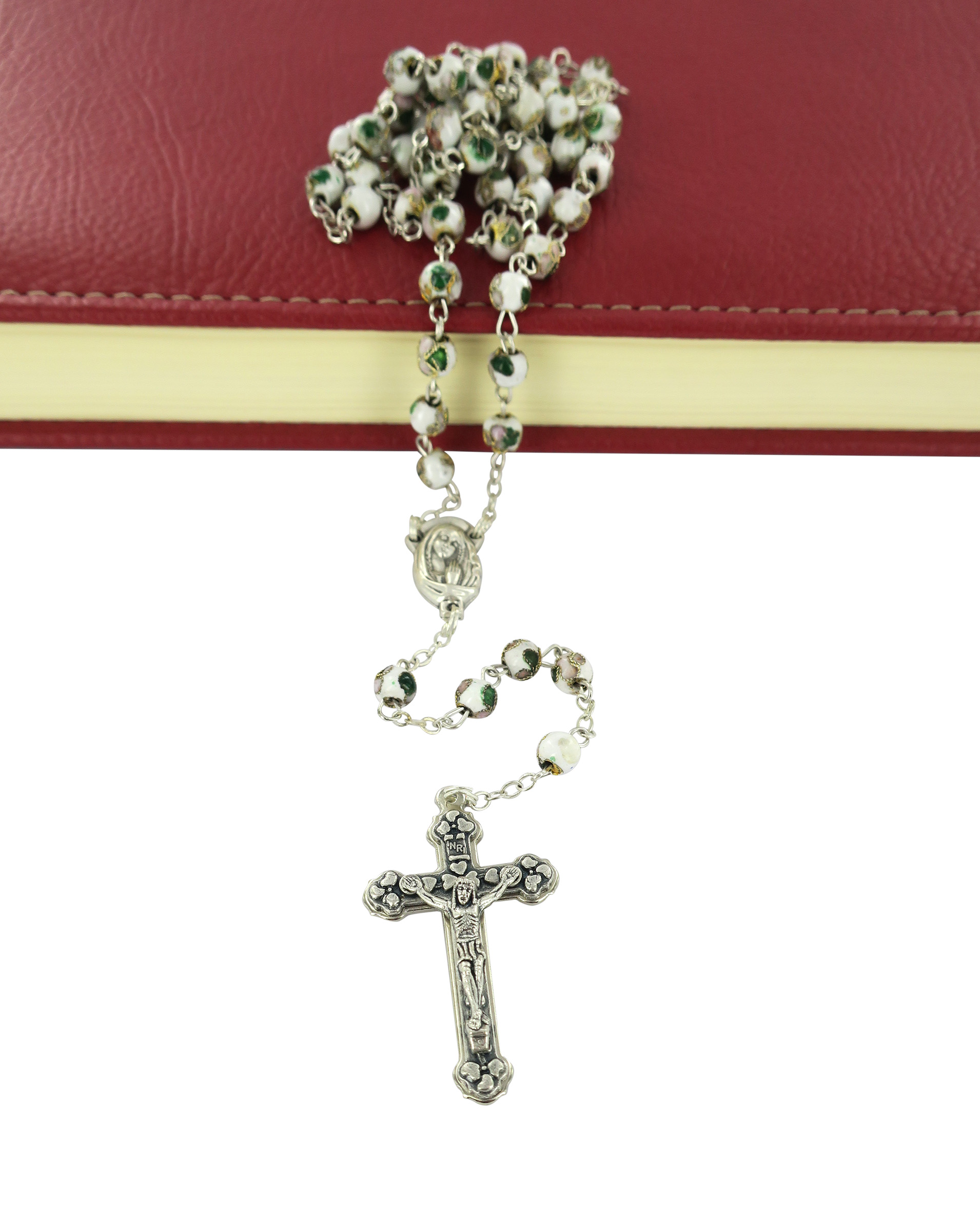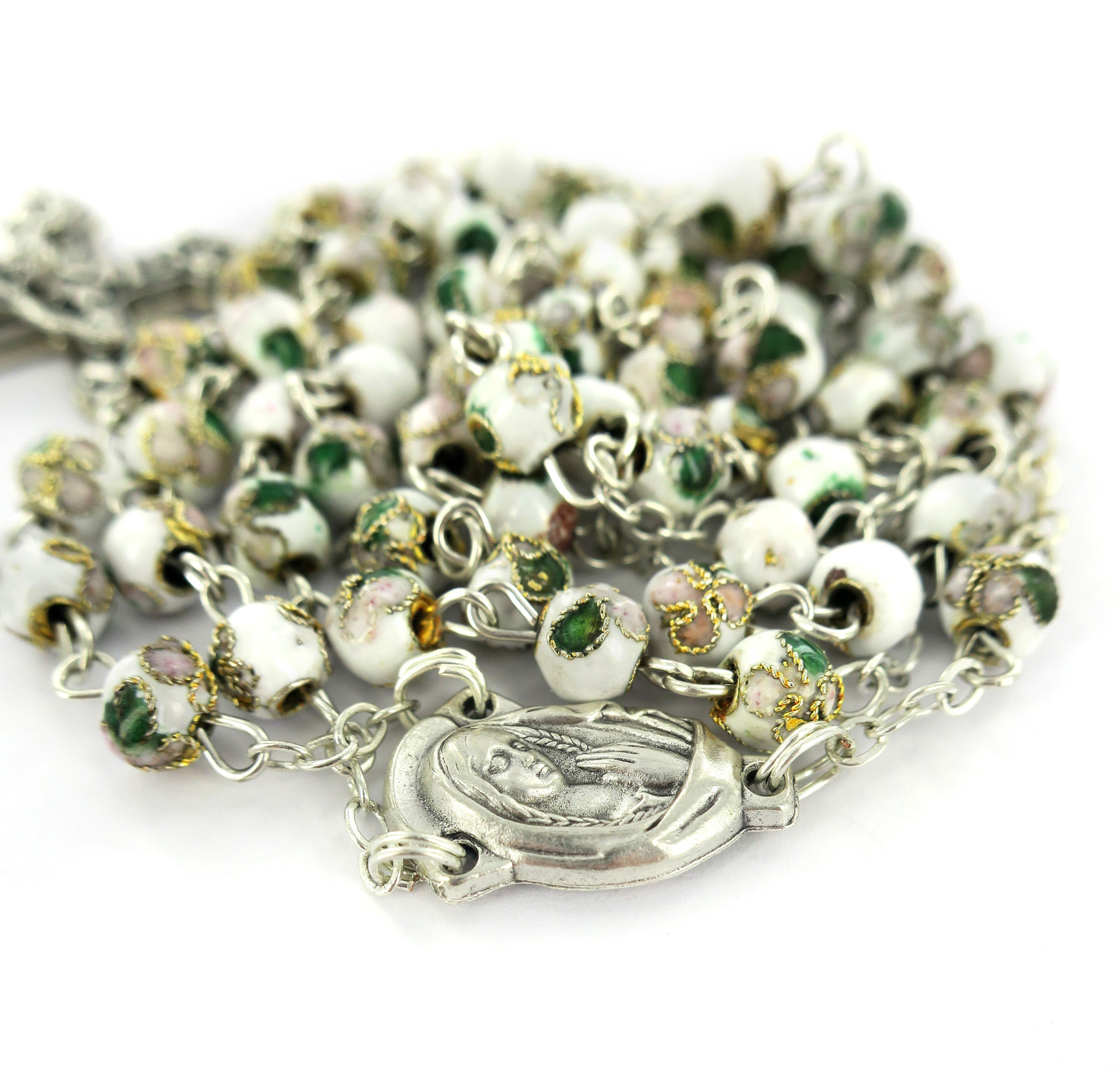 Rosario cloisonnè con grani da Ø 5 mm - bianco