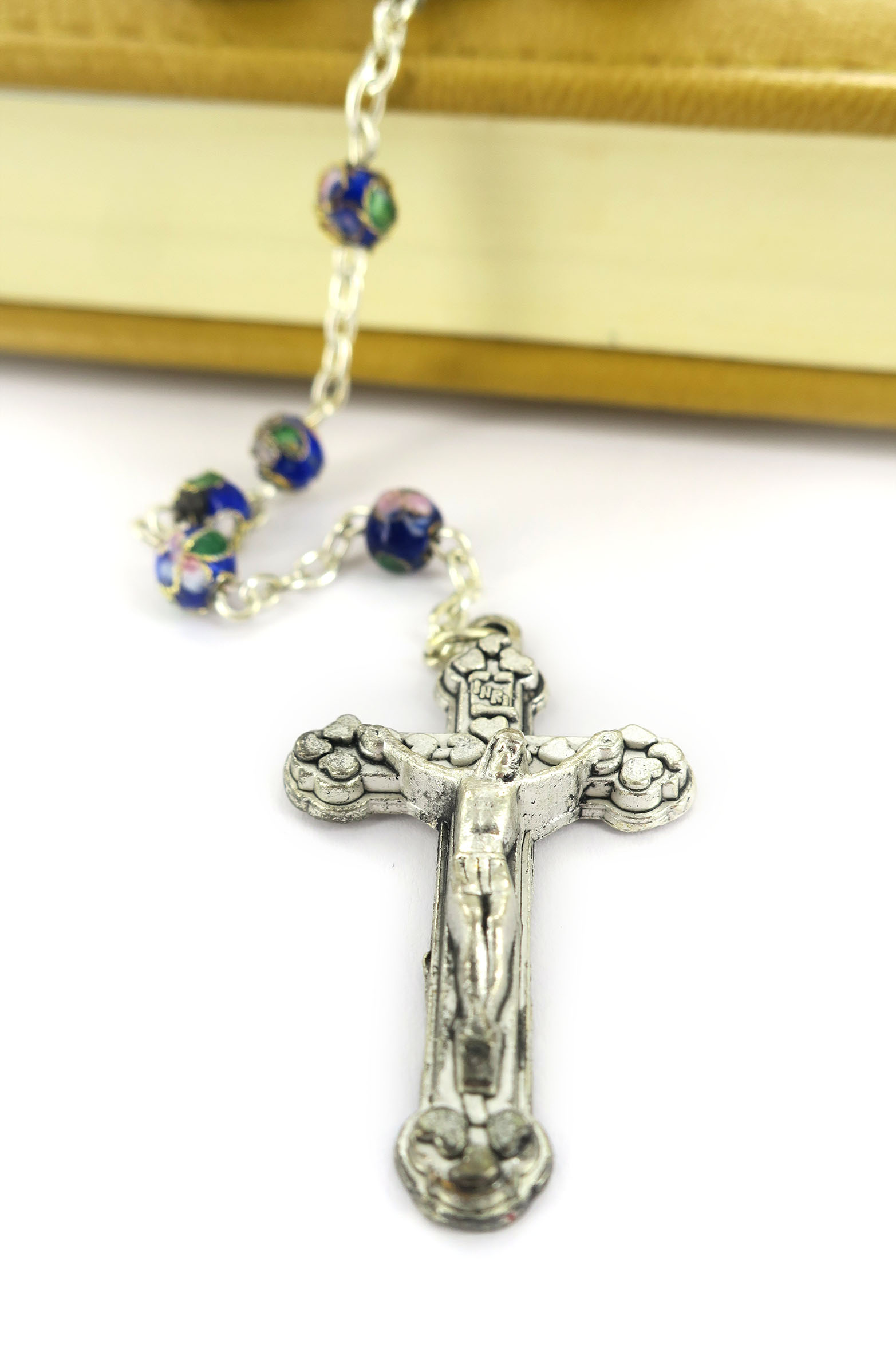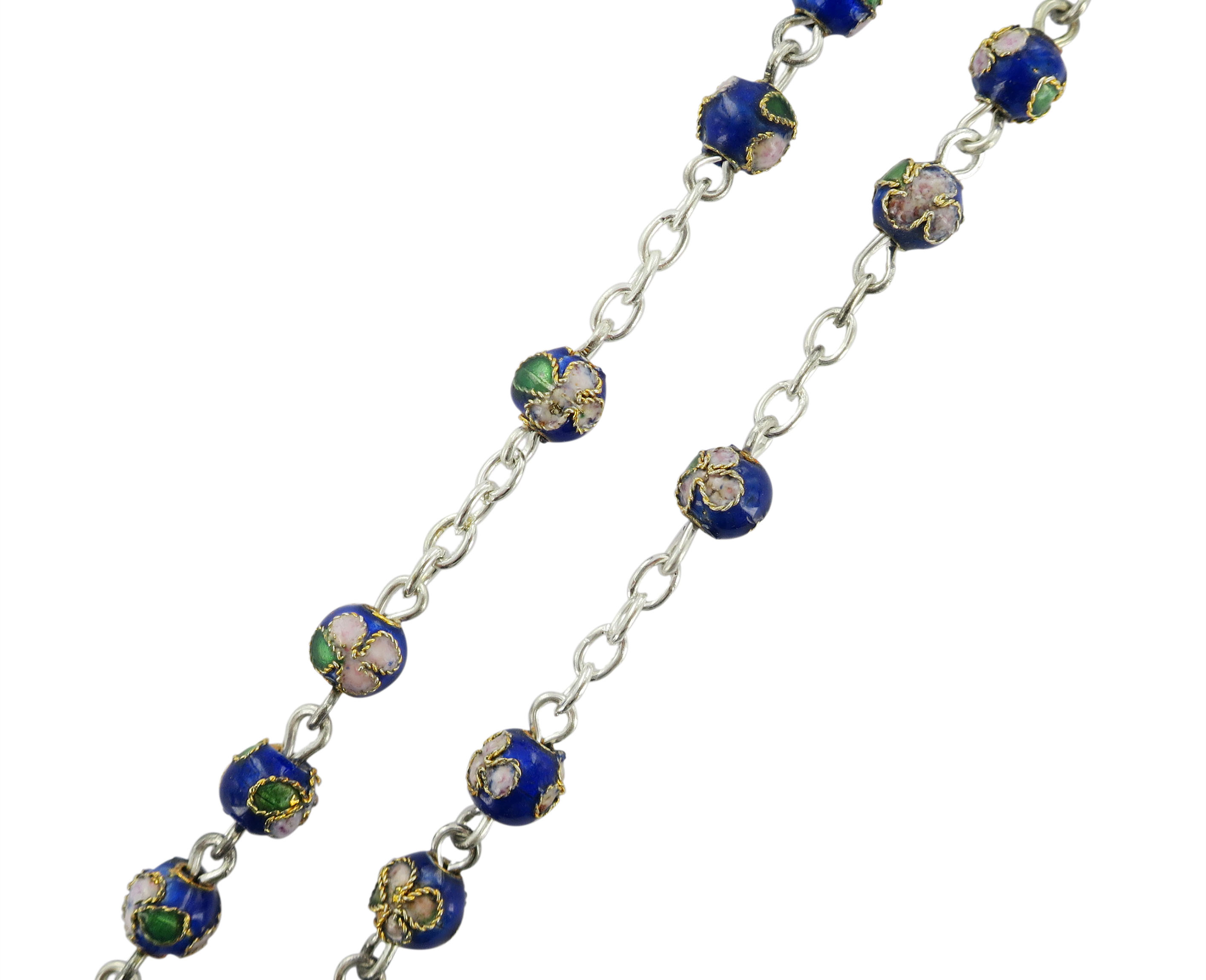 Rosario in cloisonnè con grani tondi da 5 mm di diametro.