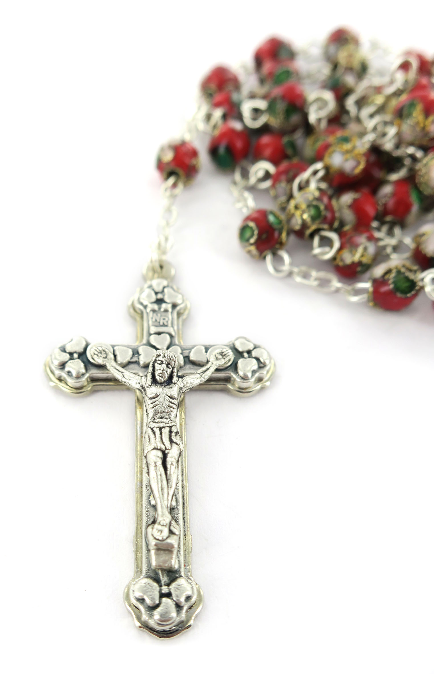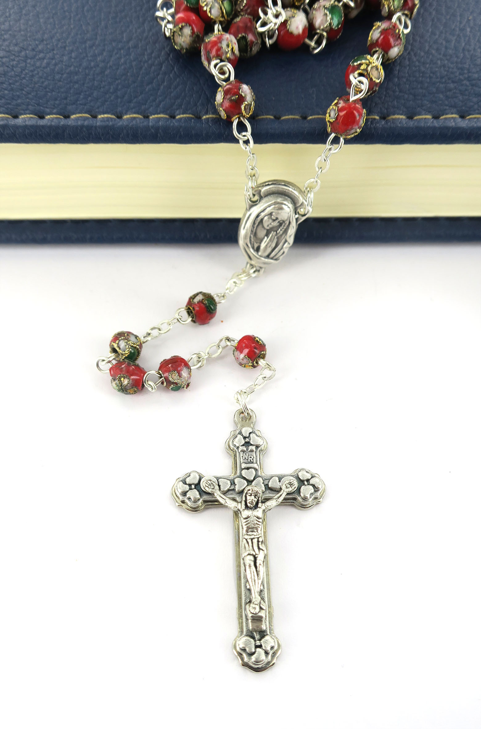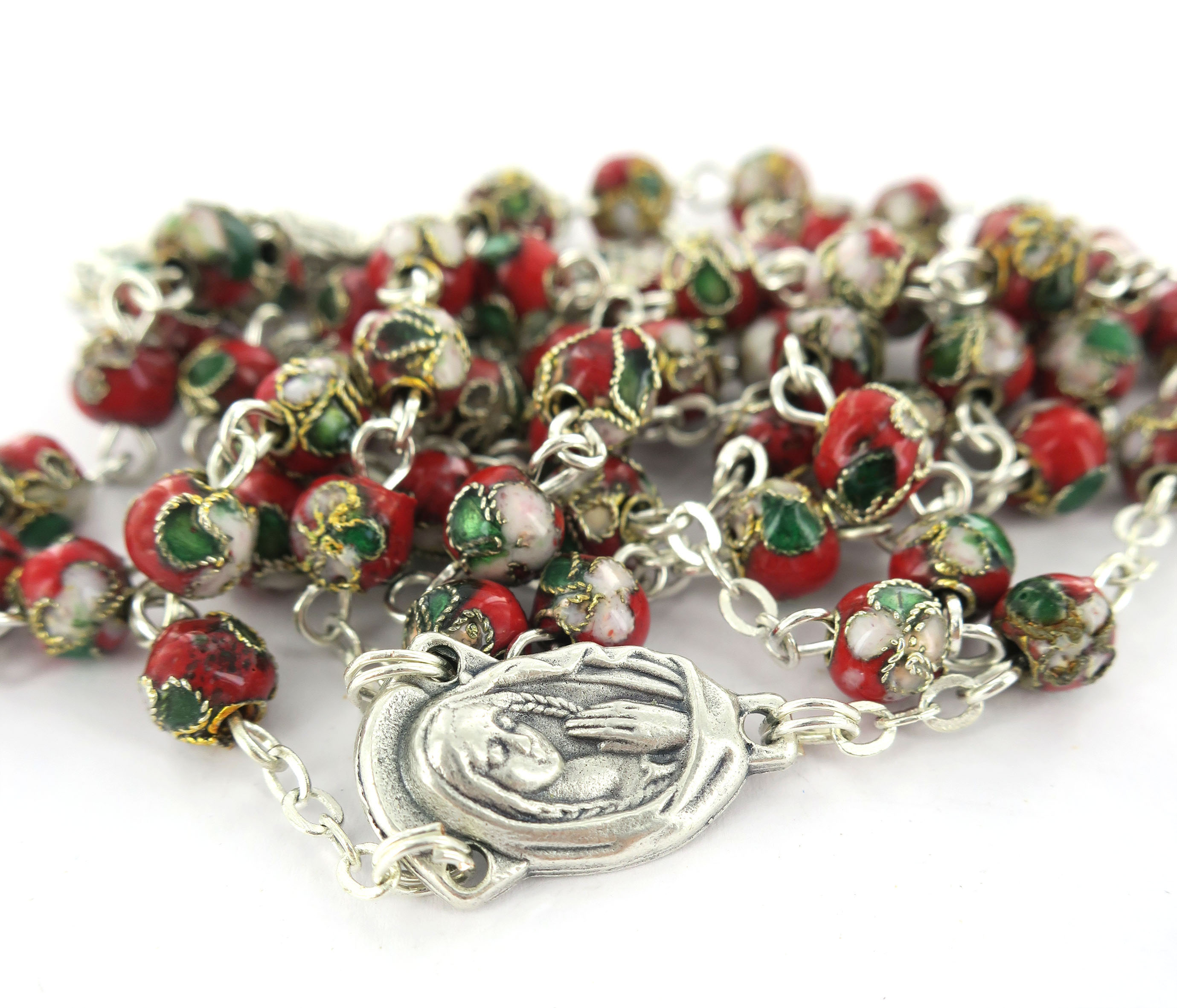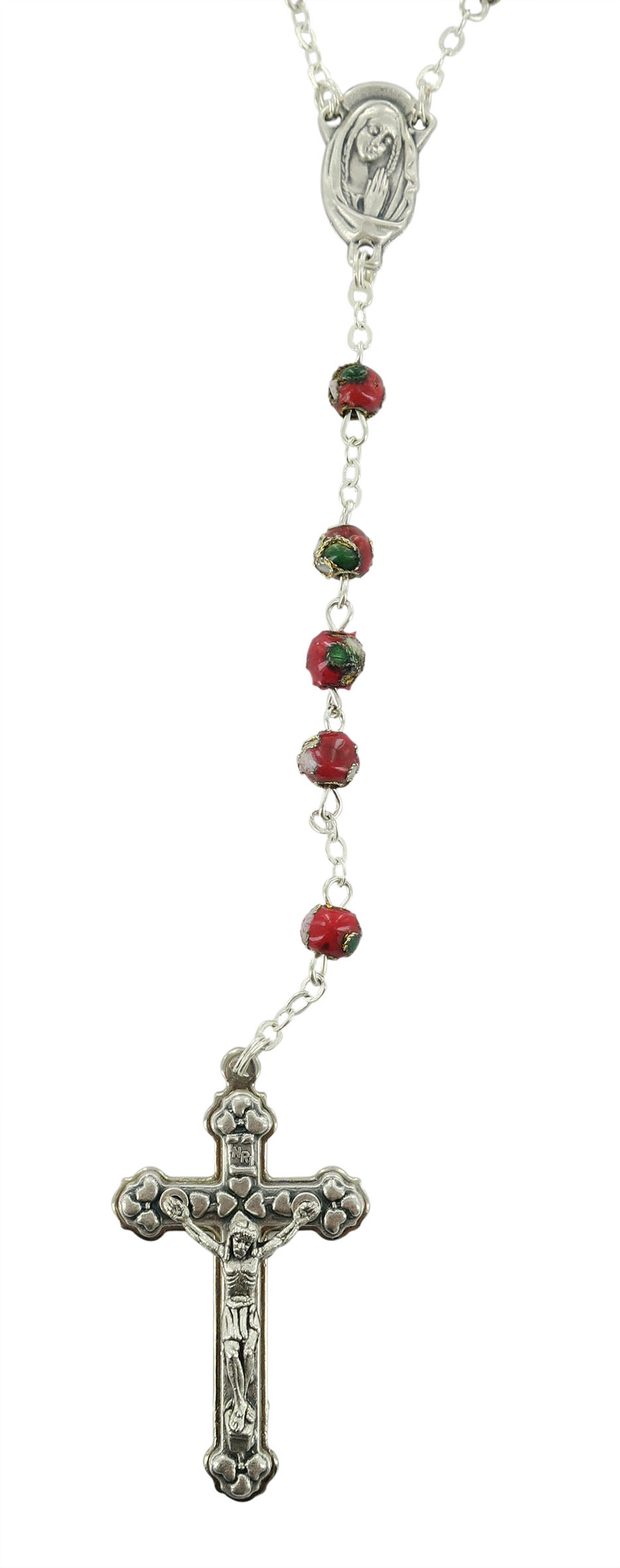Rosario cloisonnè con grani da Ø 5 mm - rosso