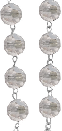 Prezioso rosario in cristallo sfaccettato bianco con legatura in argento 925 con grani di diametro 5 mm.