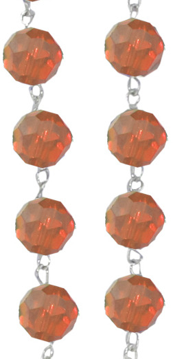 Prezioso rosario in cristallo sfaccettato rosa con legatura in argento 925 con grani di diametro 5 mm.