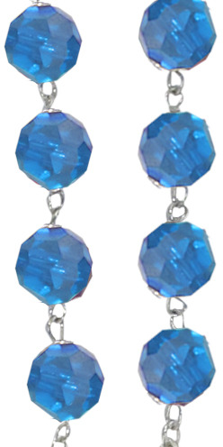 Rosario con grani in cristallo sfaccettato da Ø 7 mm color azzurro con legatura in argento 925