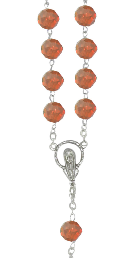 Prezioso rosario in cristallo sfaccettato color ametista con legatura a mano in argento 925 con grani di diametro 7 mm. Il grano è pieno, brillante e luminoso.