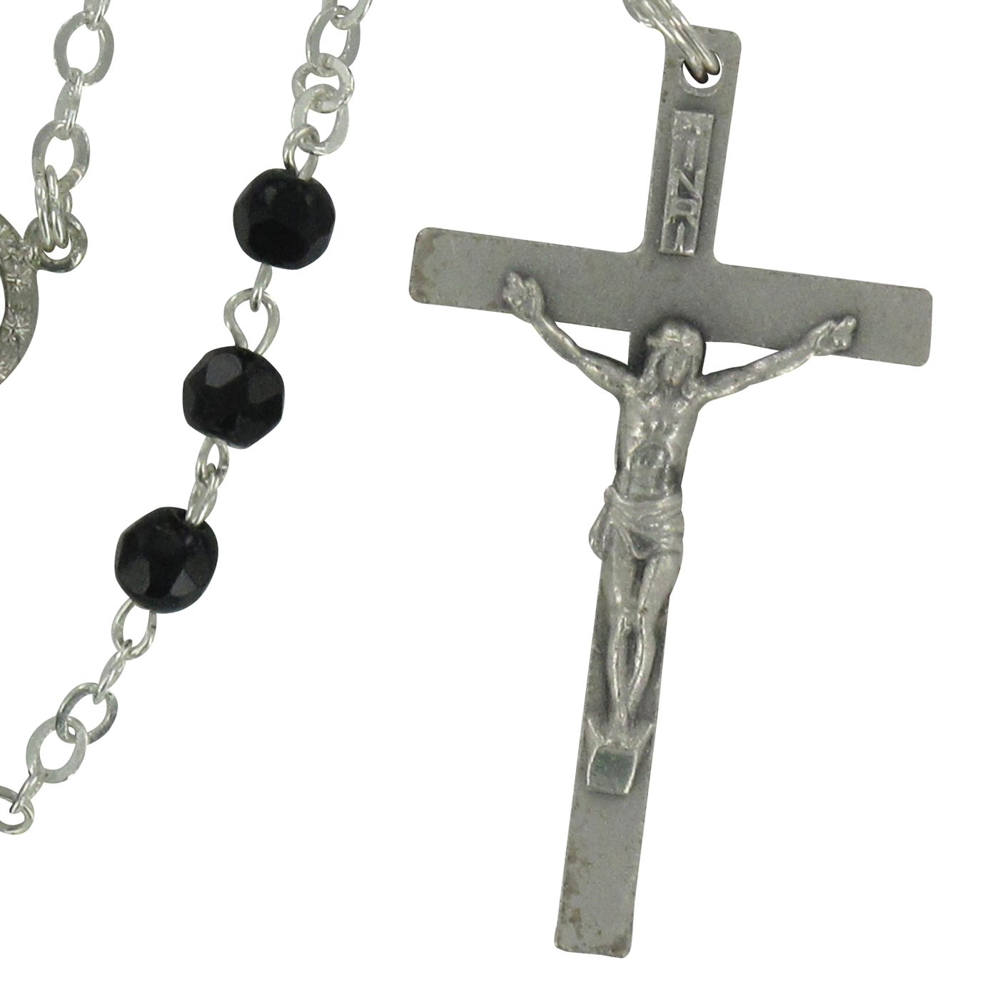 Rosario con grani in semicristallo nero, diametro 4 mm.