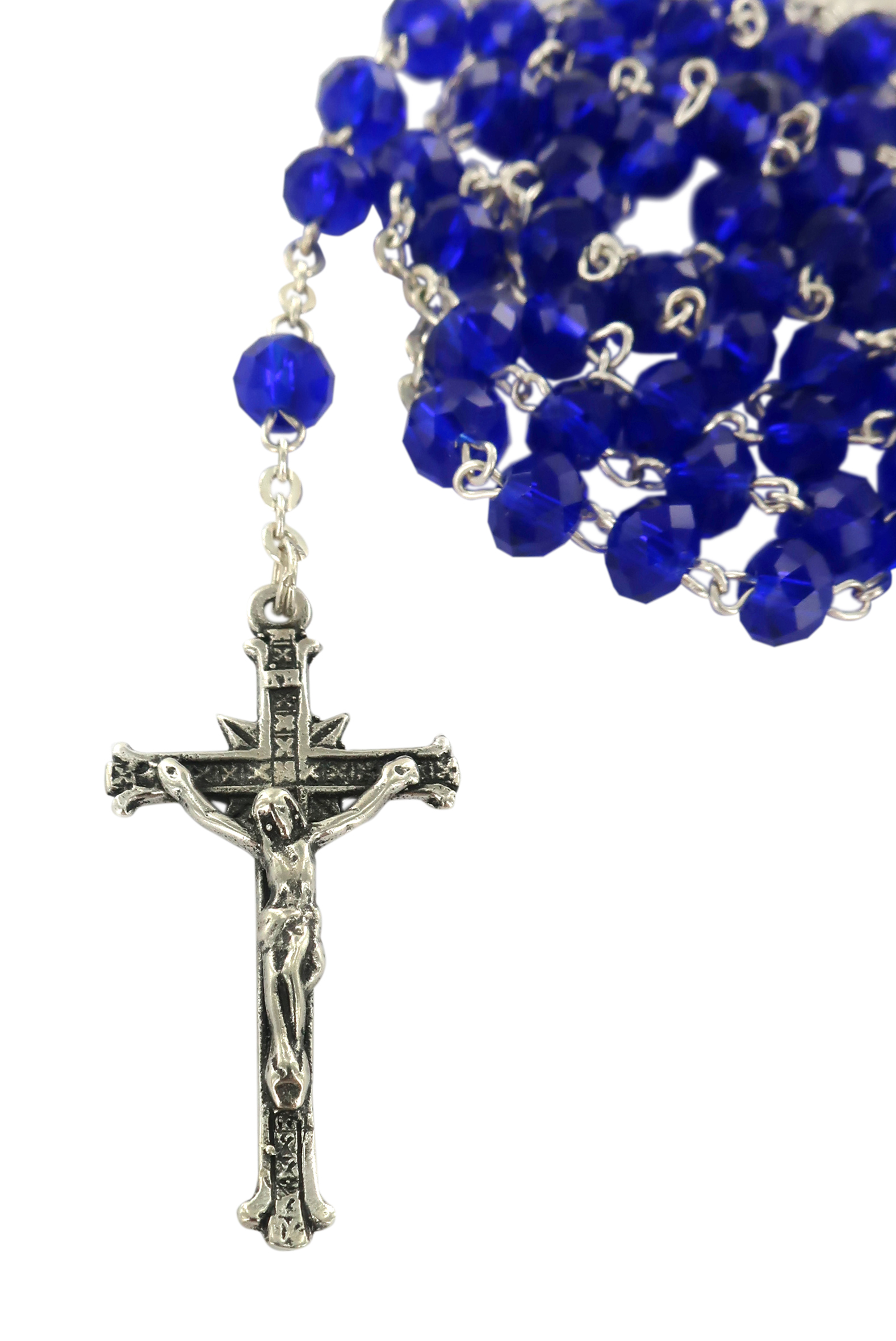 Rosario cristallo sfaccettato opacizzato con grani mm 6 color blu legatura in argento 925