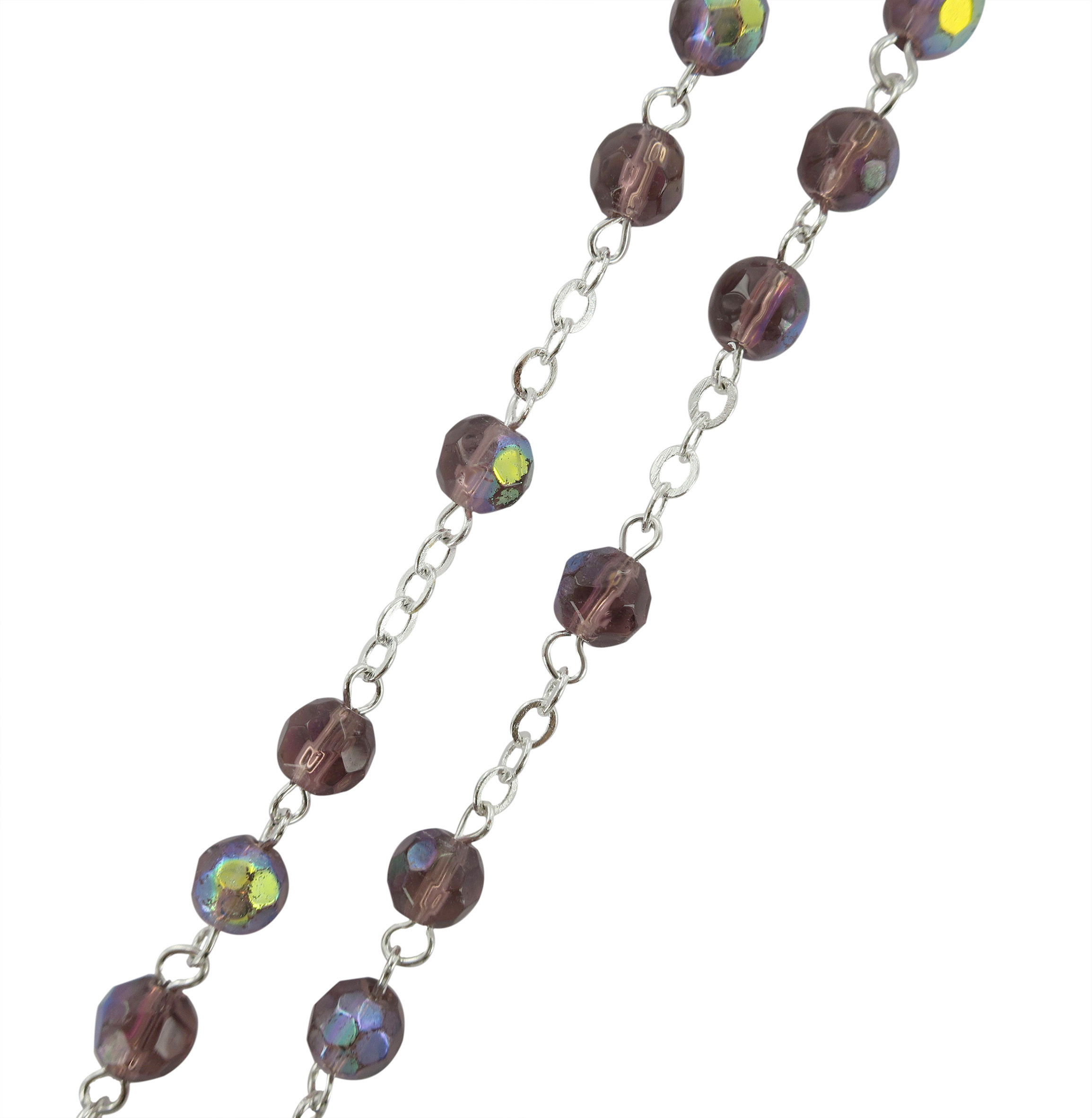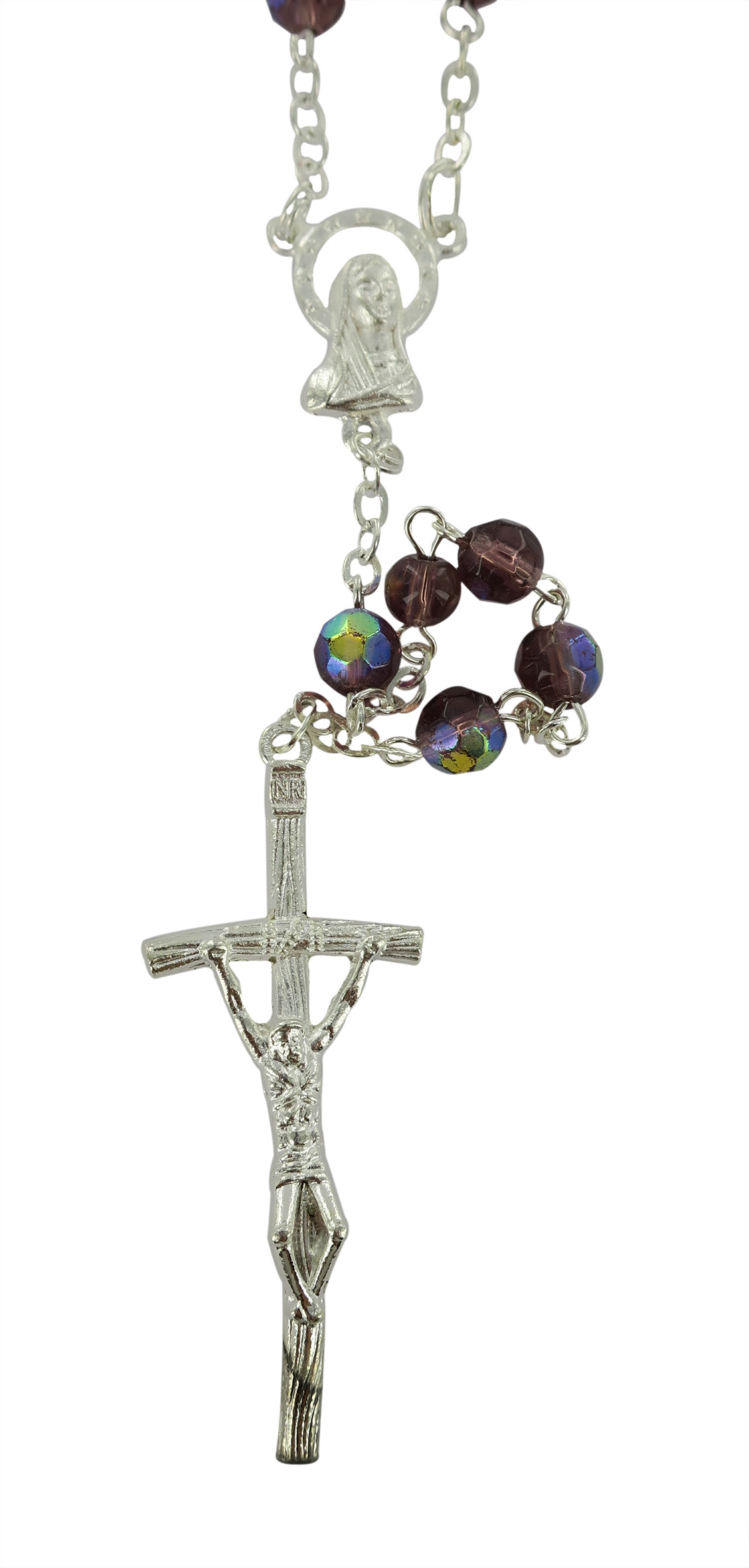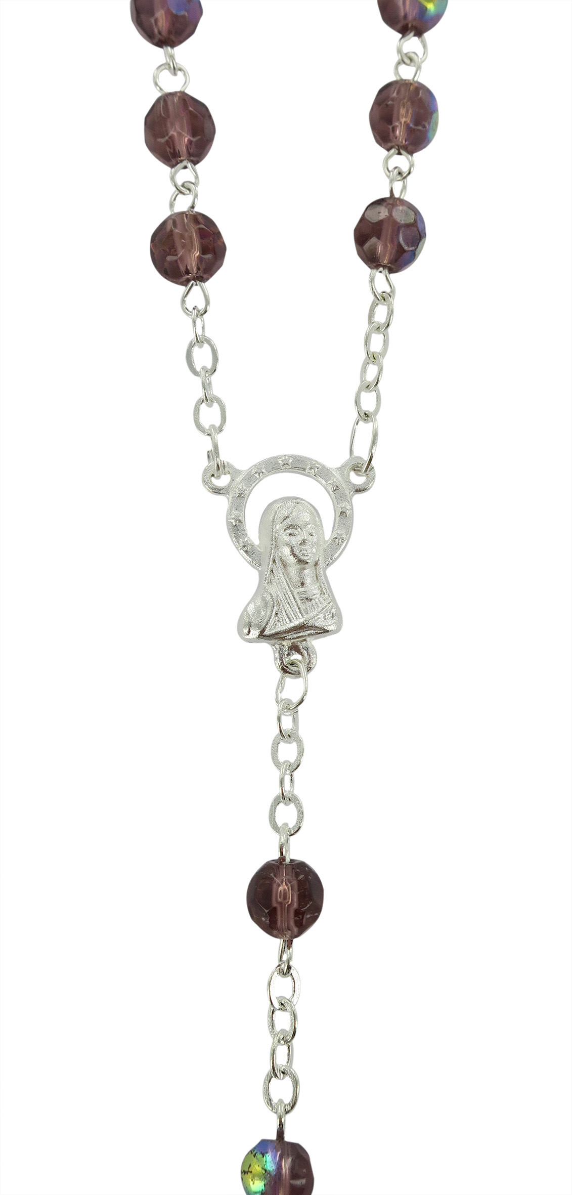 Rosario con grani in semicristallo di colore ametista la cui misura è 6 millimetri.