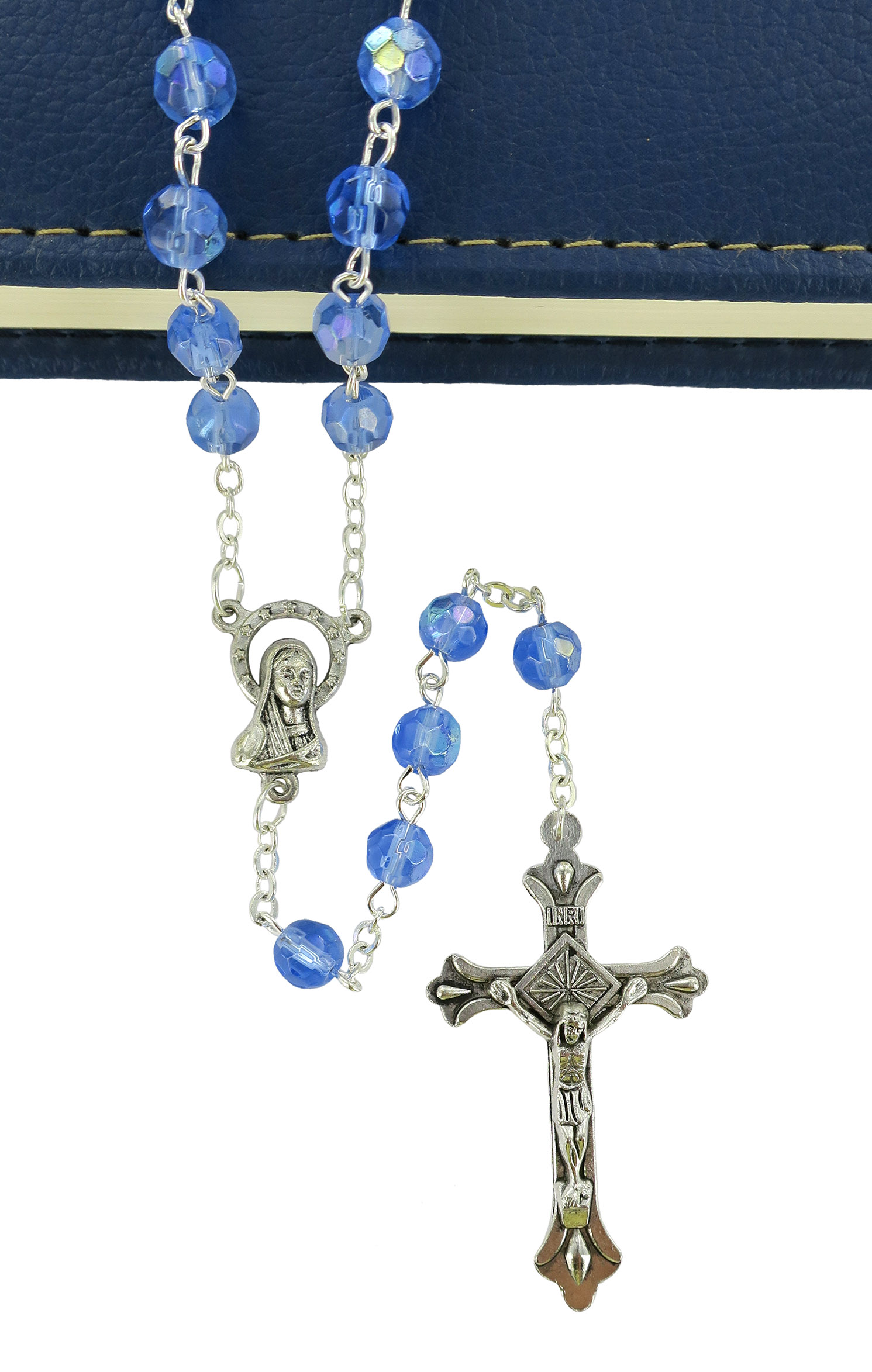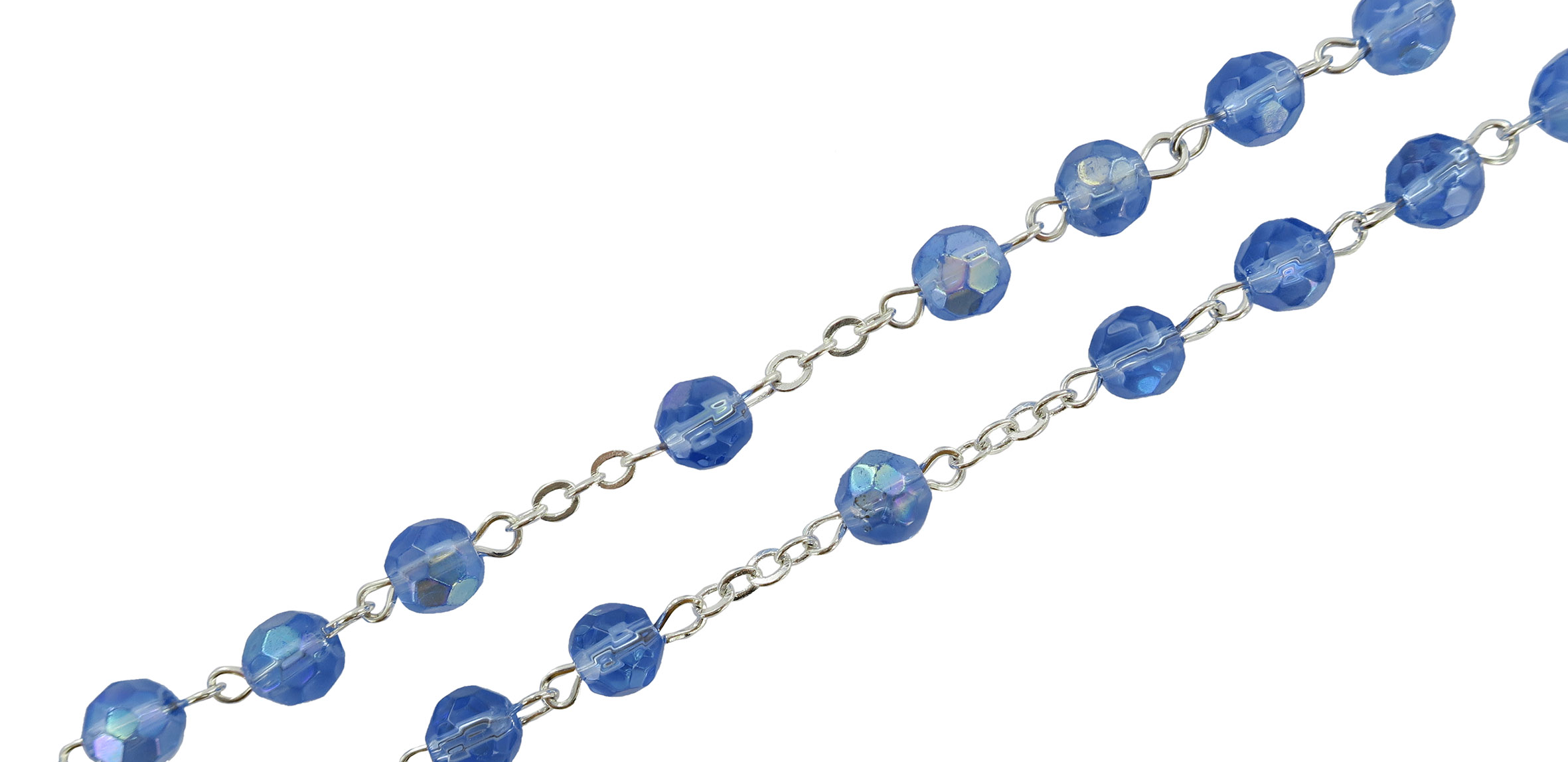Rosario semicristallo azzurro mm 6 con legatura in metallo