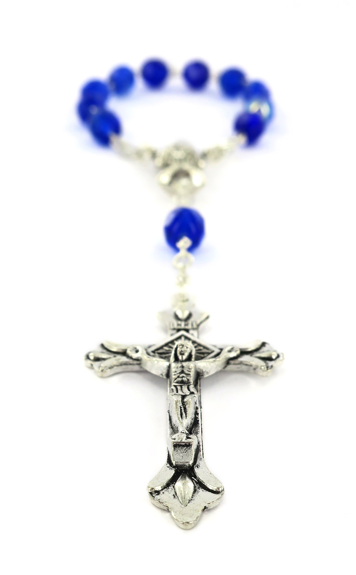 Decina 11 grani vetro sfaccettato blu mm 7 con crociera calice