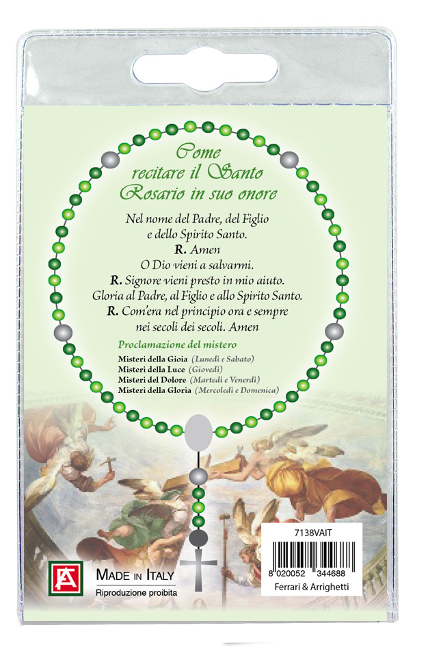Sul retro del cartoncino è spiegato come si recita il rosario.