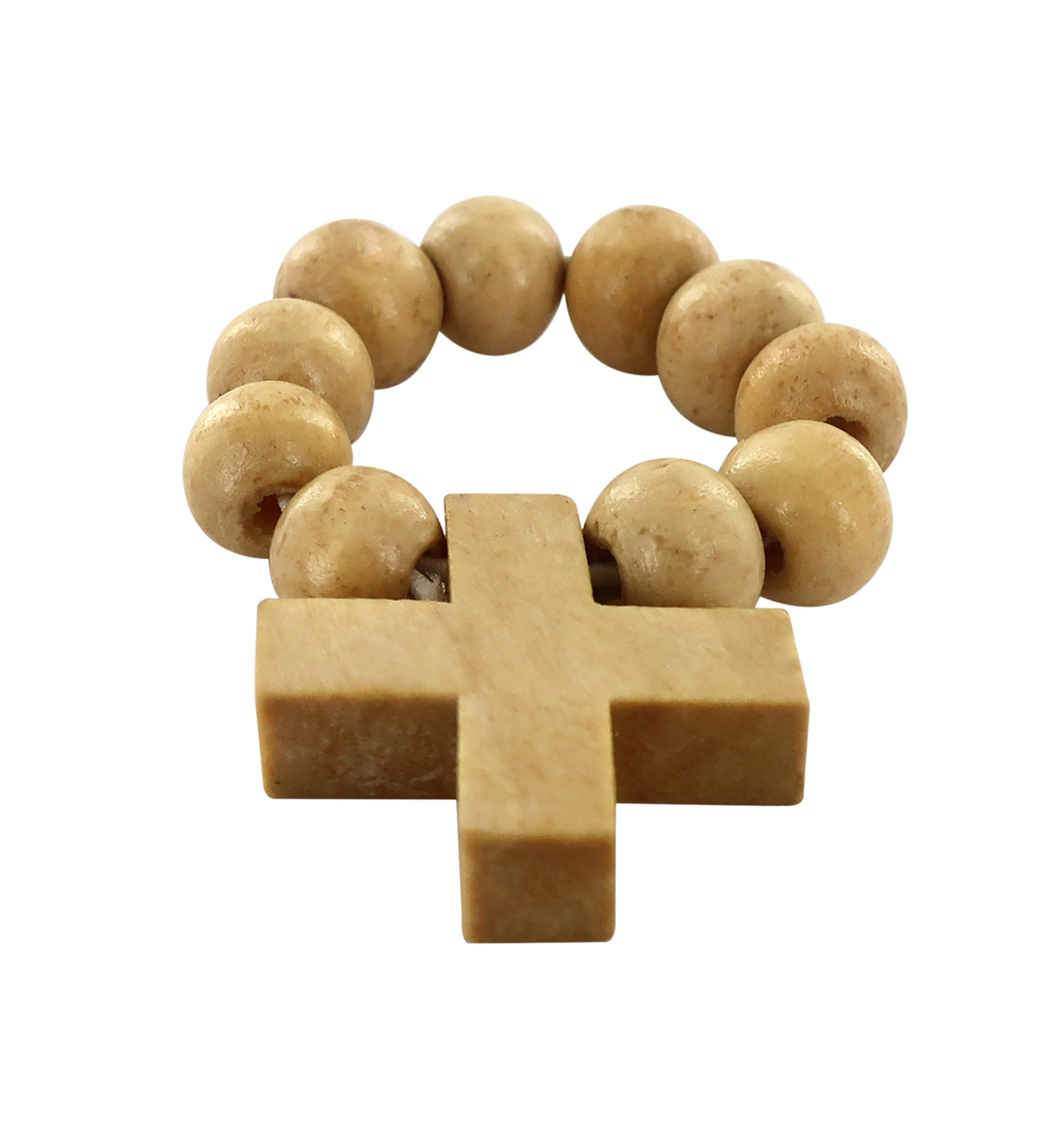 Rosario decina 10 grani in legno tondo legatura elastico - grezzo con croce