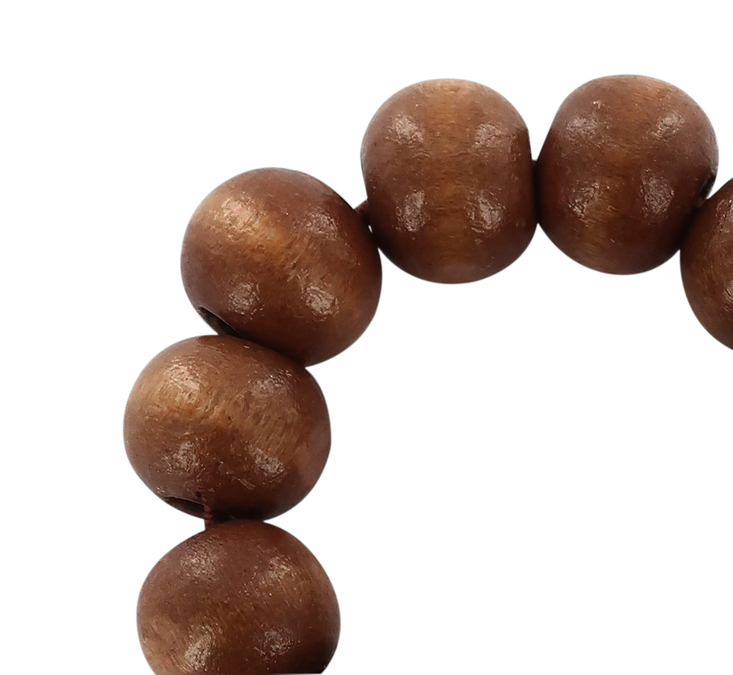 Rosario decina 10 grani in legno tondo legatura elastico - naturale