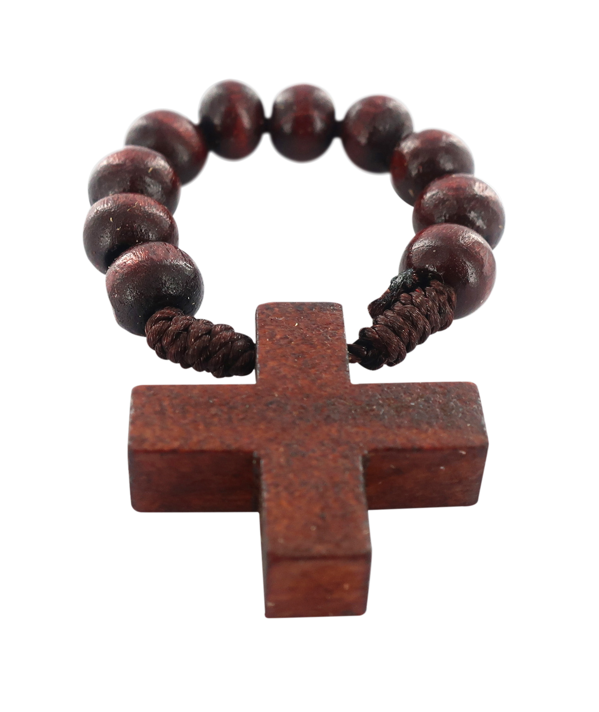 Rosario decina 10 grani in legno tondo legatura seta mm 6- palissandro con croce