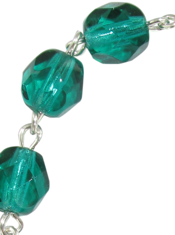 Rosario decina 10 grani in semicristallo croce tipo filigrana mm 6 - verde