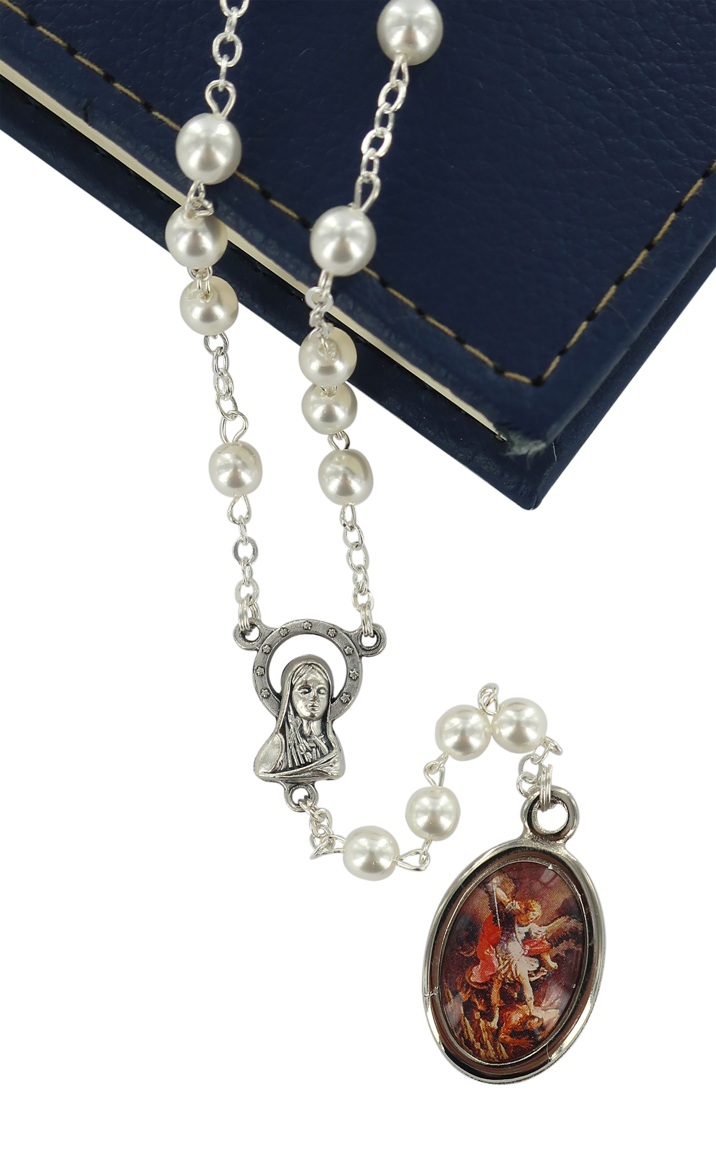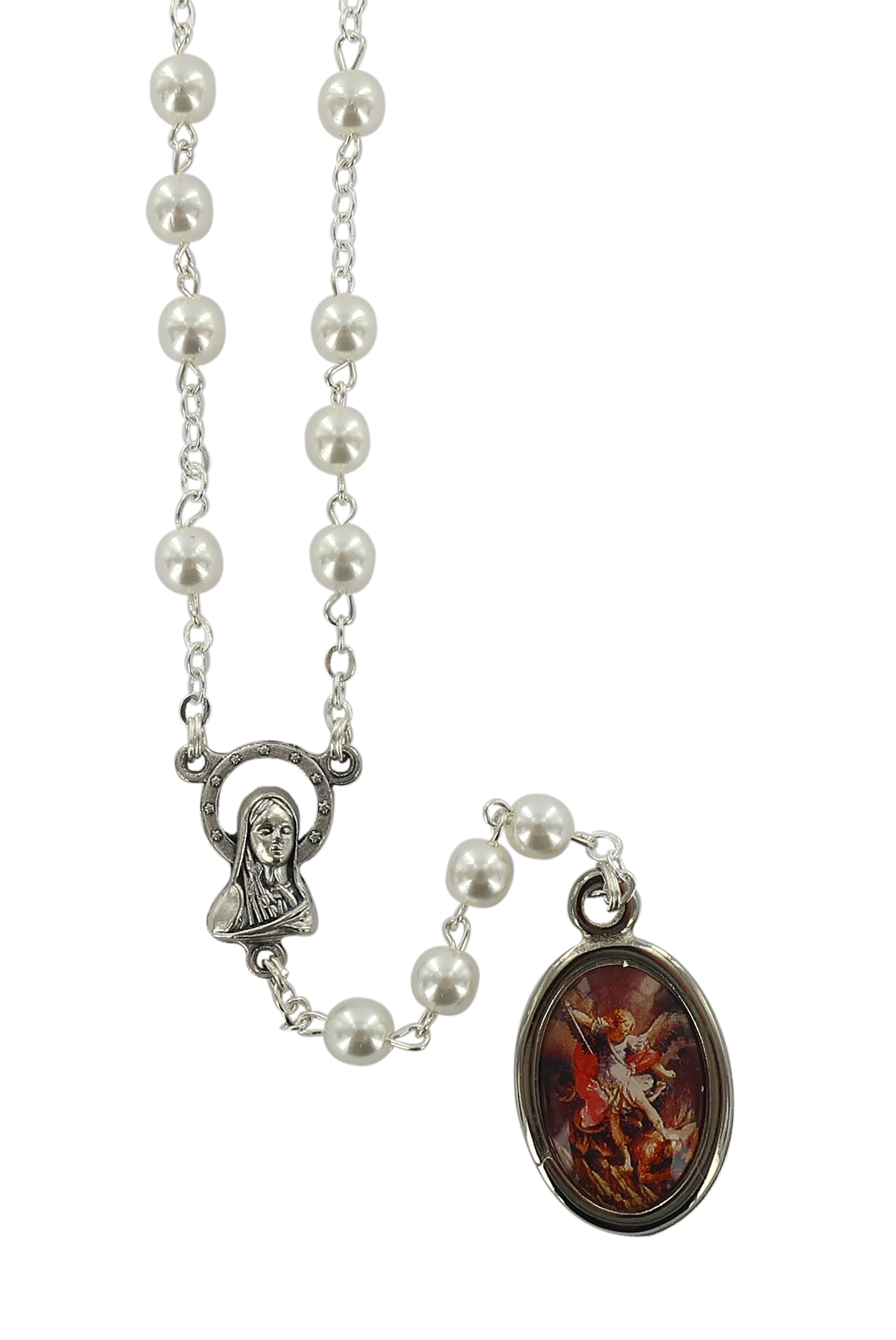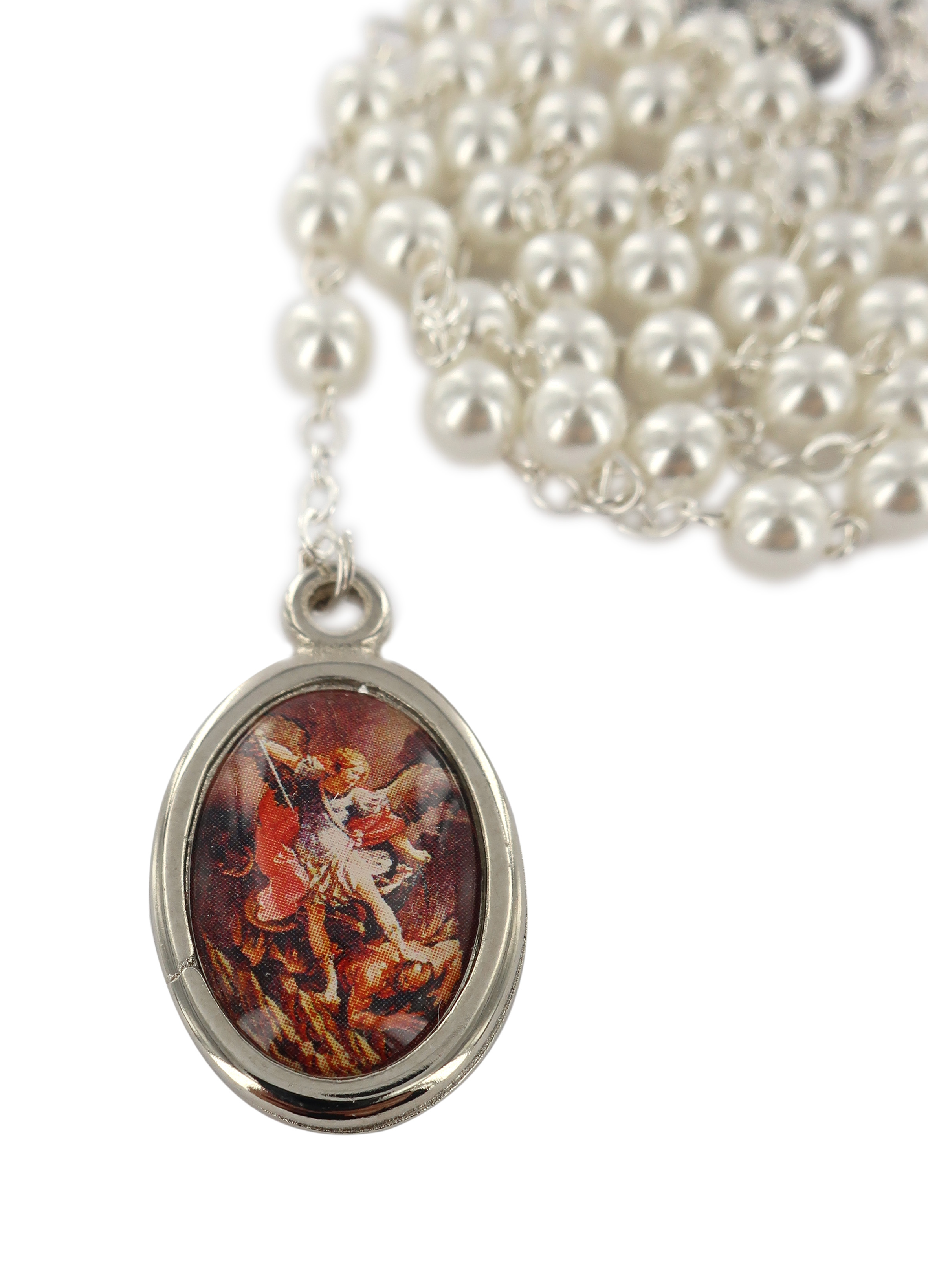 Rosario San Michele (angelica) con legatura a mano in metallo e spiegazione