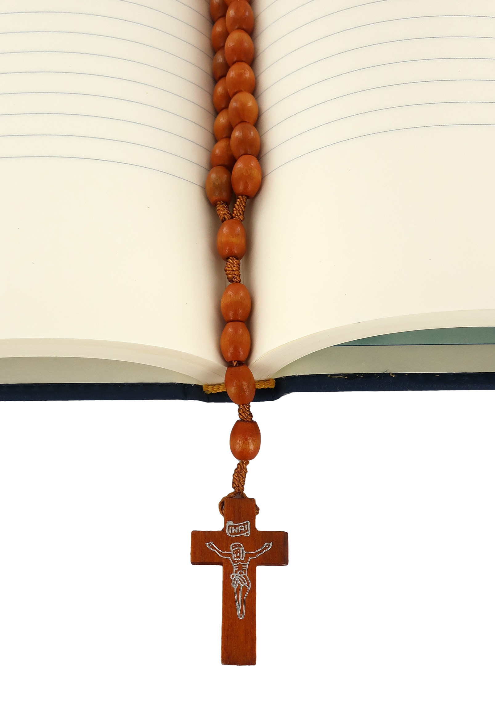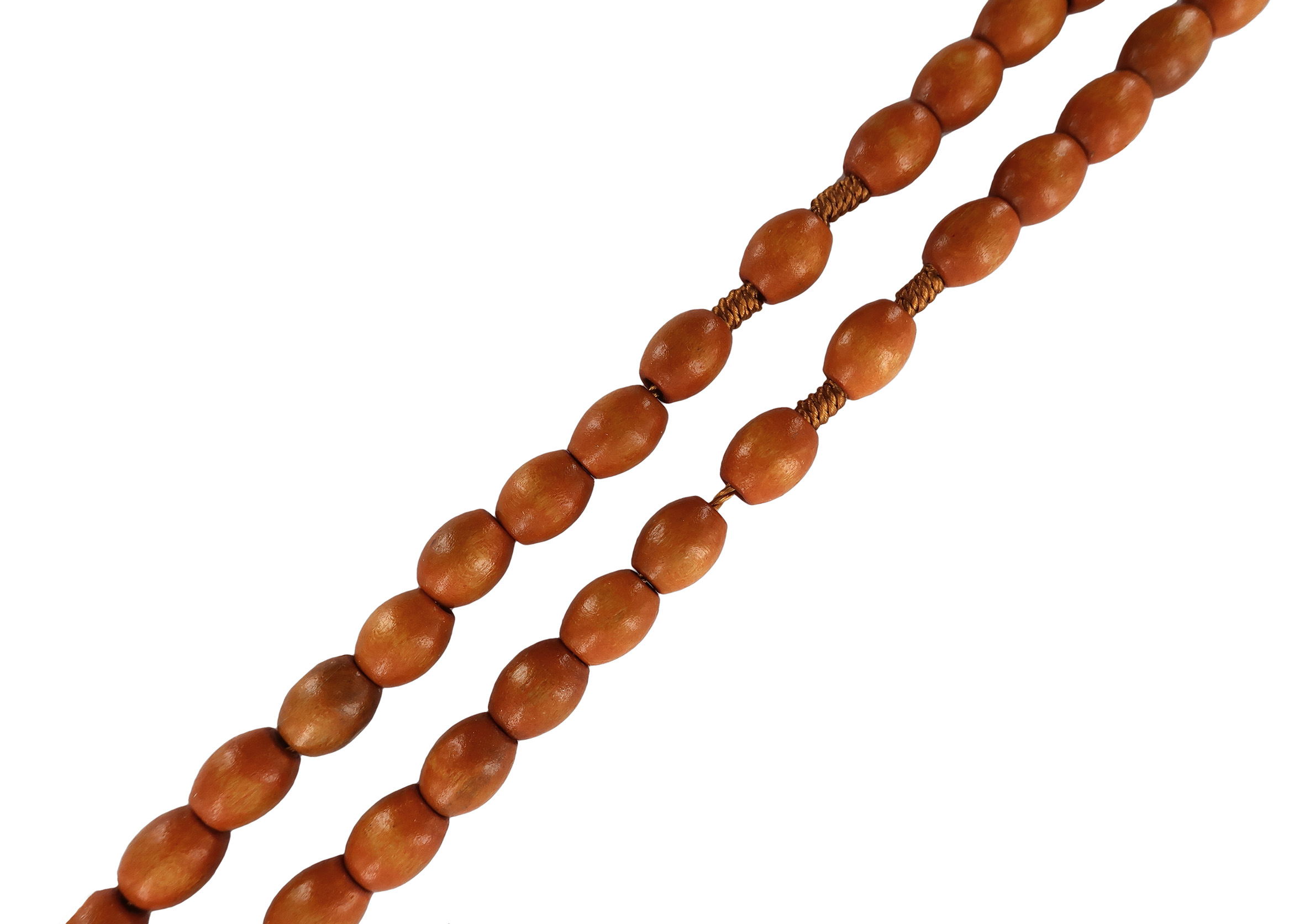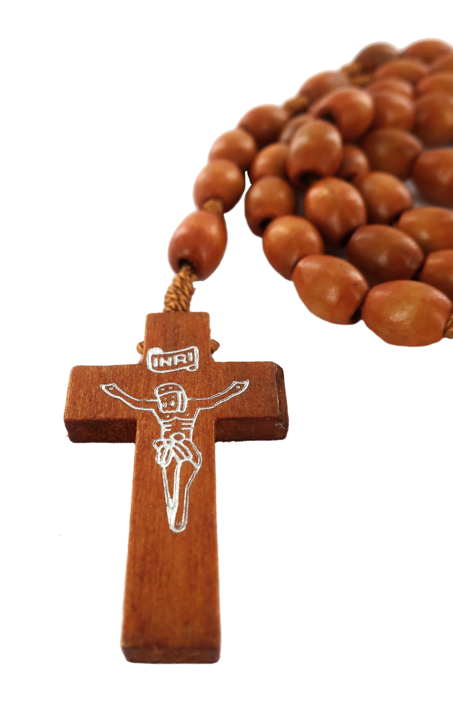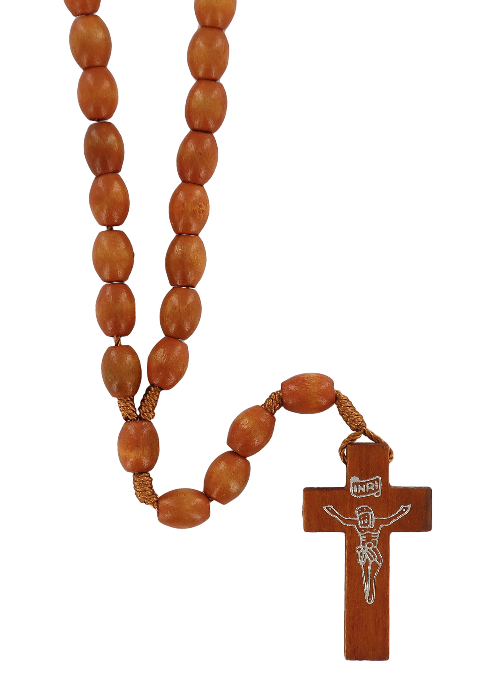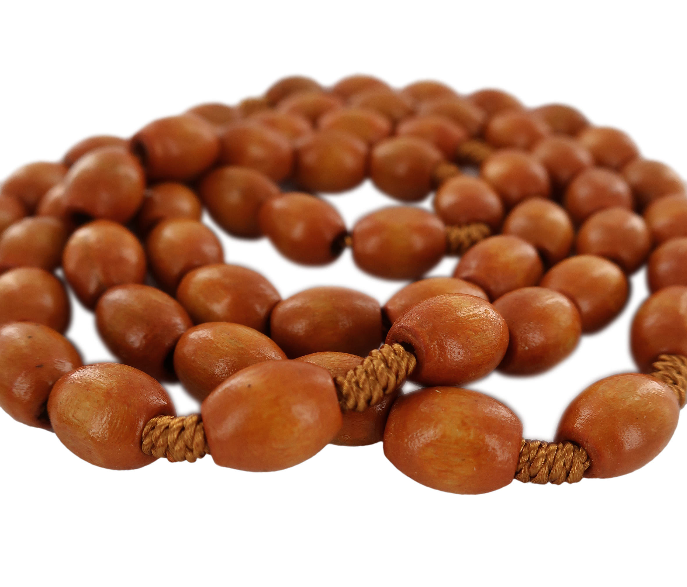 Rosario con grani ovali in legno naturale mm 8 con legatura in seta