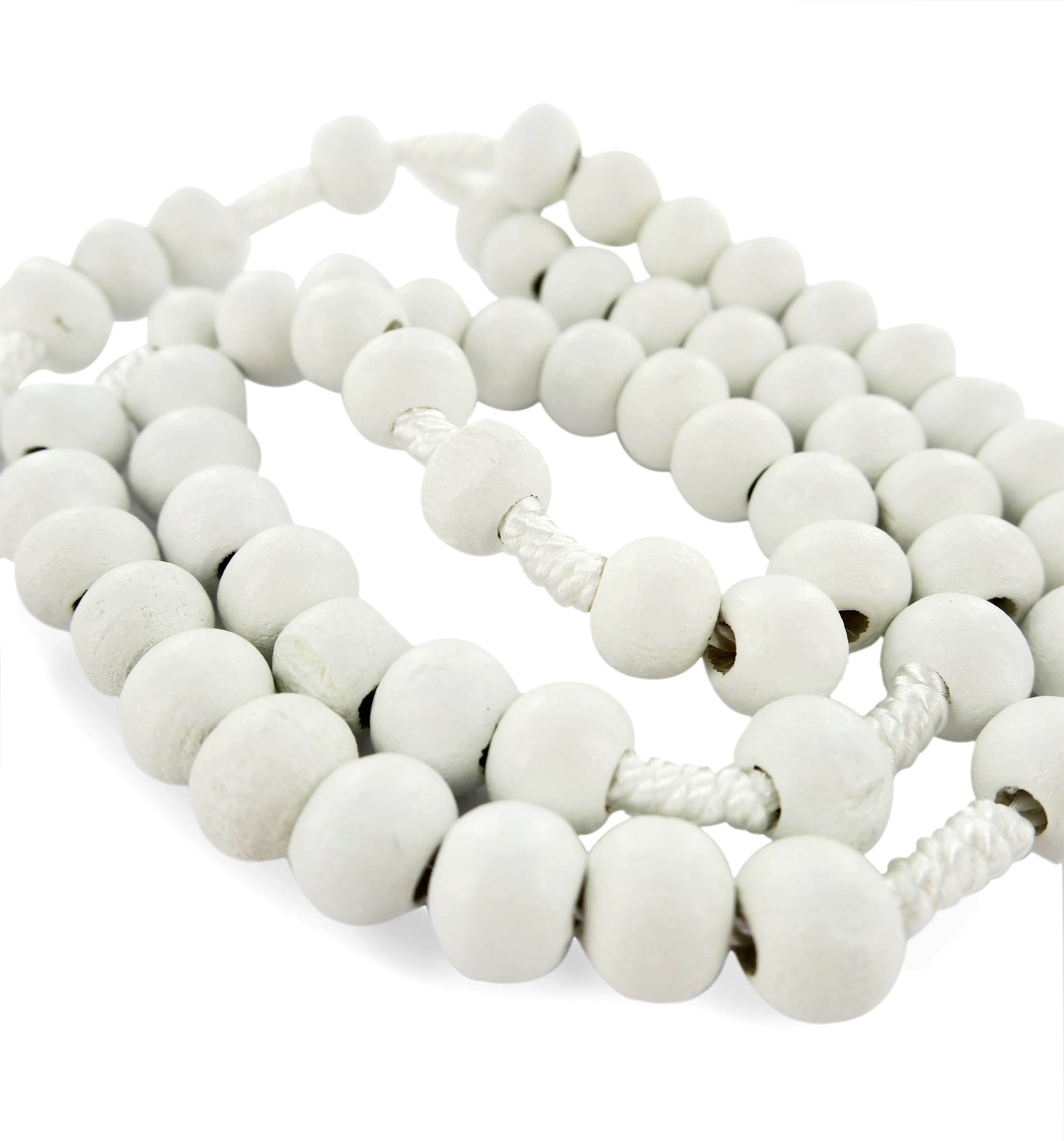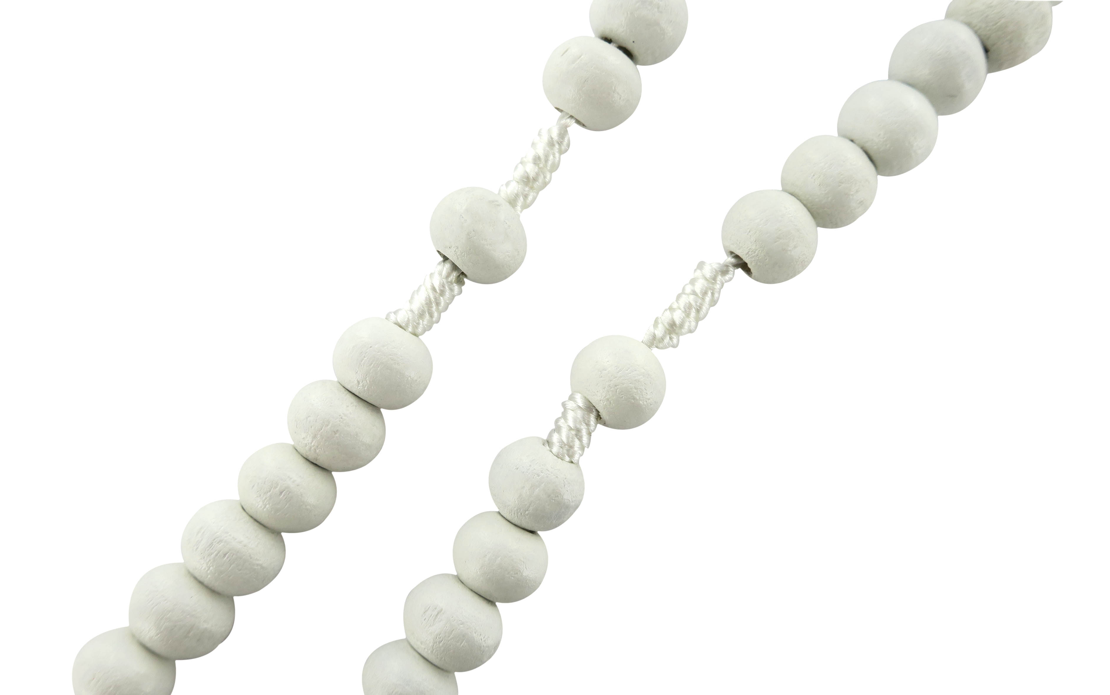 Rosario in legno tondo bianco diametro mm 7 legatura in seta