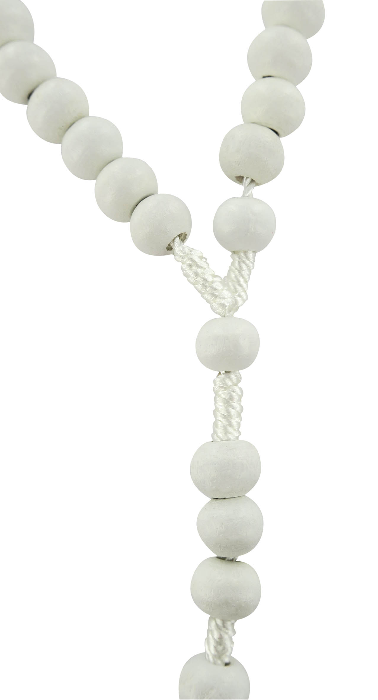 Rosario economico in legno tondo bianco diametro mm 7 legatura in seta