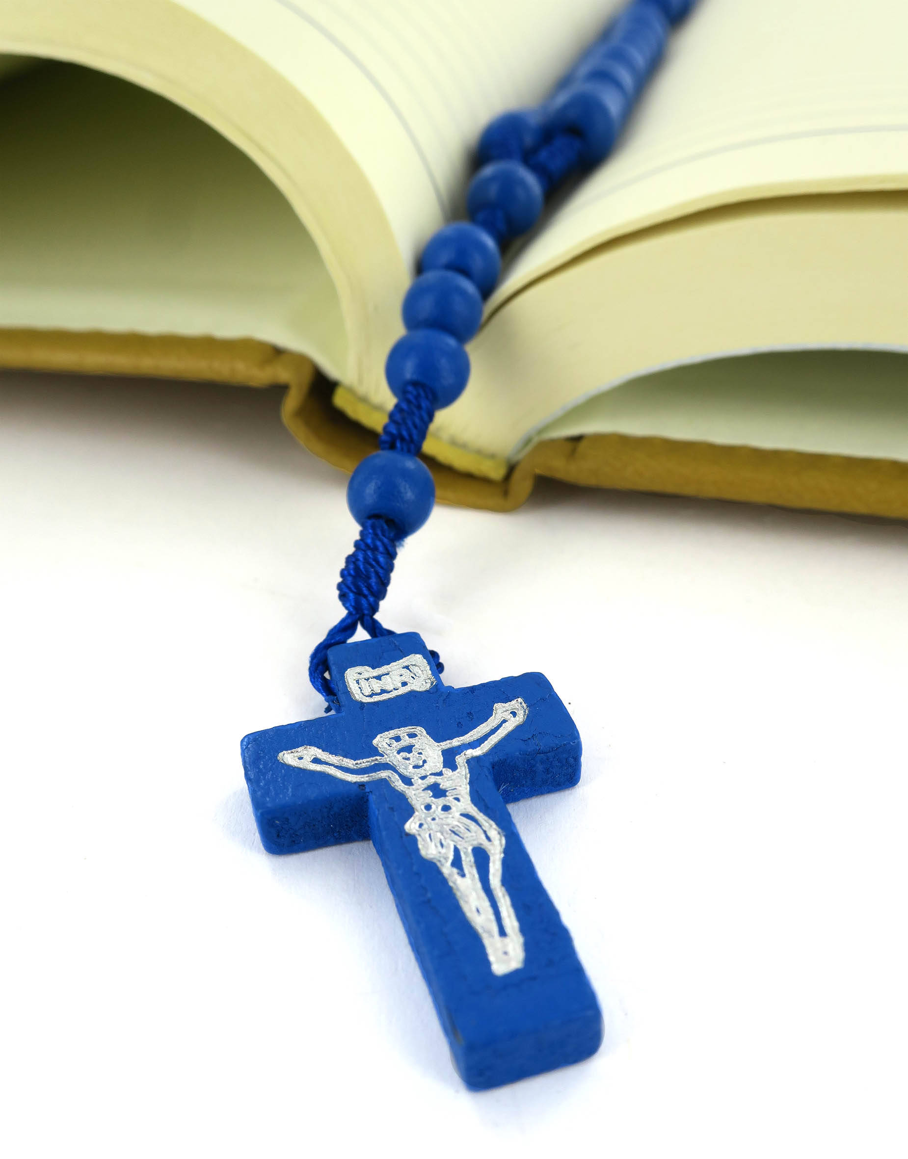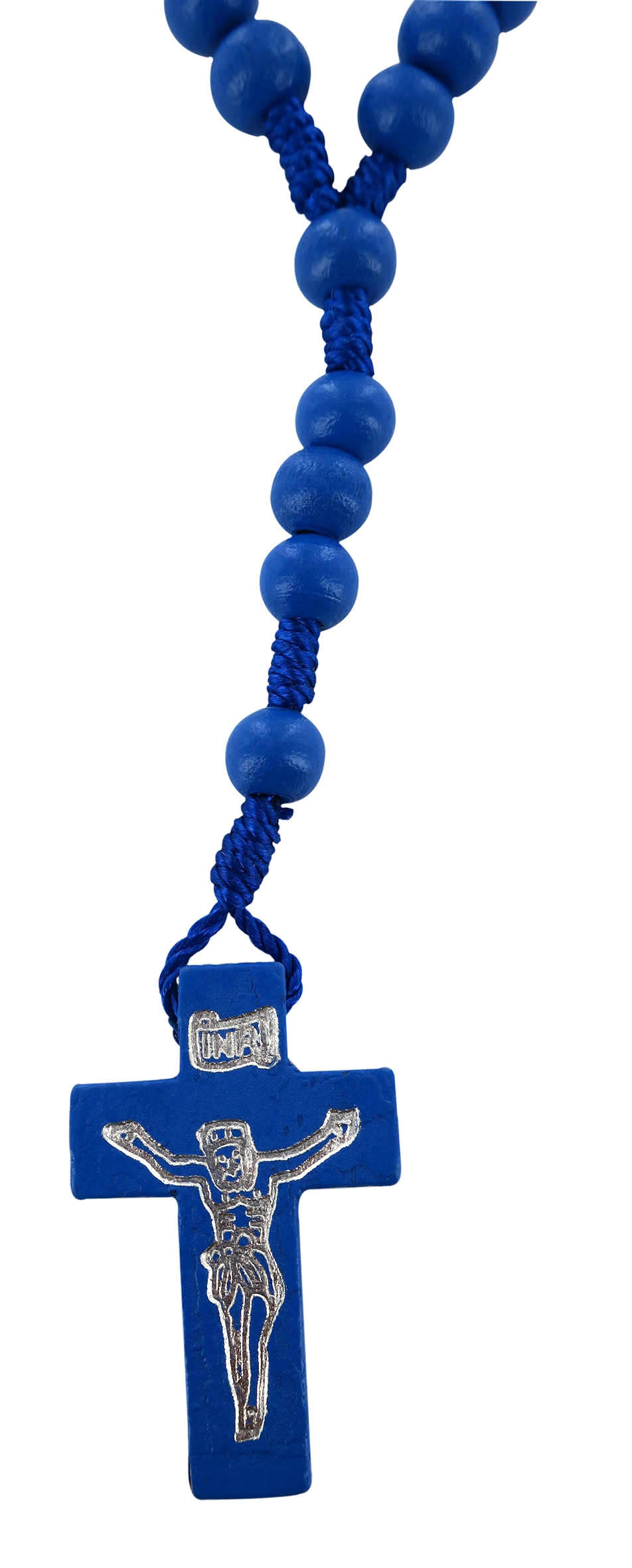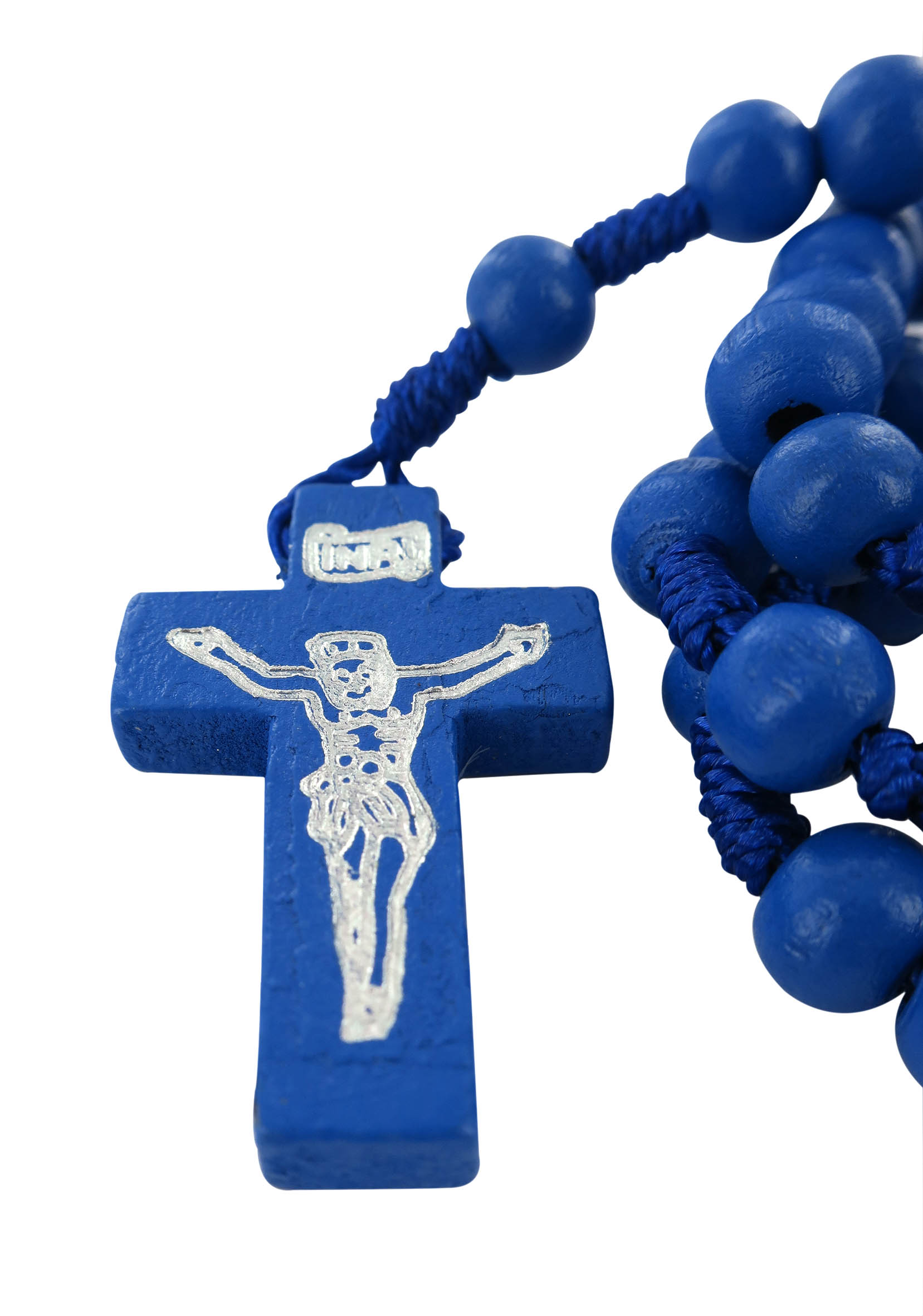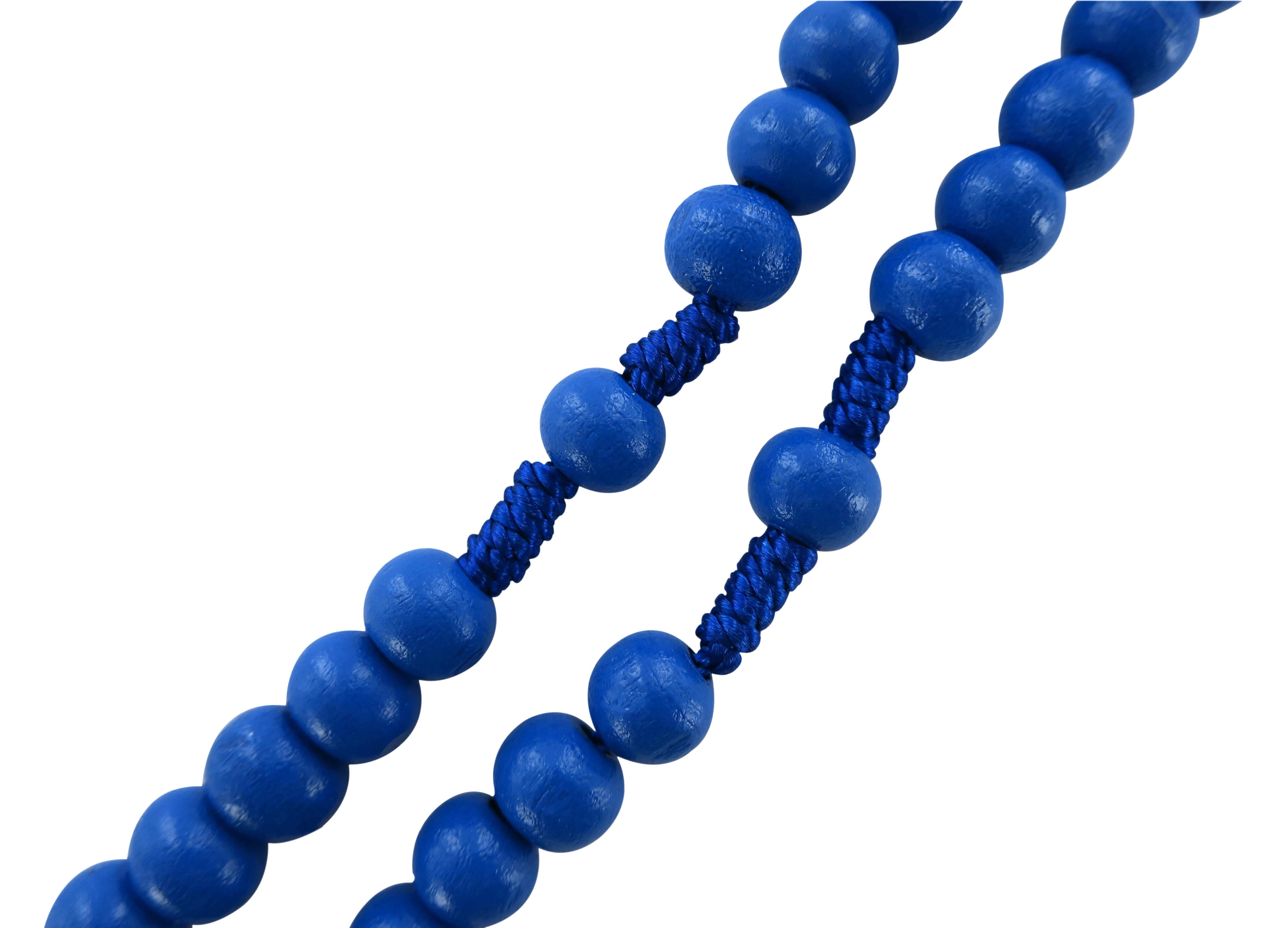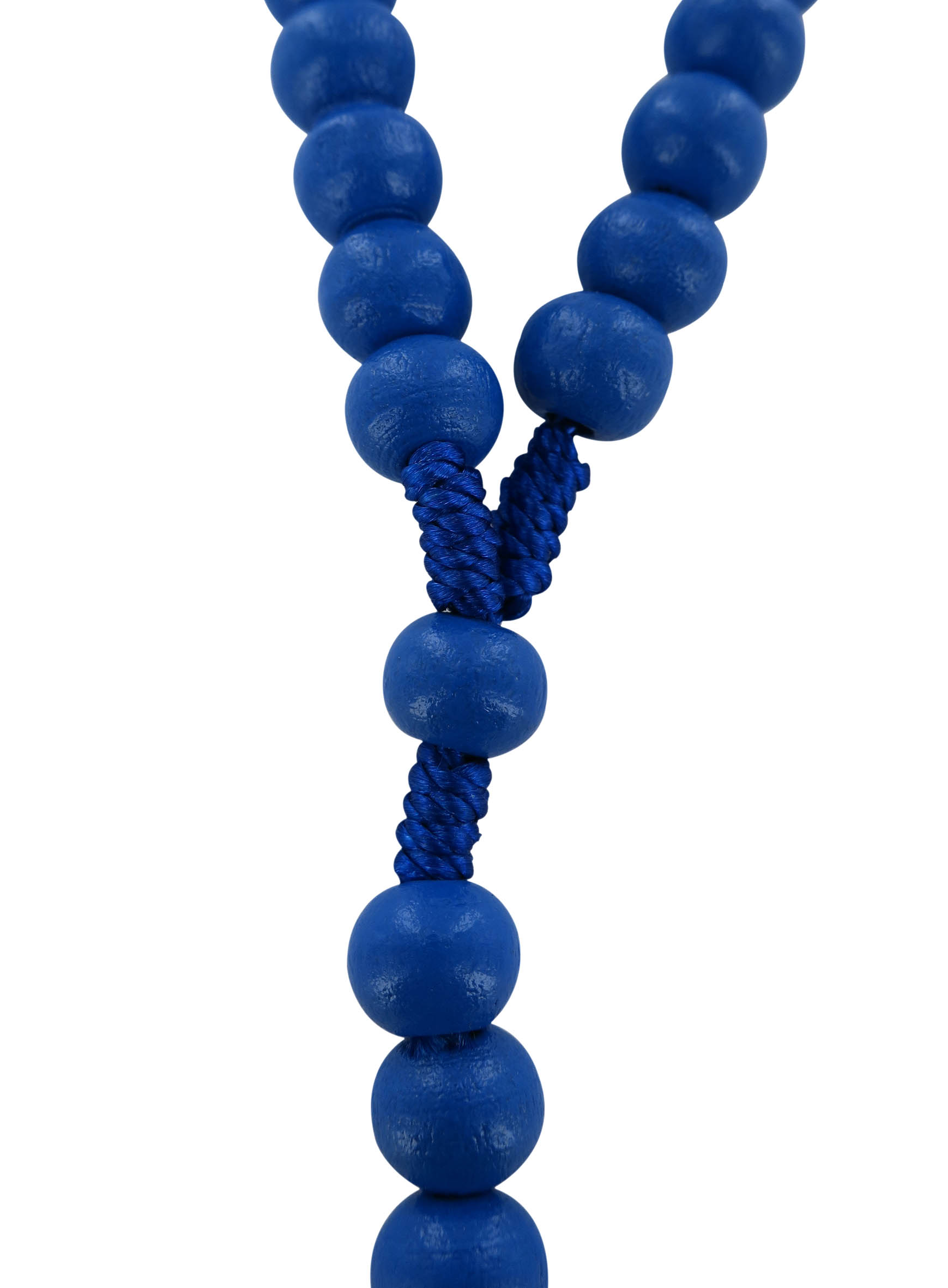 Rosario economico in legno tondo blu diametro mm 7 legatura in seta