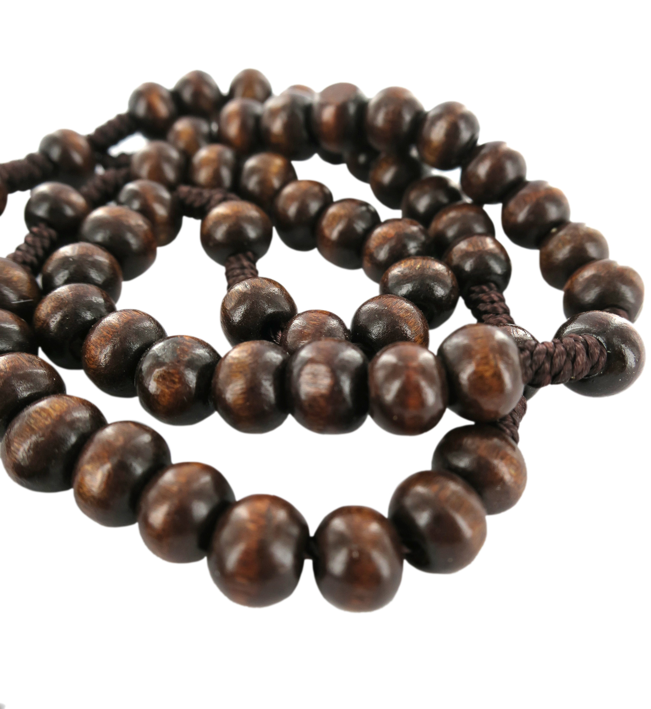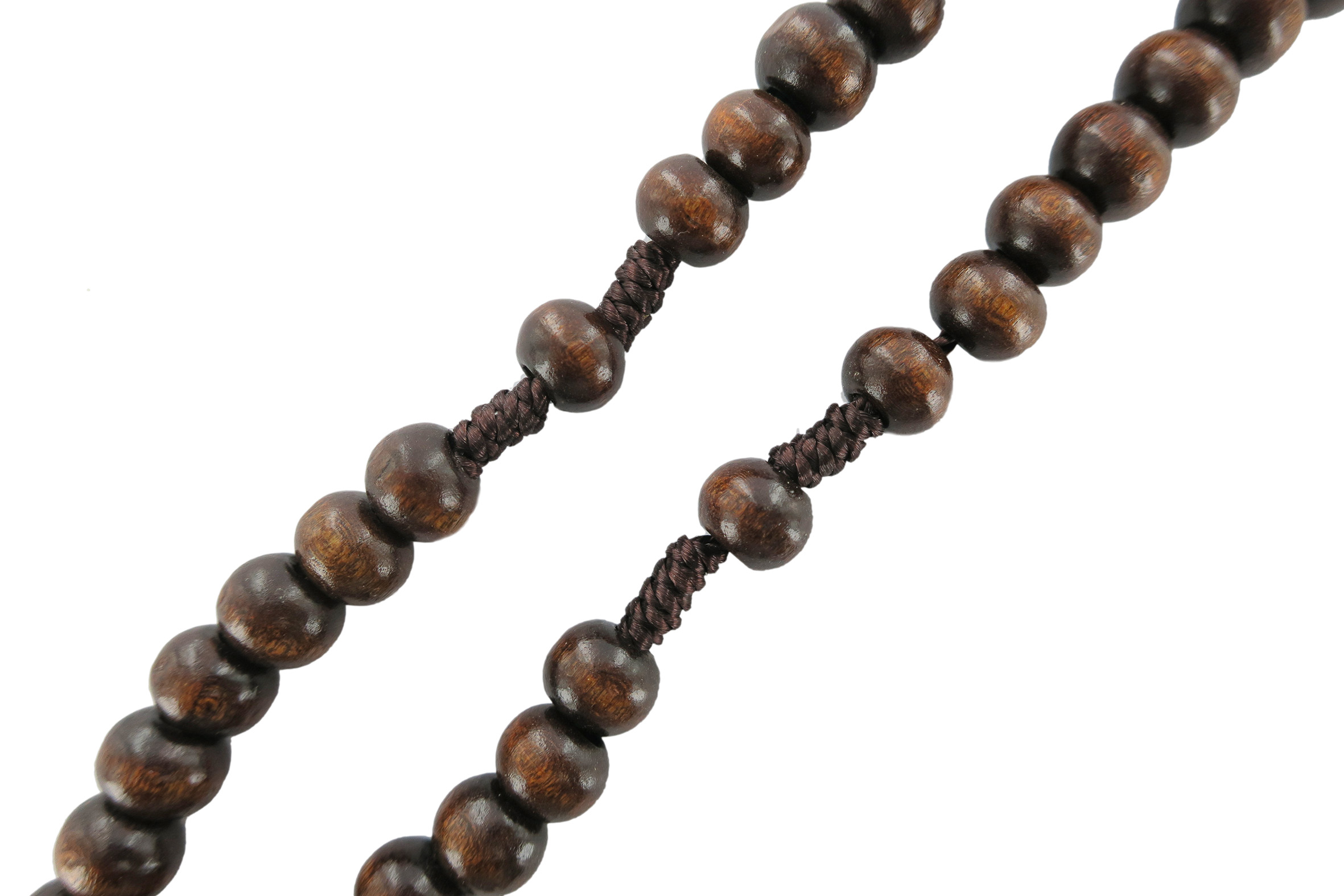 Rosario in legno tondo marrone diametro mm 7 legatura in seta
