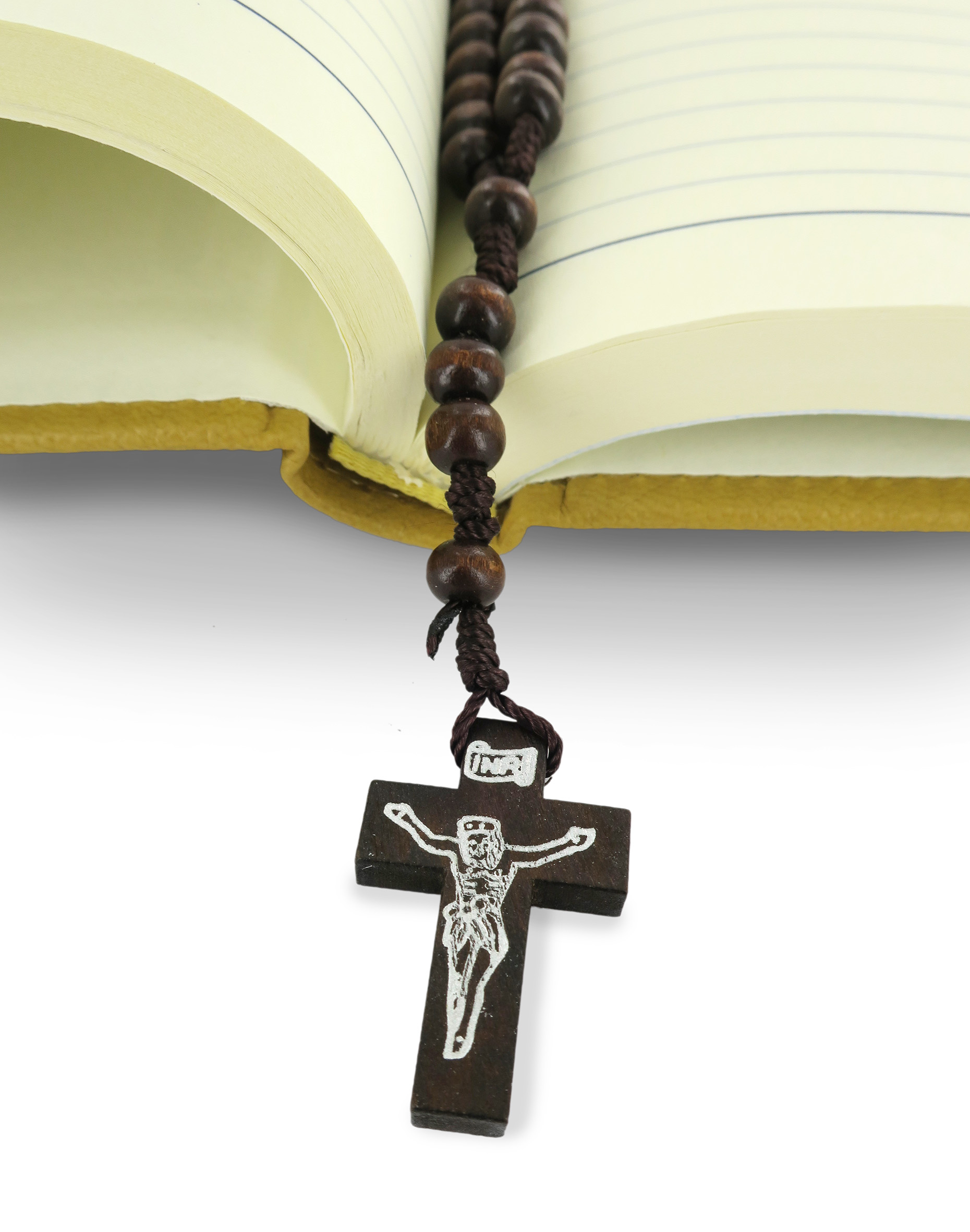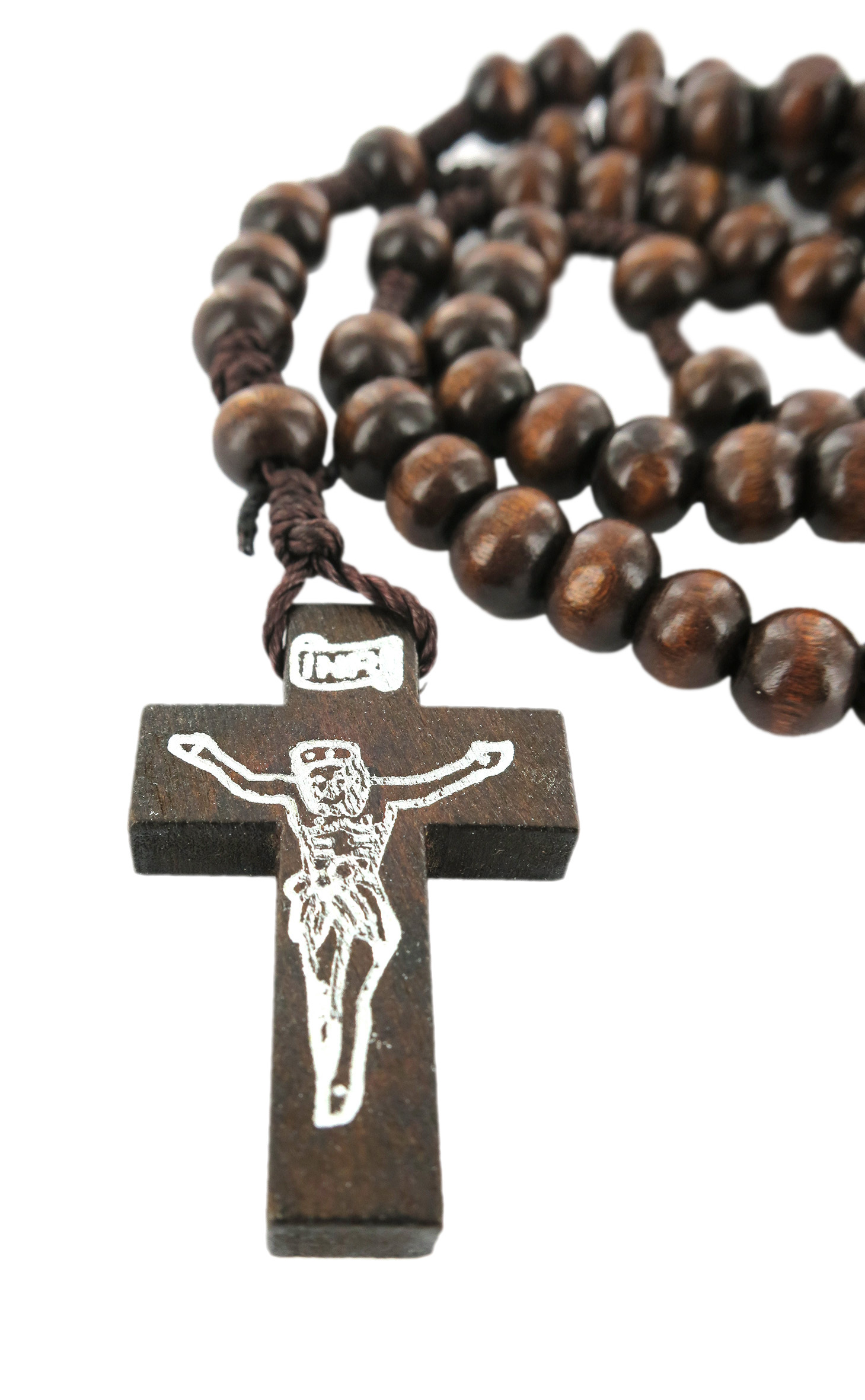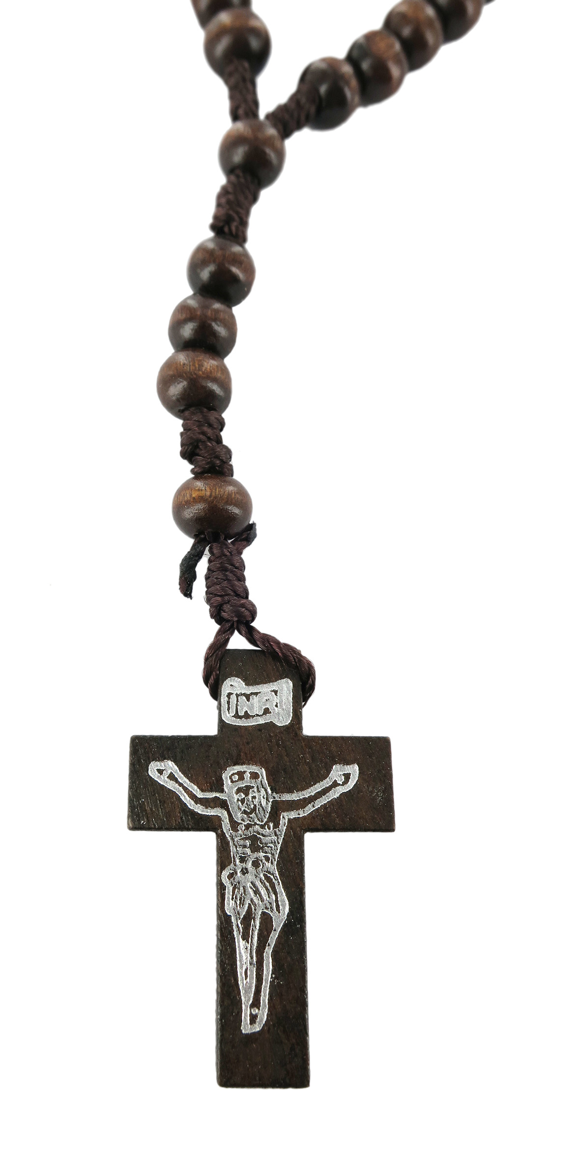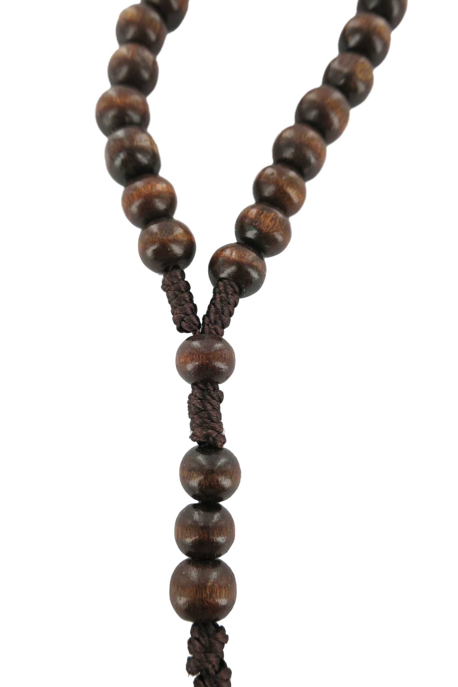 Rosario economico in legno tondo marrone diametro mm 7 legatura in seta