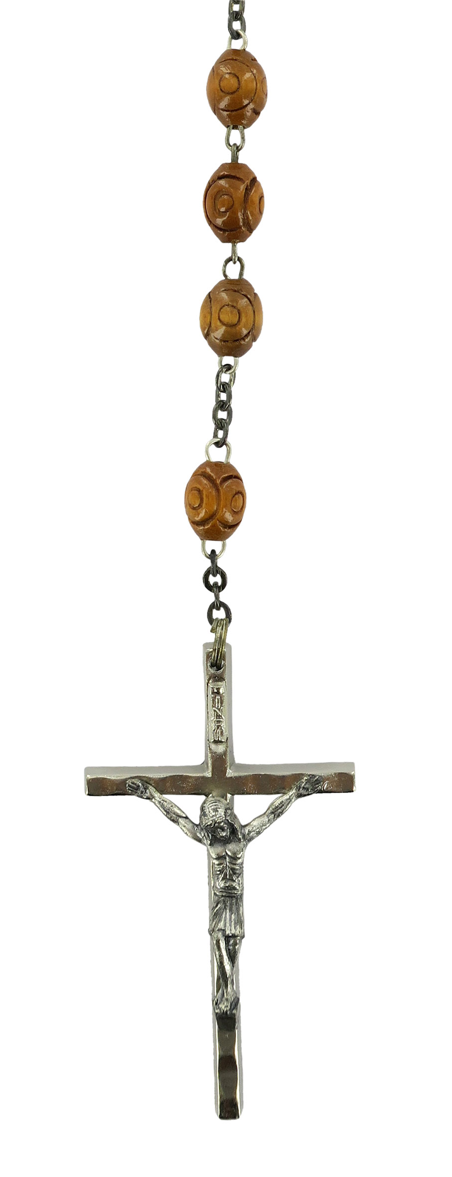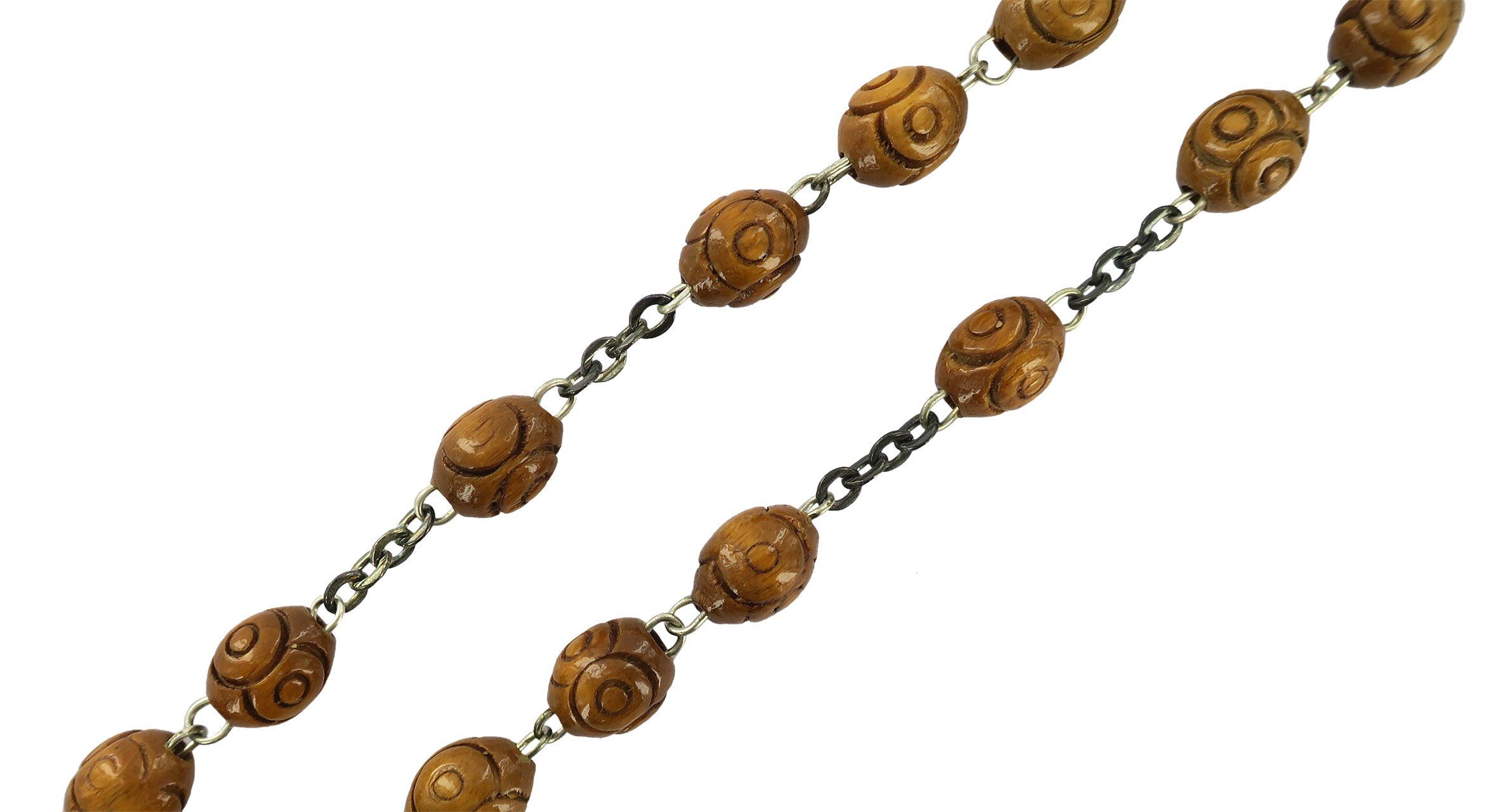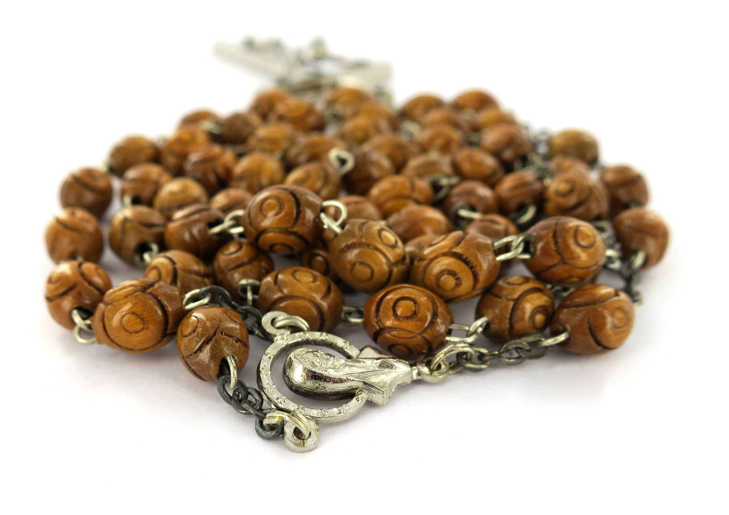 Rosario in legno naturale lavorato Ø 6 mm con legatura in ottone argentato