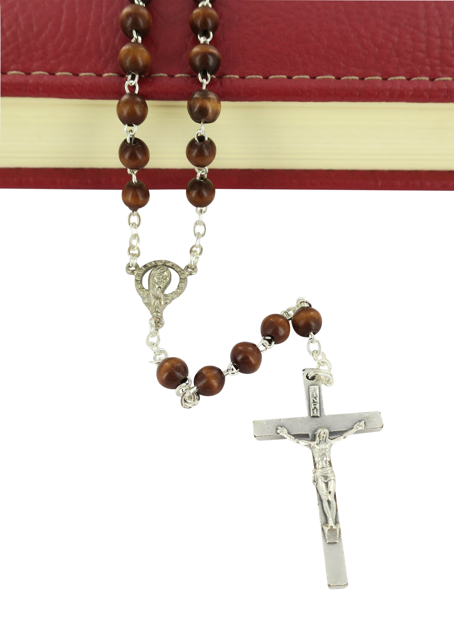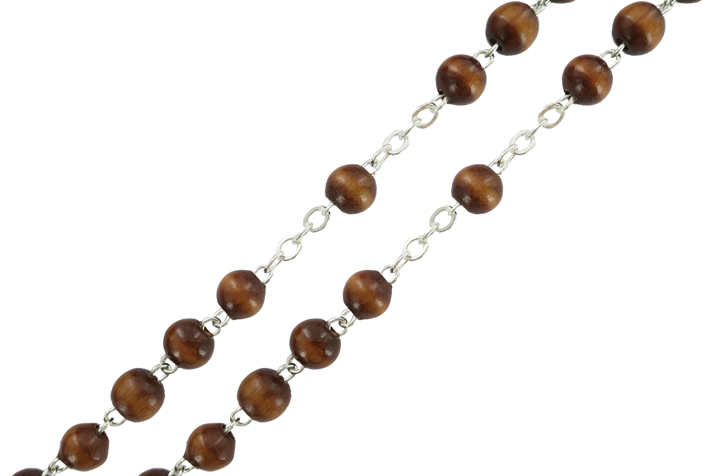 Rosario in legno naturale tondo mm 4 legatura ottone argentato