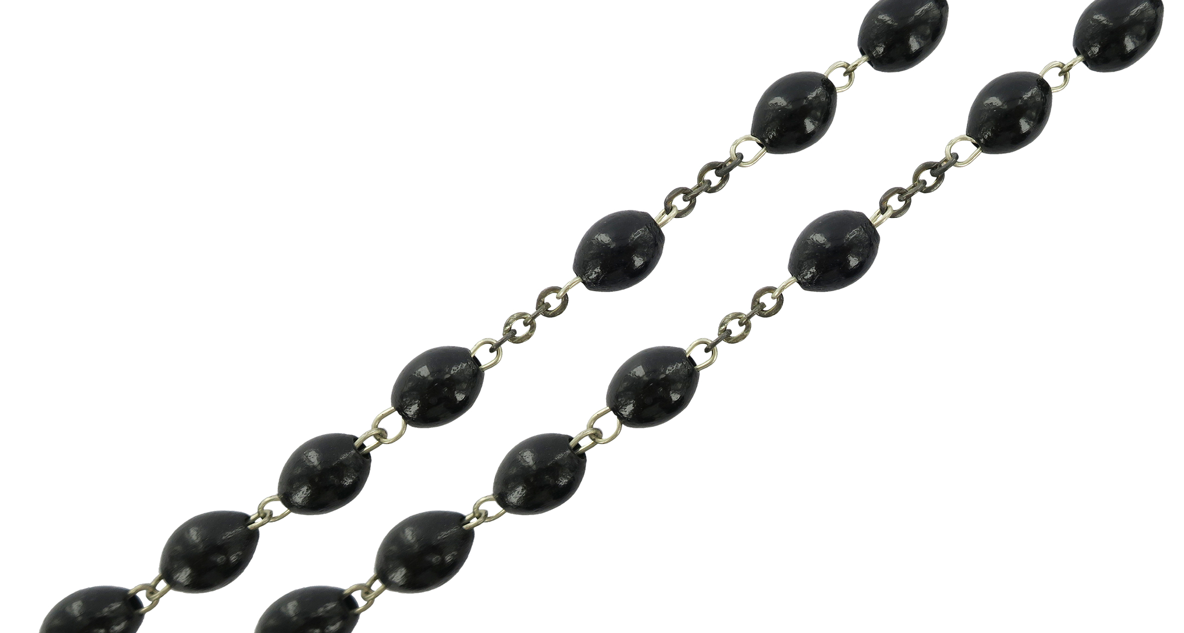 Rosario in legno nero ovale mm 6 legatura ottone argentato