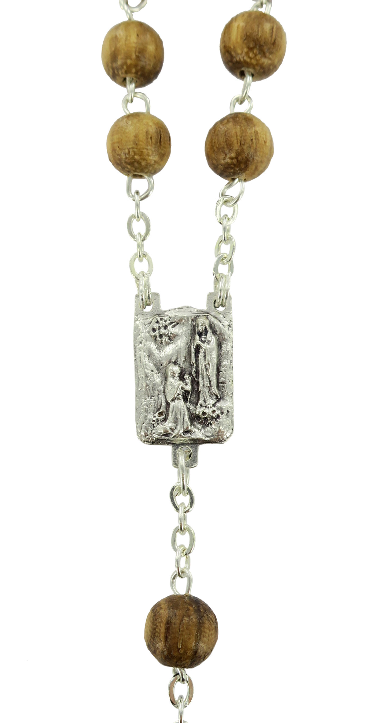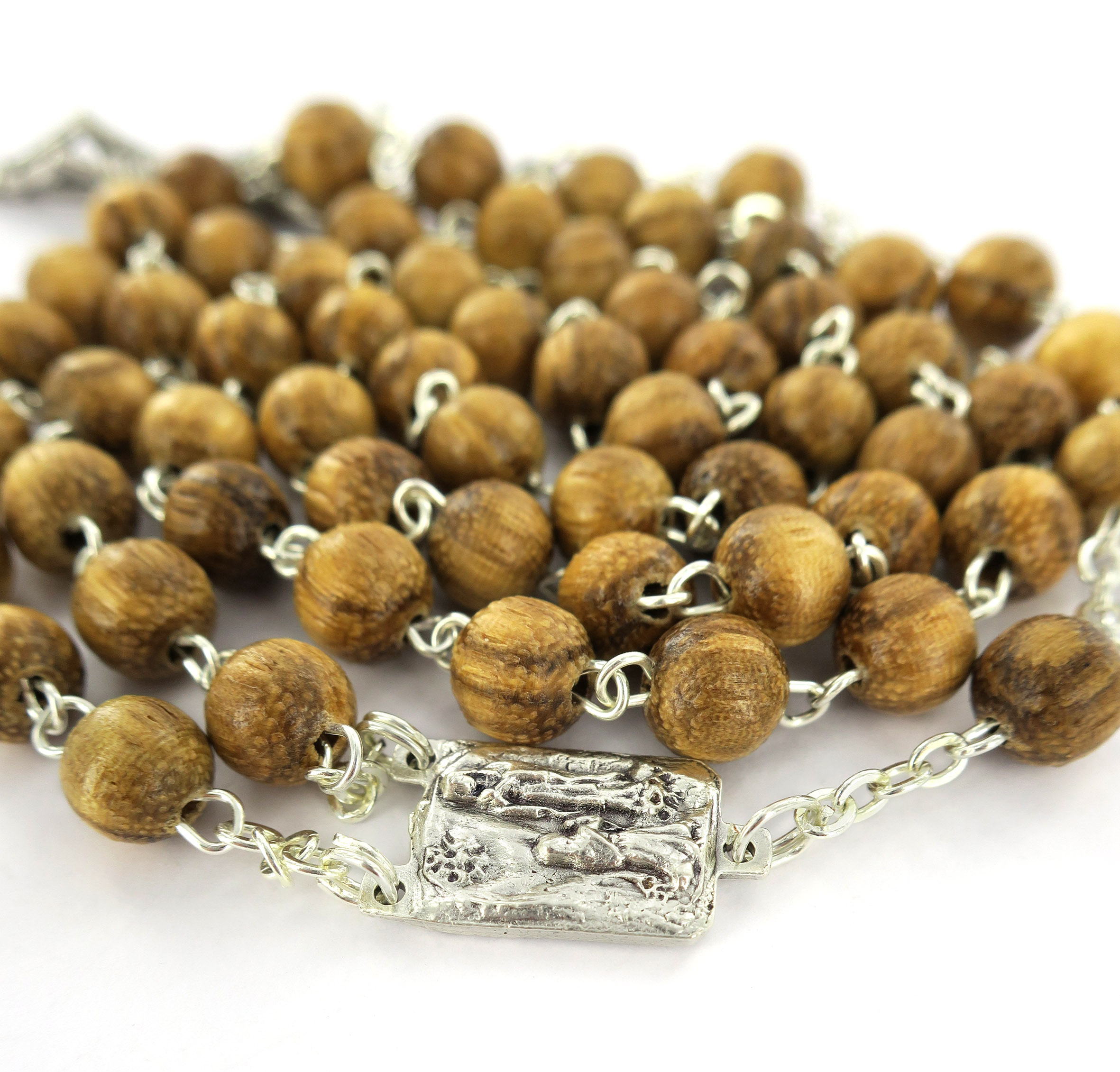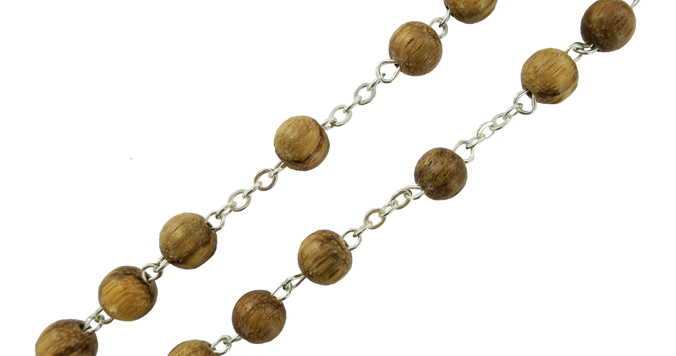 Rosario in legno noce tondo mm 6 legatura ottone argentato