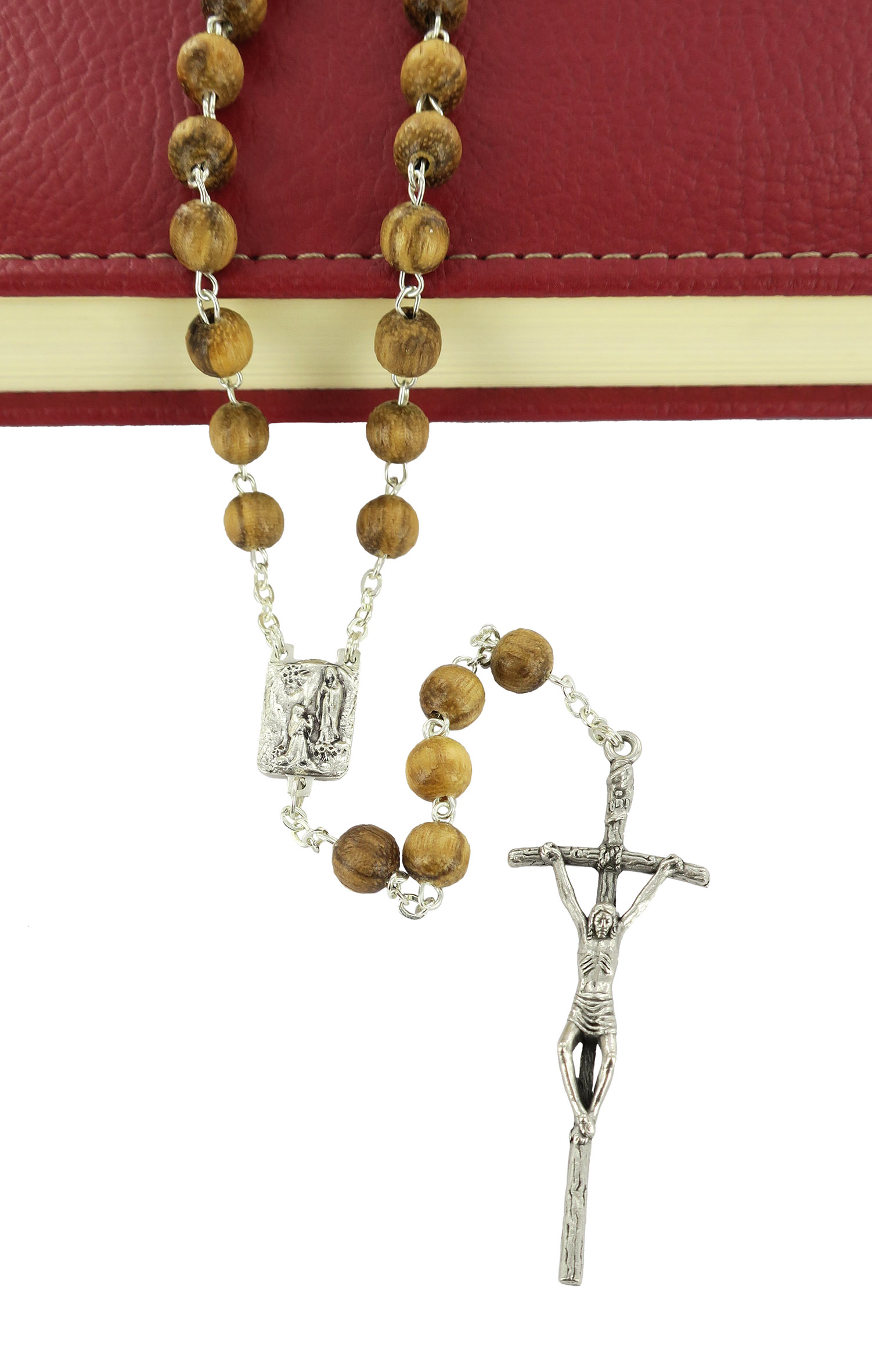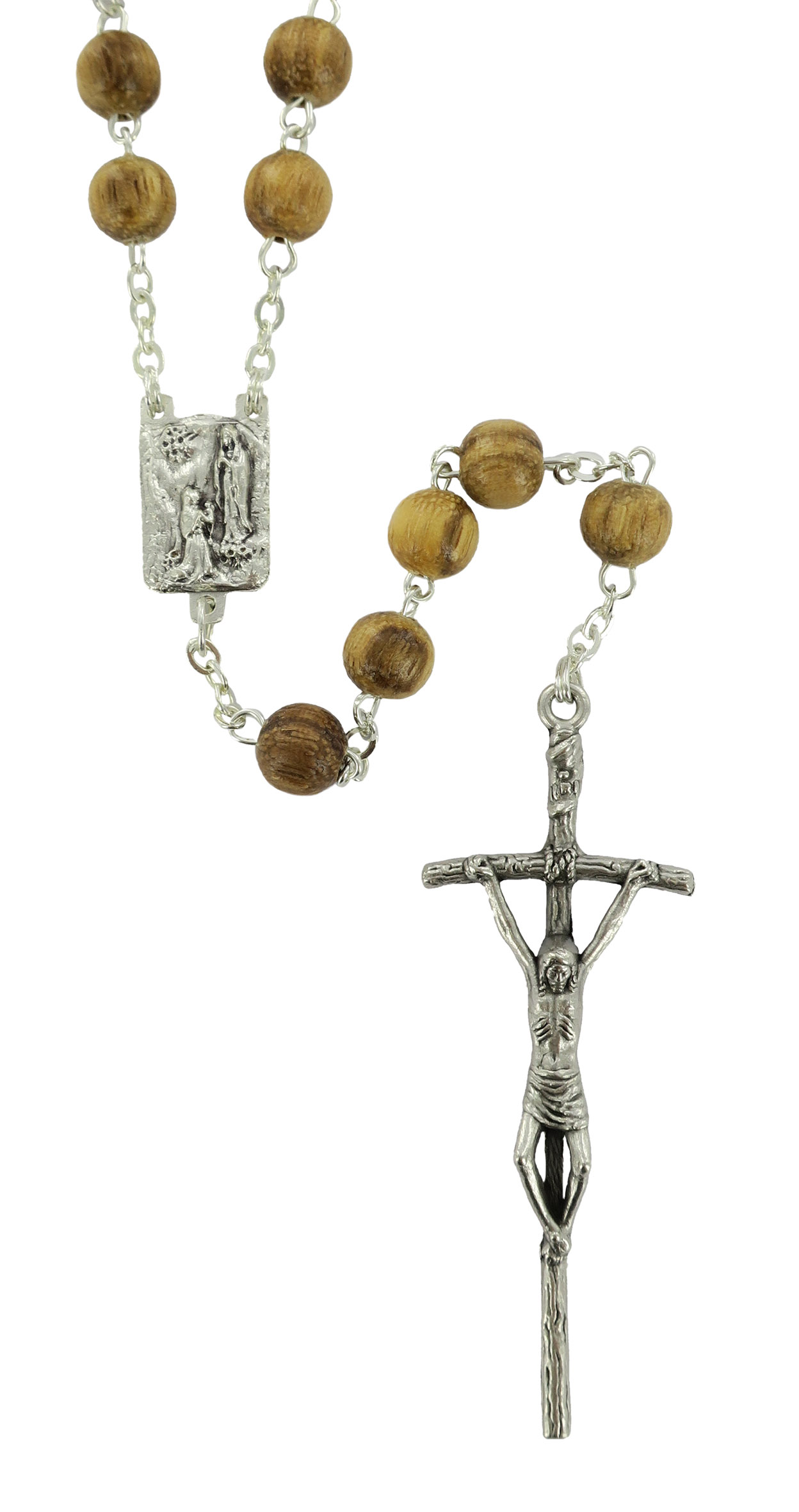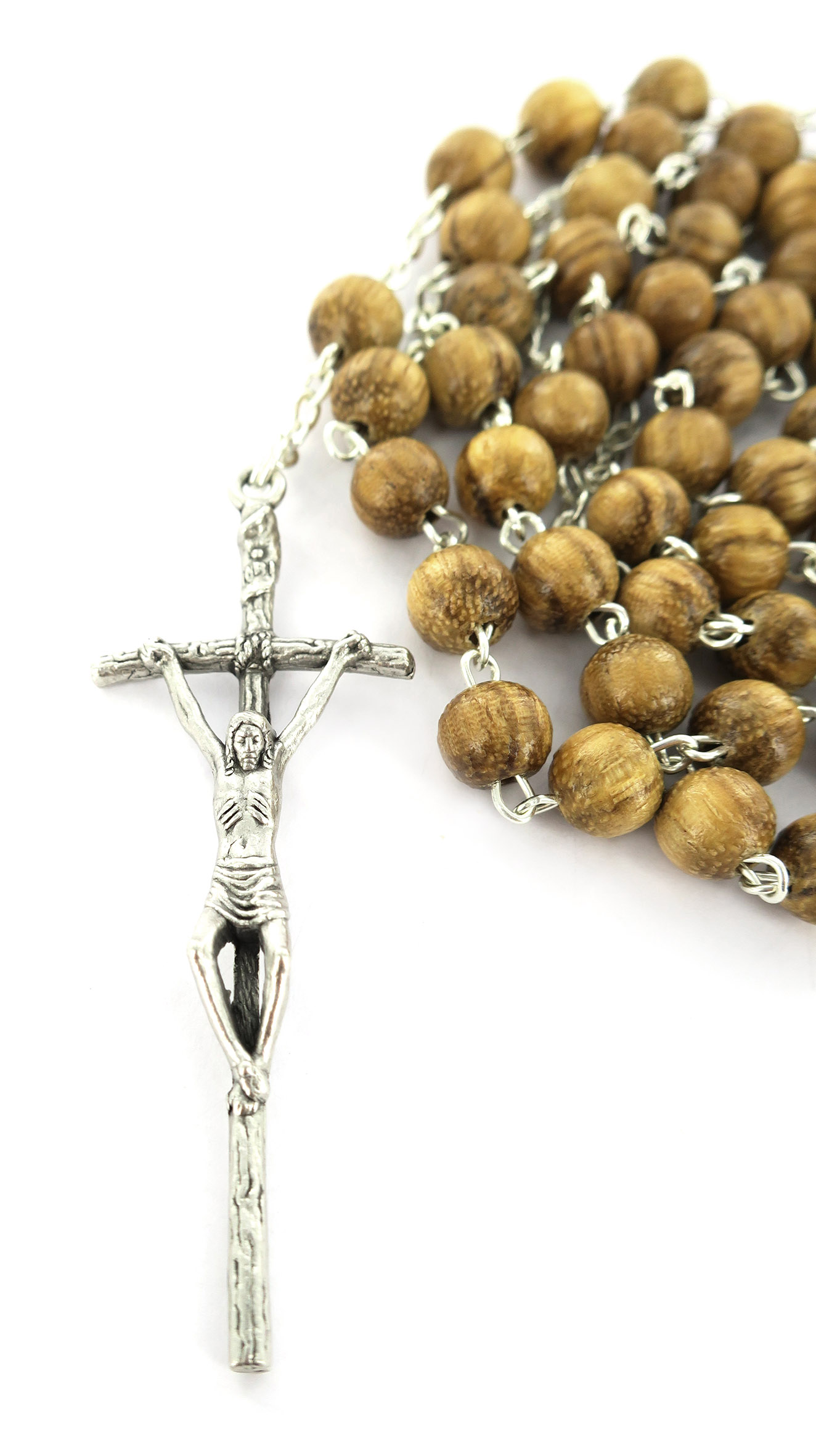 Rosario in legno noce tondo mm 6 legatura ottone argentato