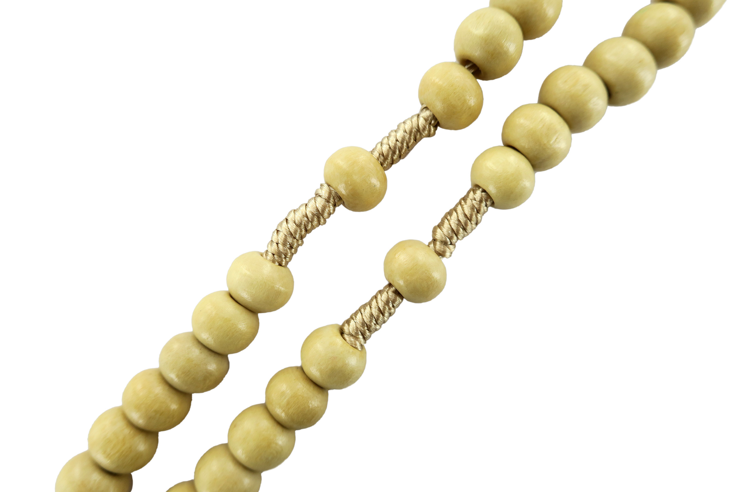 Rosario in legno tondo con diametro 6 mm. con legatura in seta - grezzo