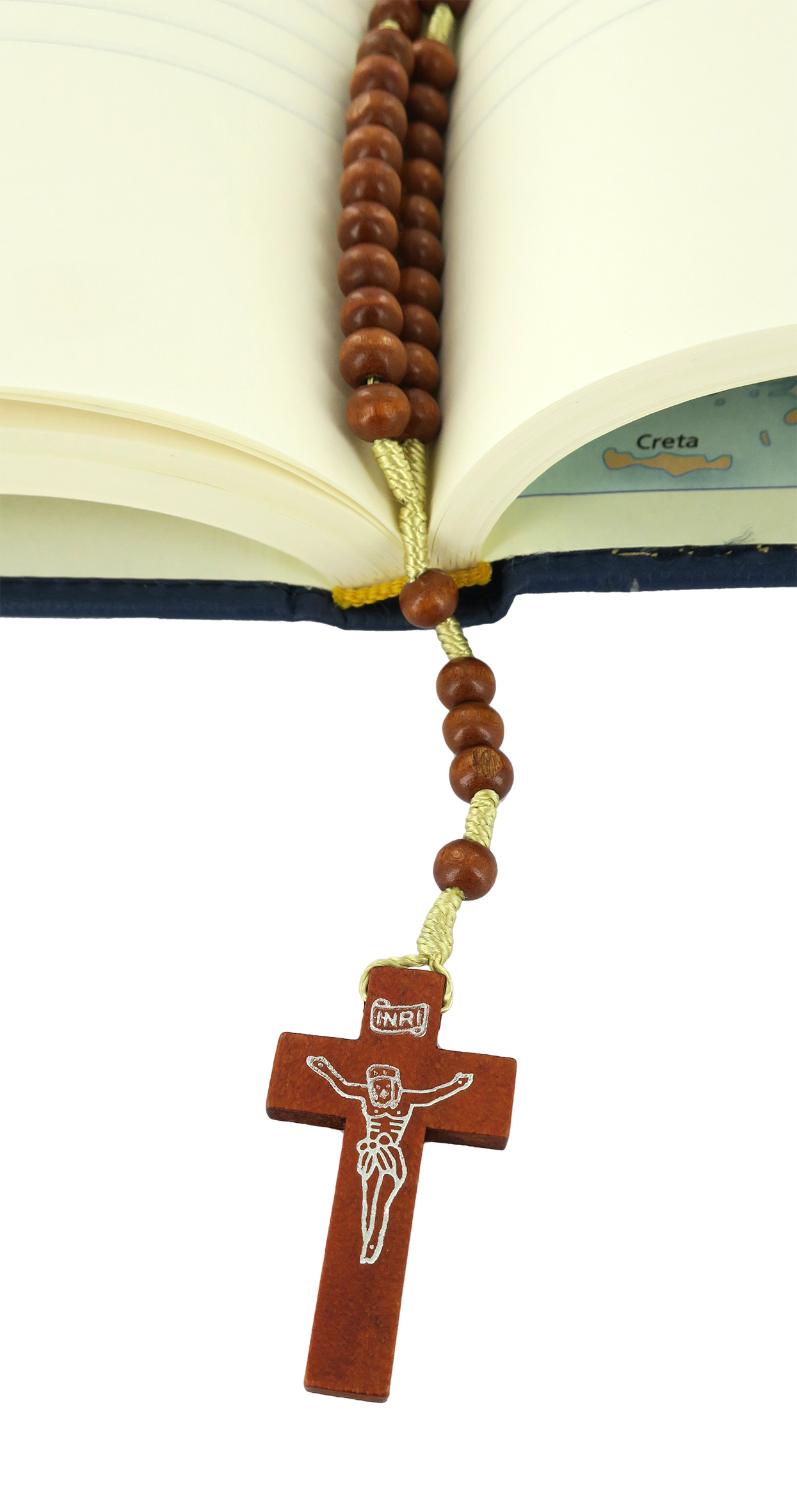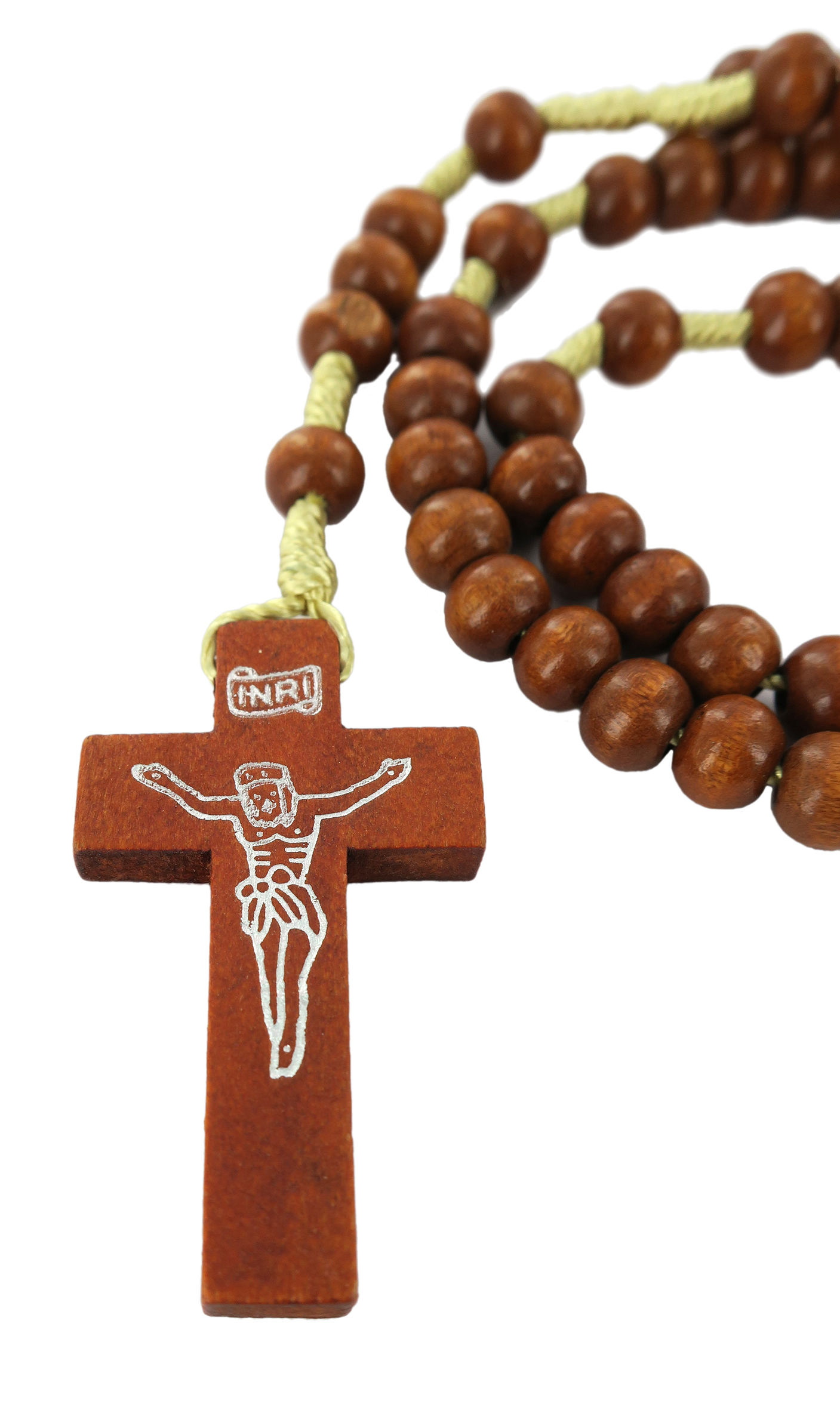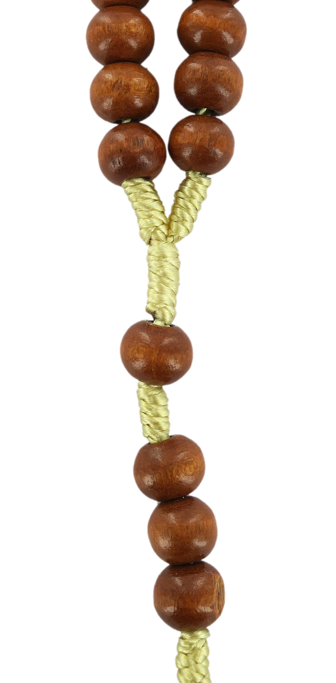 Rosario in legno tondo con diametro 6 mm. con legatura in seta naturale