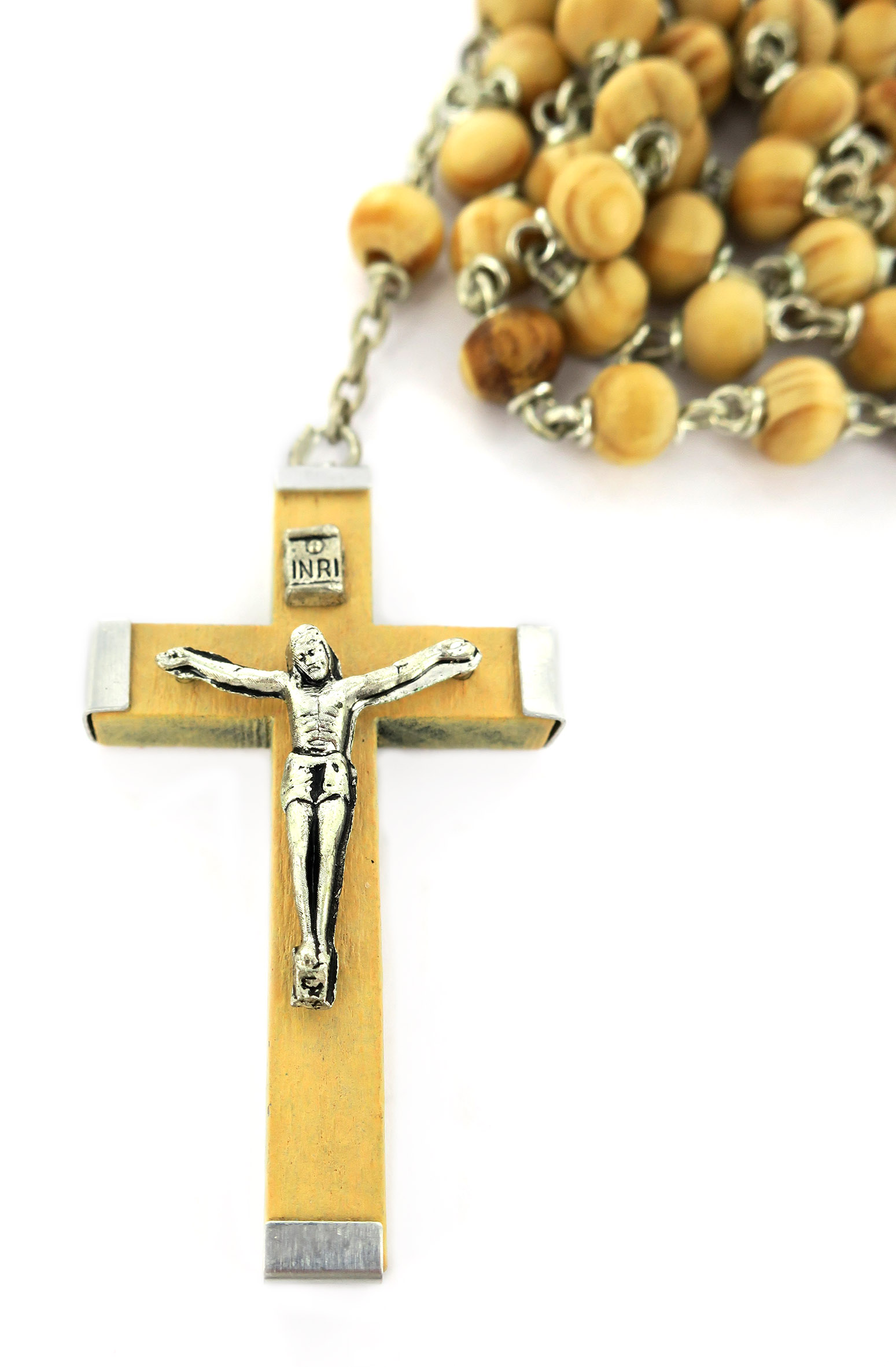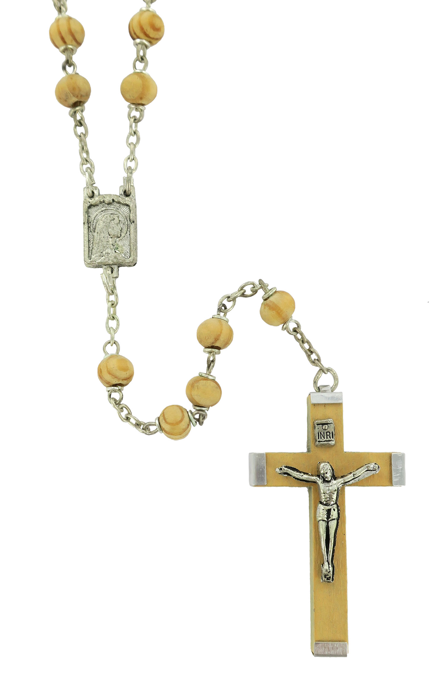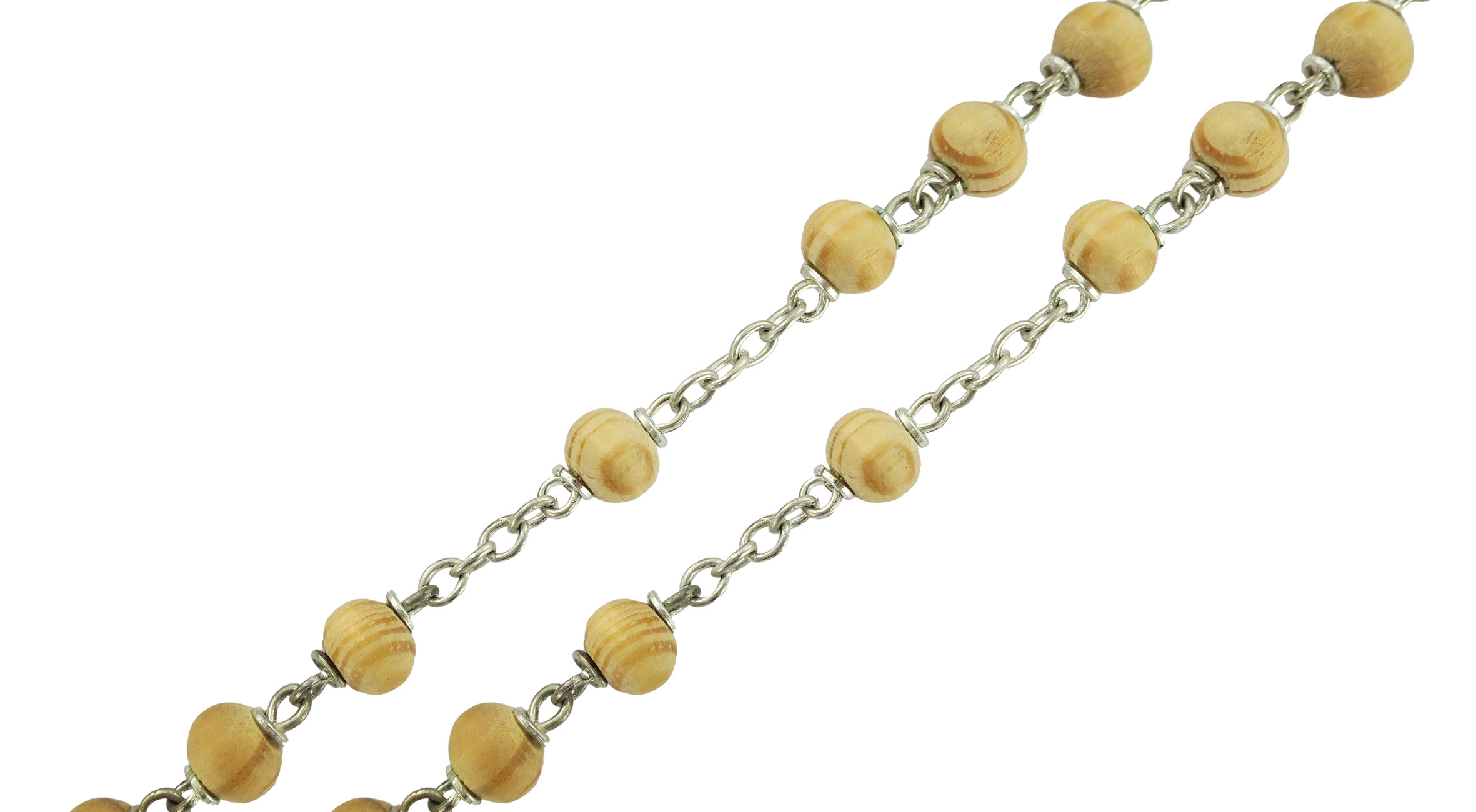 Rosario in legno tondo chiaro da Ø 6 mm con legatura in metallo