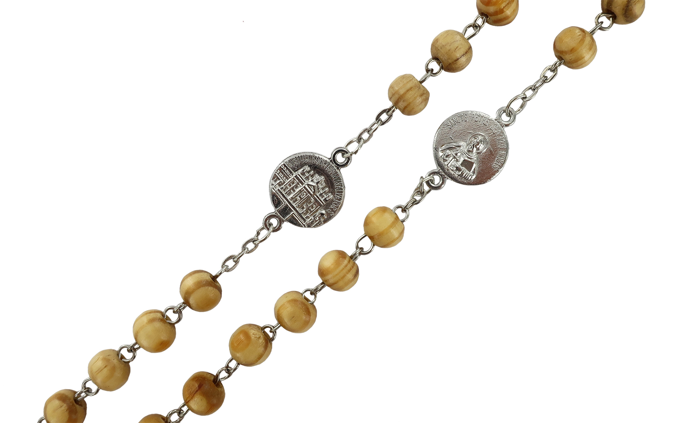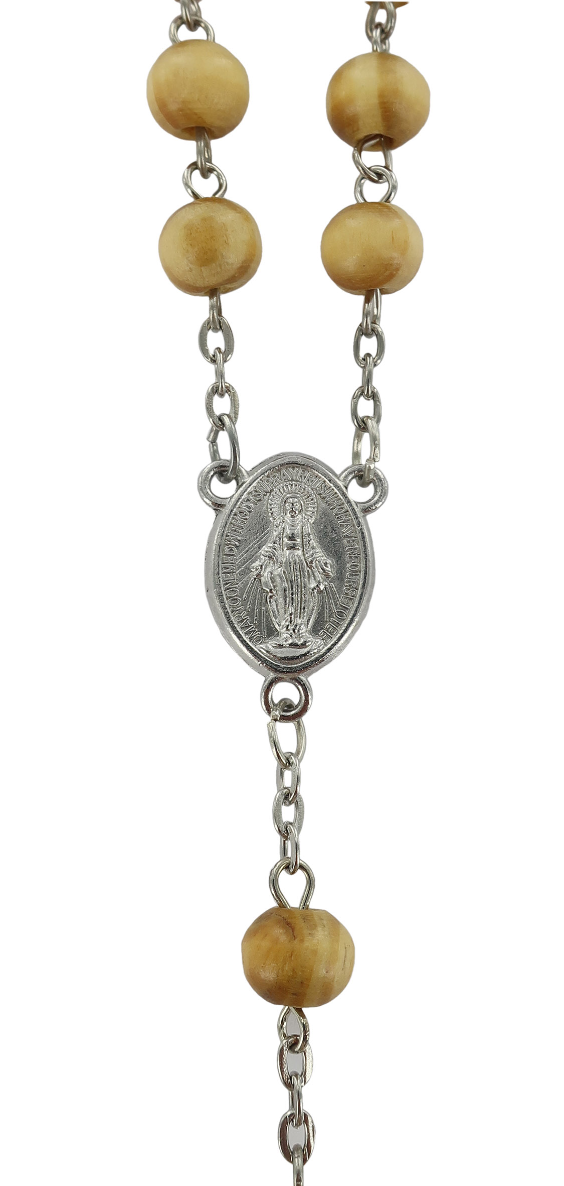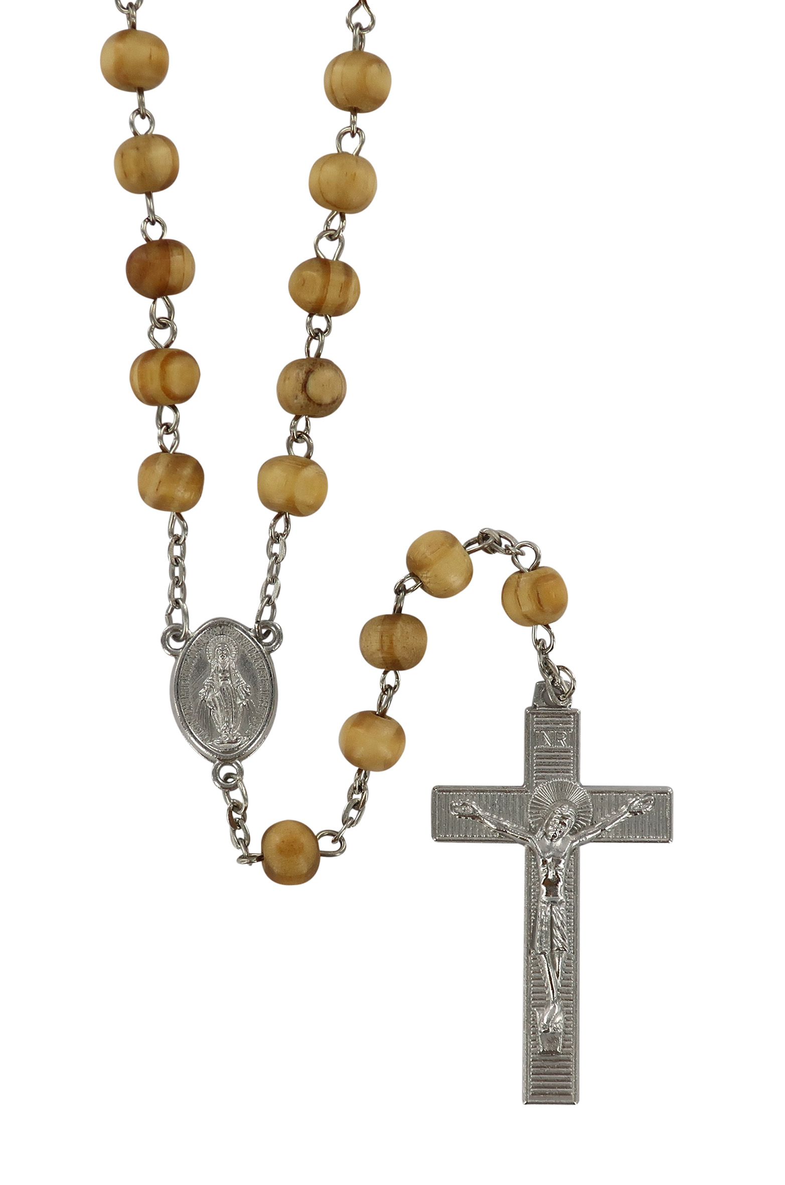 Rosario in legno di ulivo con grani tondi del diametro di mm 8.