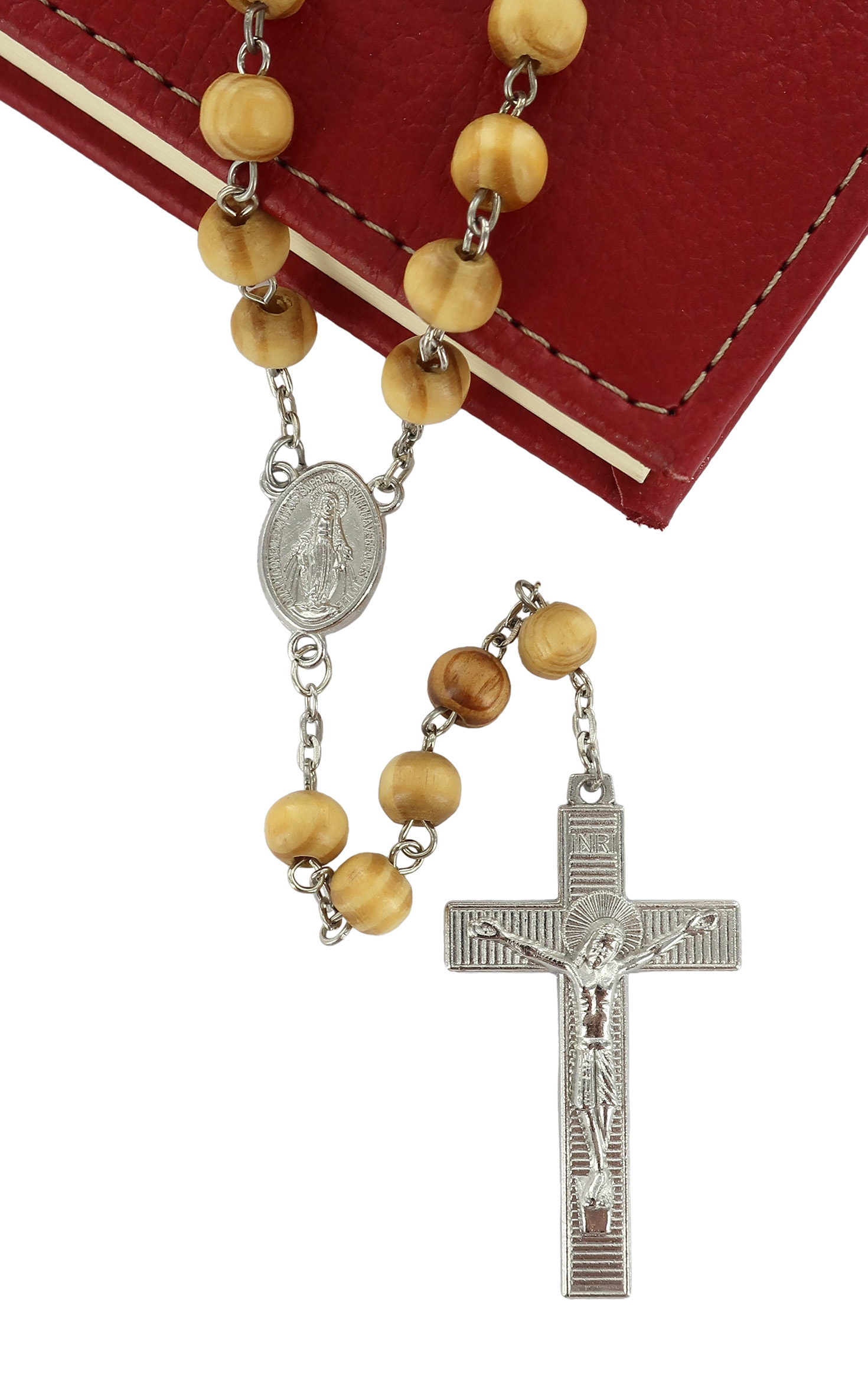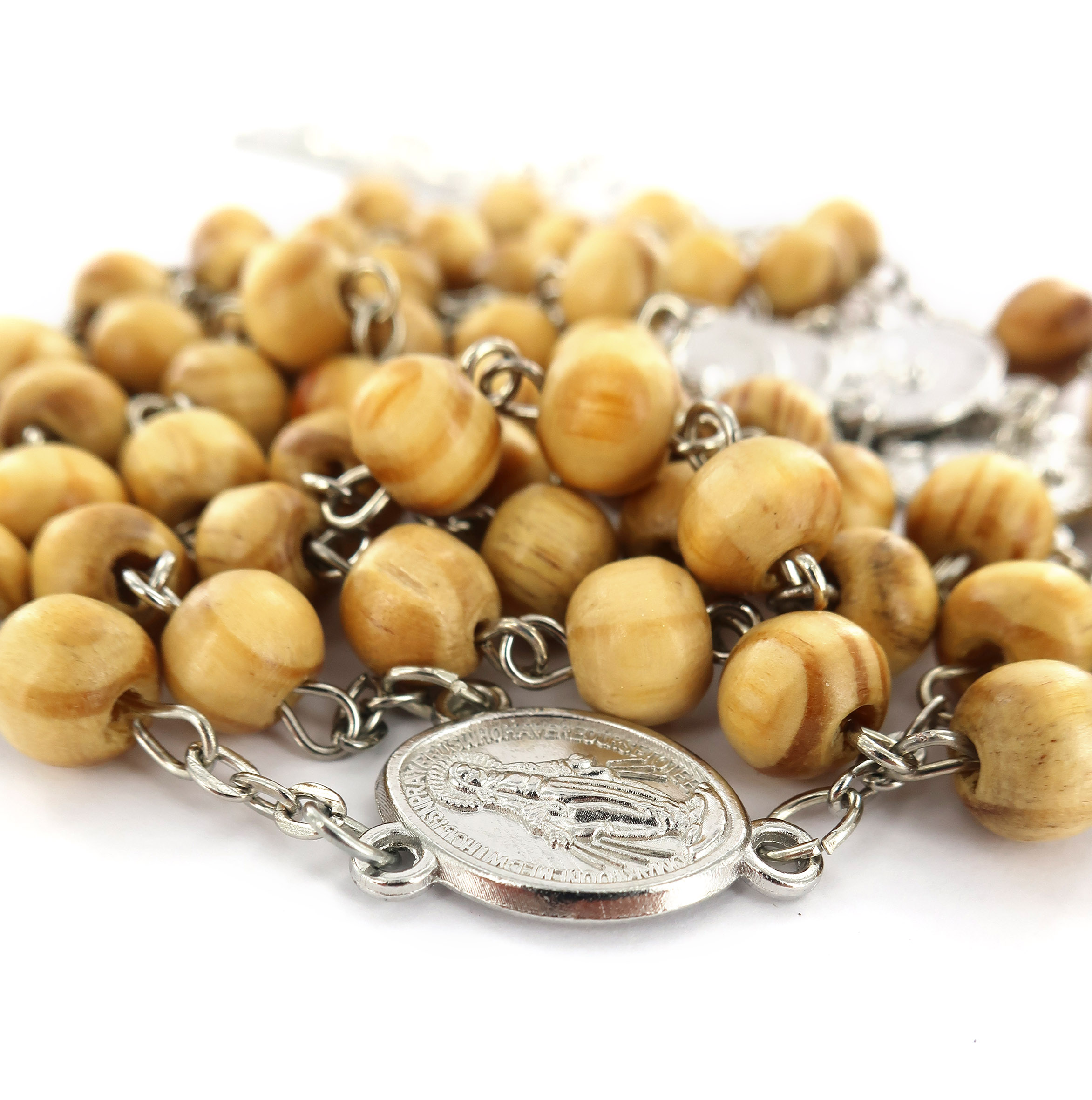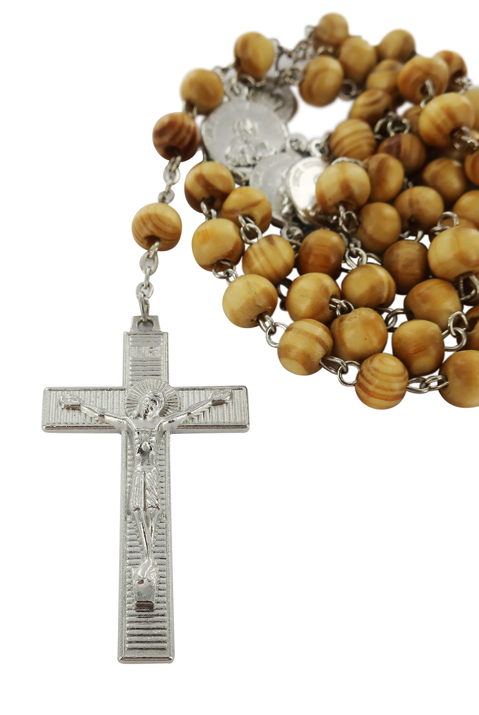 Rosario in legno di ulivo con grani tondi del diametro di mm 8.