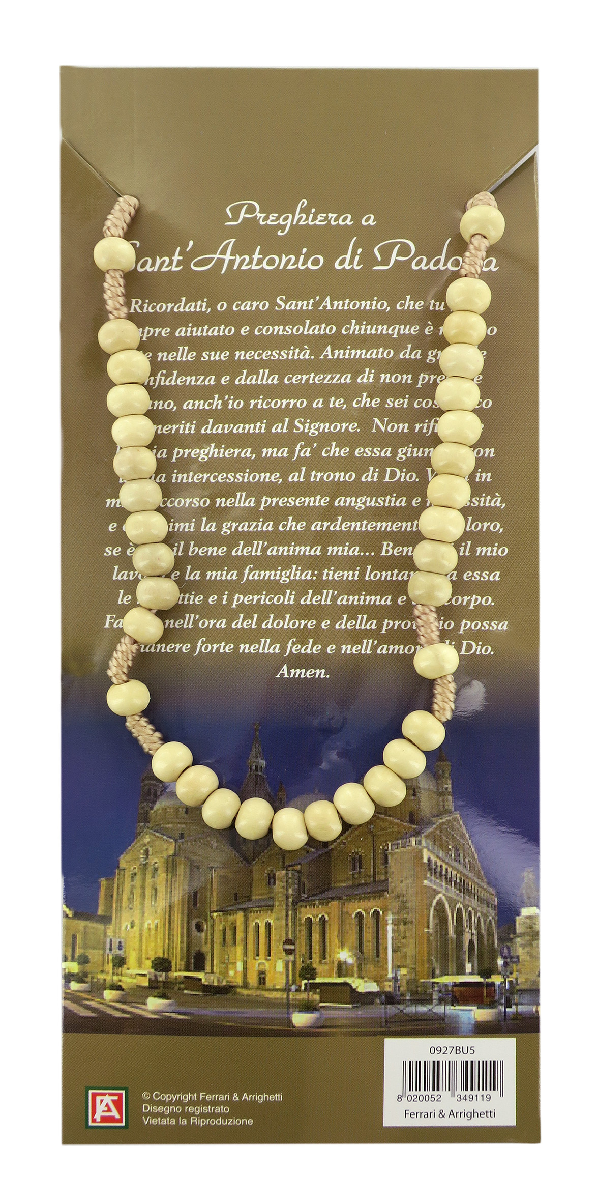 Rosario Sant'Antonio con grani in legno mm 5 legatura seta con busta trasparente