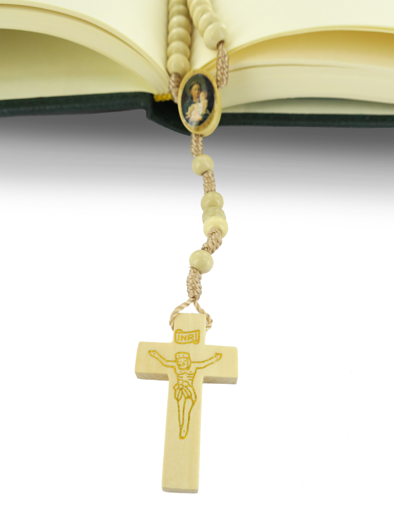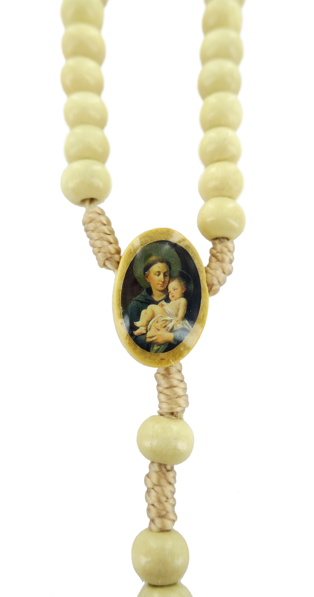 Rosario Sant Antonio con grani in legno mm 5 legatura seta con busta trasparente