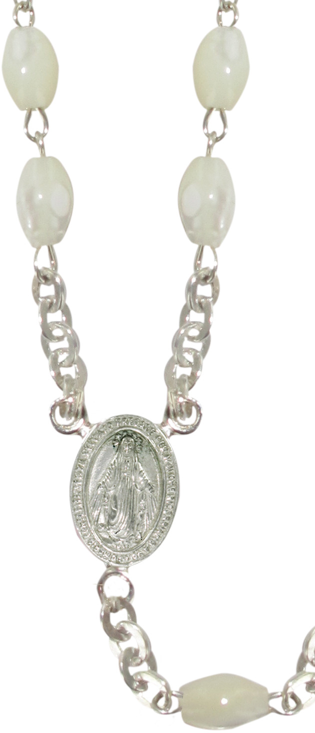 Rosario in argento e vera madreperla con grani ovali da Ø 4 mm