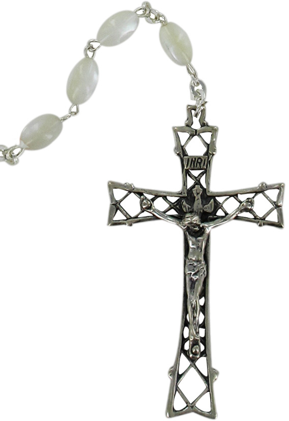 Rosario in argento e vera madreperla con grani ovali da Ø 6 mm