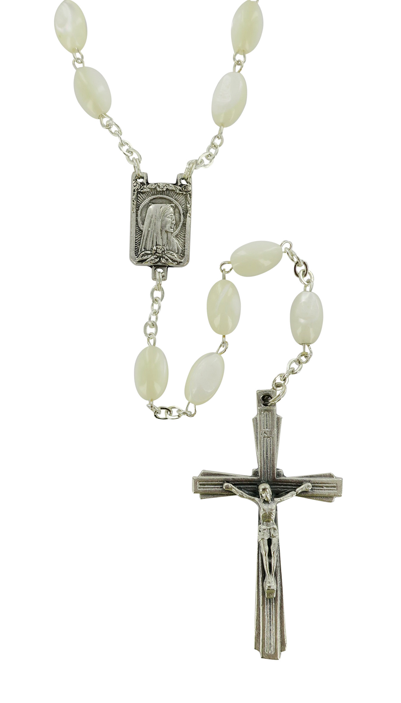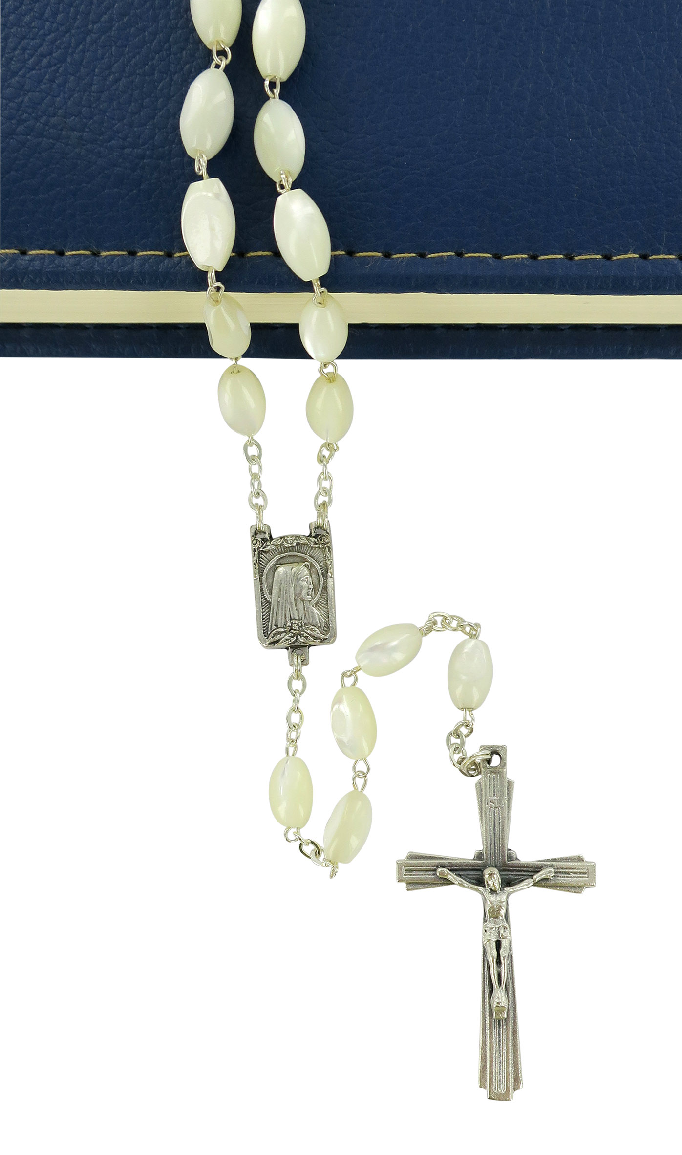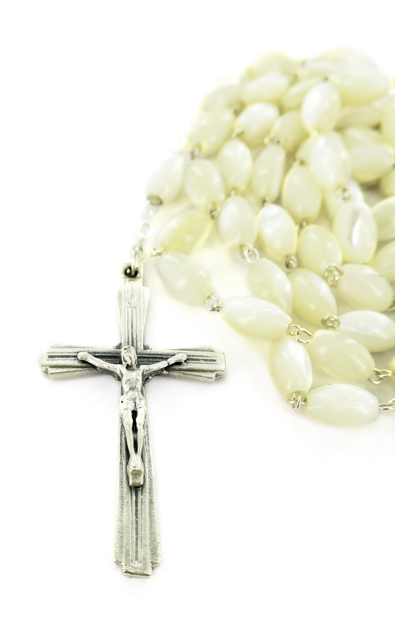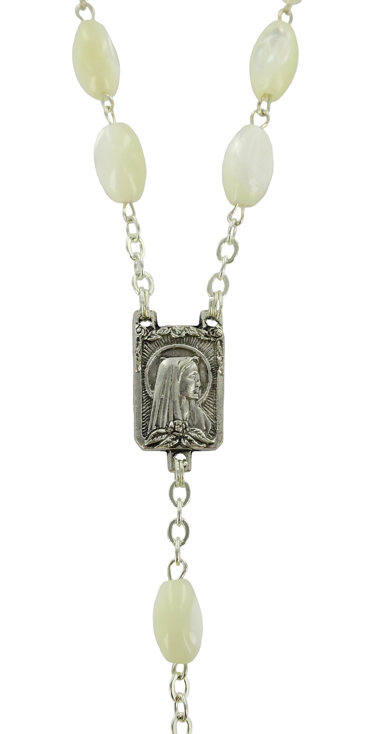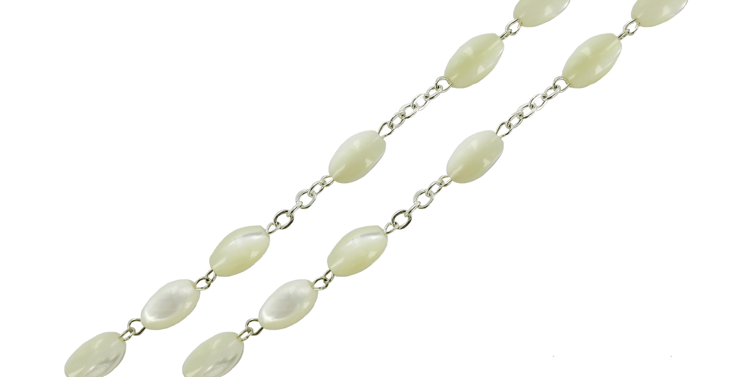 Rosario vera madreperla ovale mm 6 legatura ottone argentato