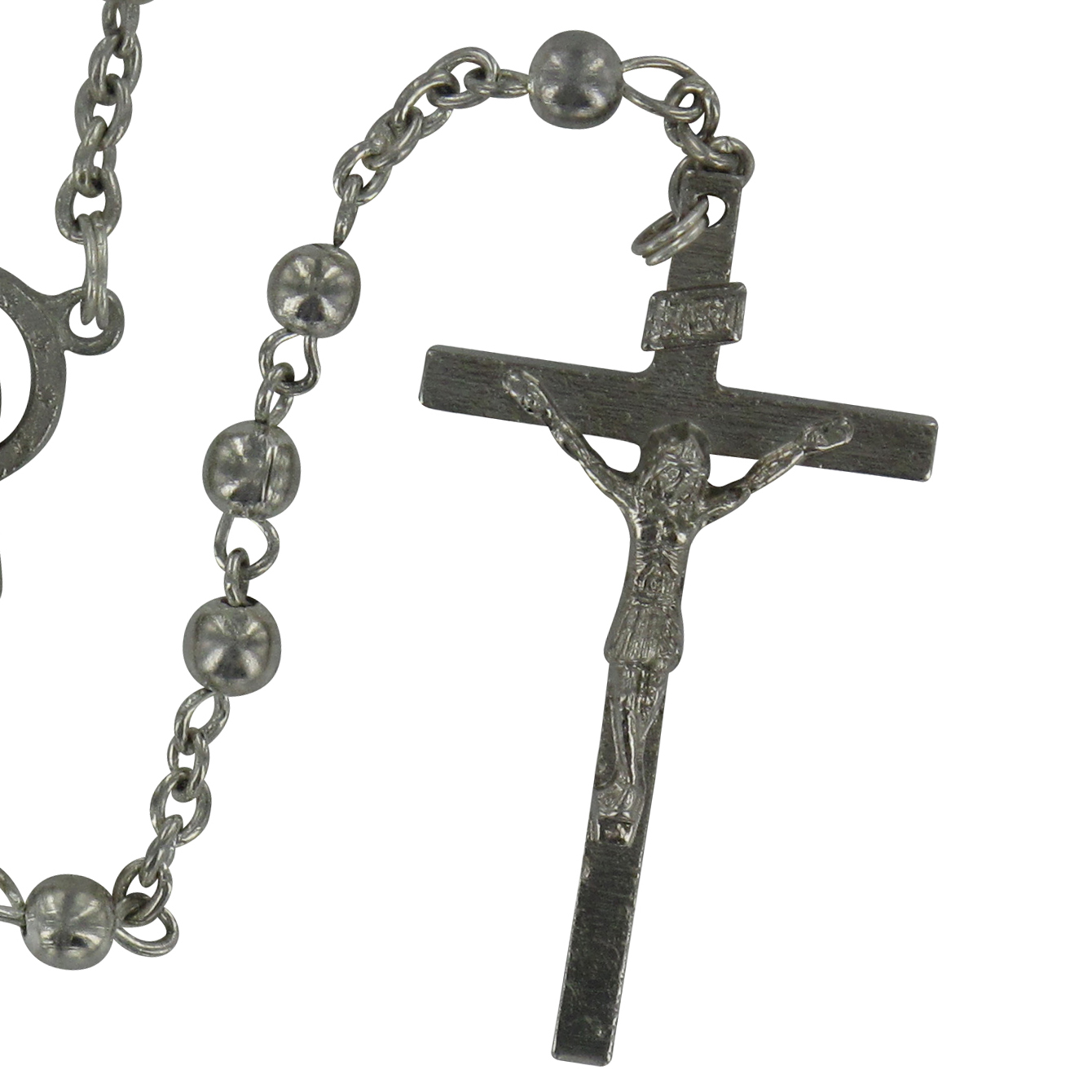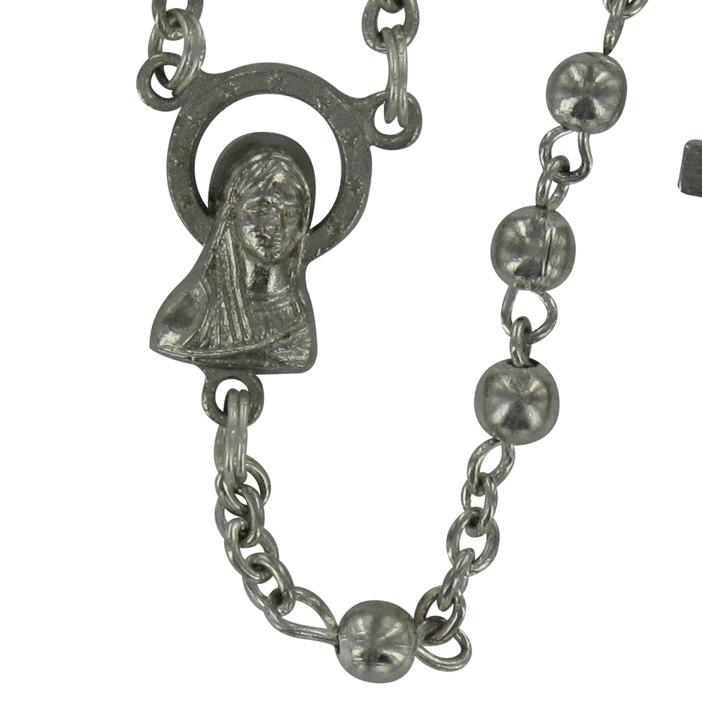 Rosario in metallo argentato diametro 5 mm con legatura a mano