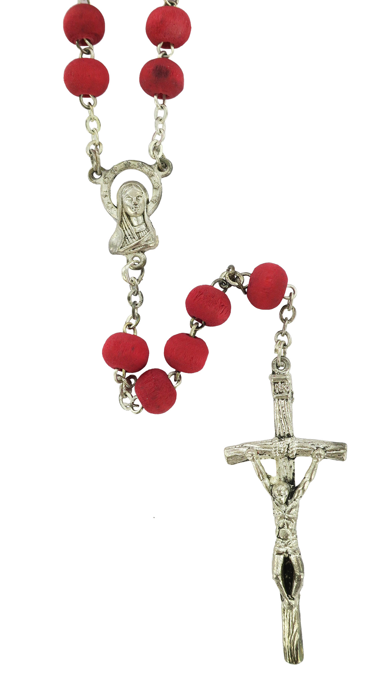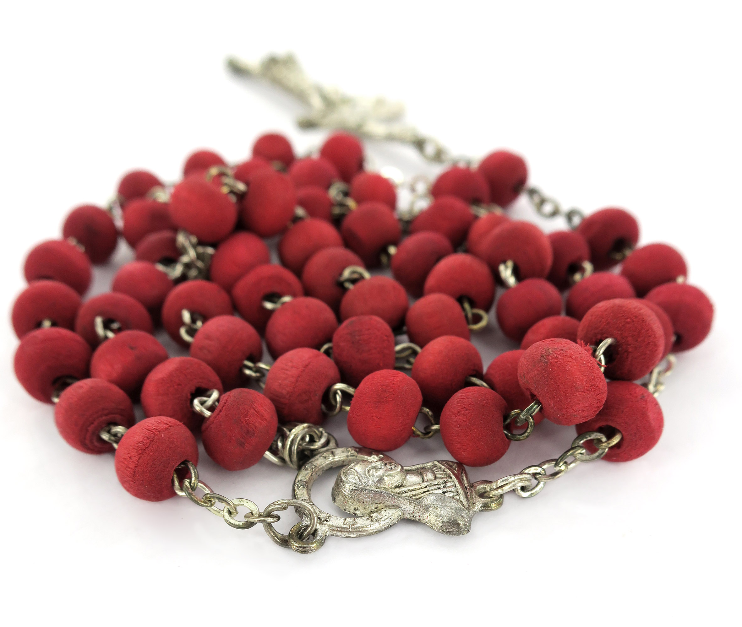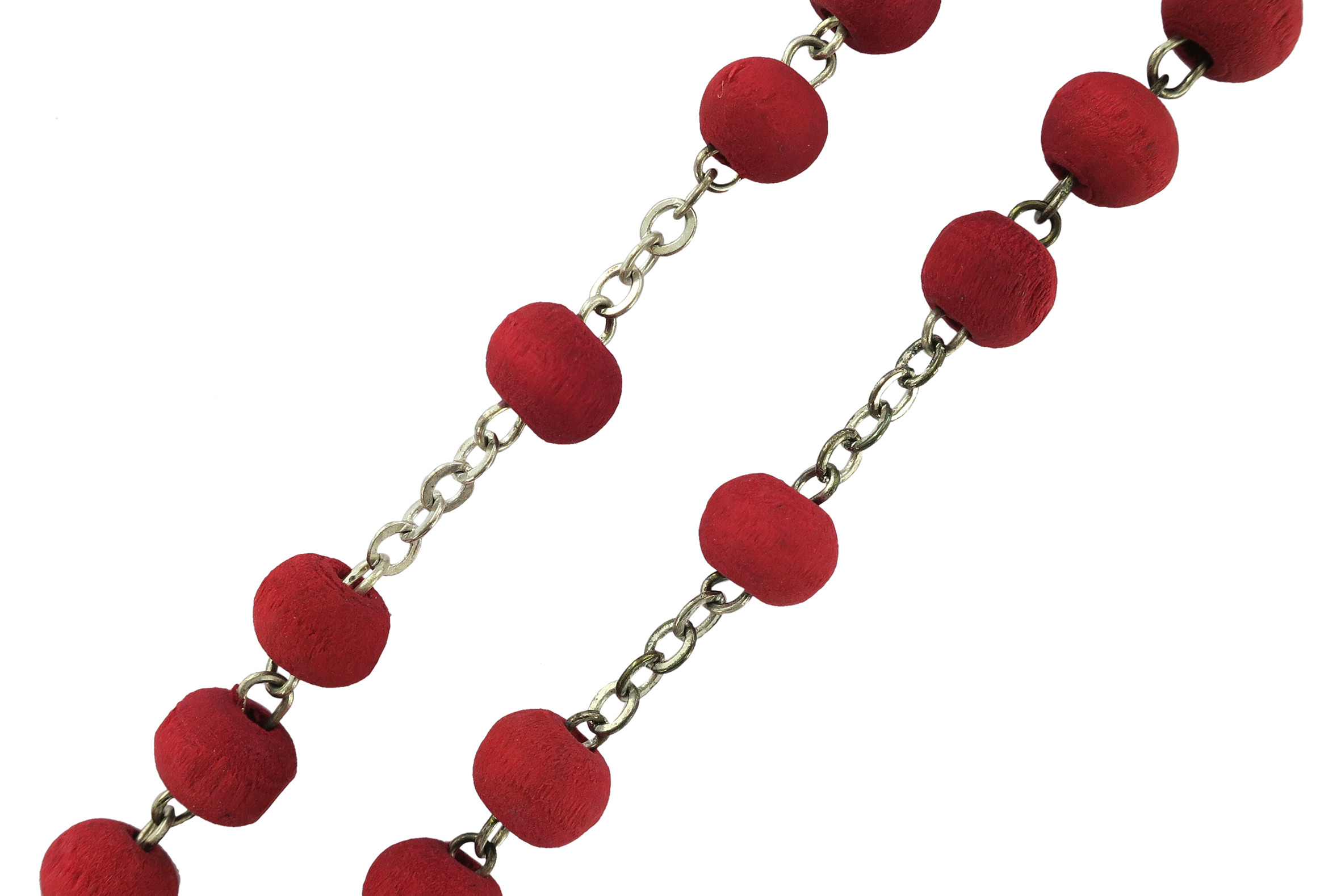 Rosario profumato petalo di rosa, tondo in legno, Ø 7 mm legatura a mano in metallo argentato con scatola