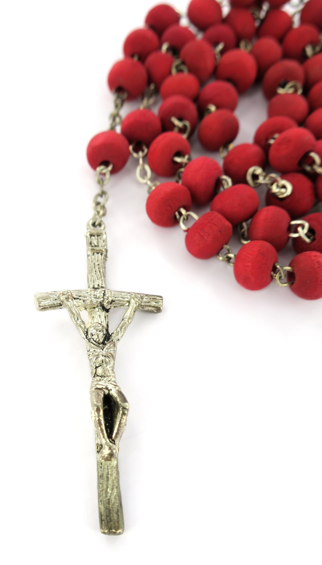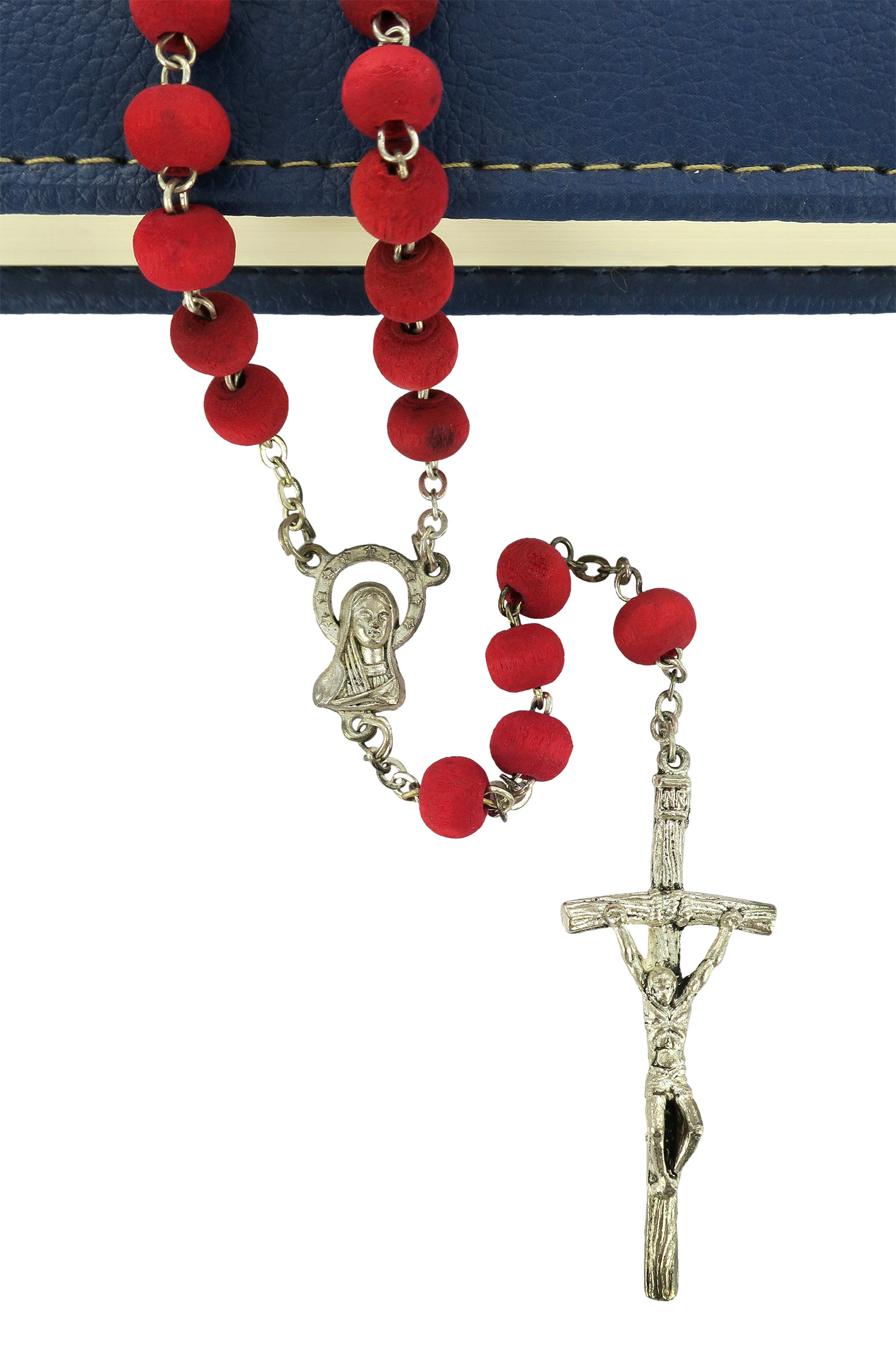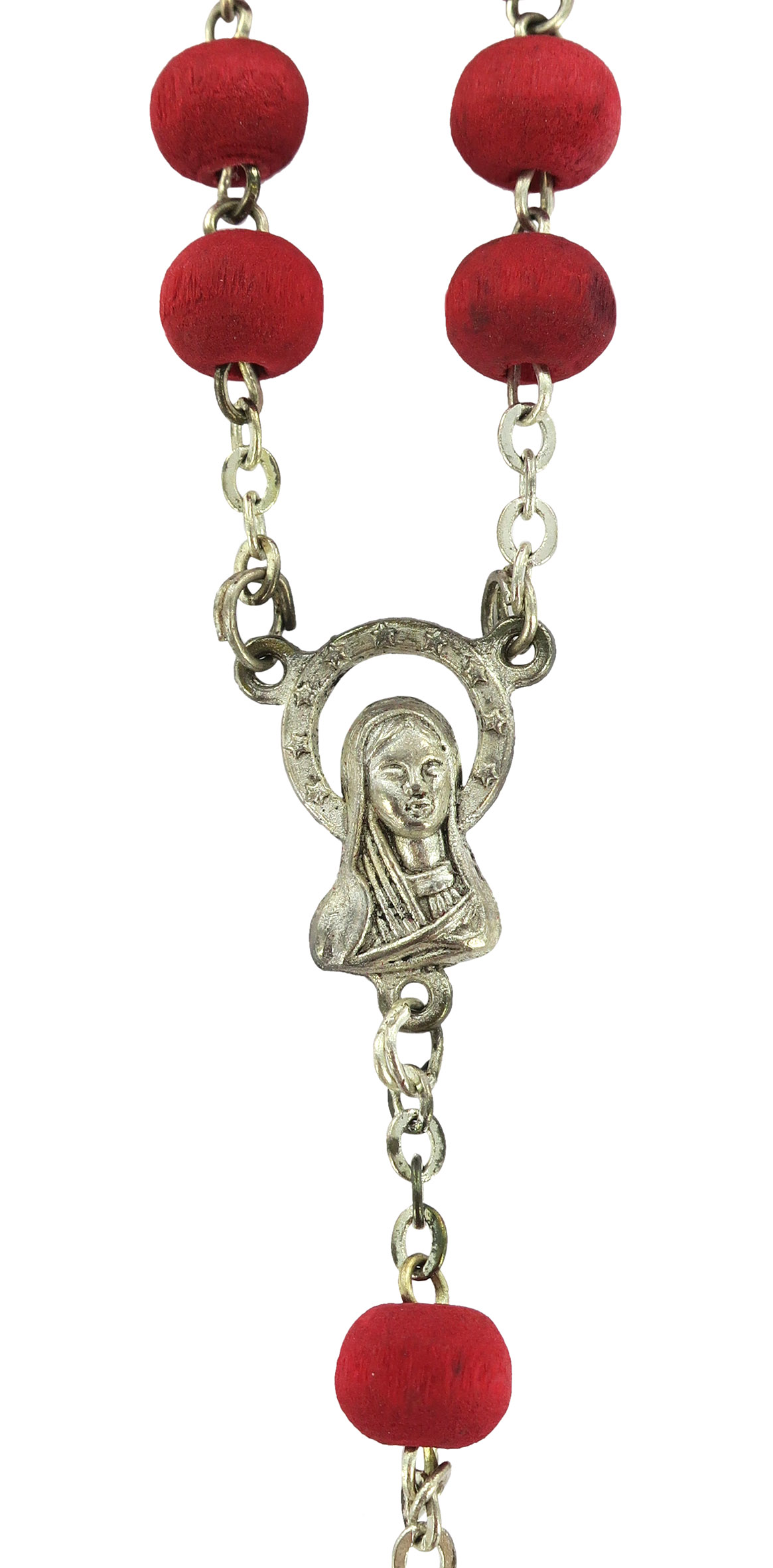 Rosario profumato petalo di rosa, tondo in legno, Ø 7 mm legatura a mano in metallo argentato con scatola