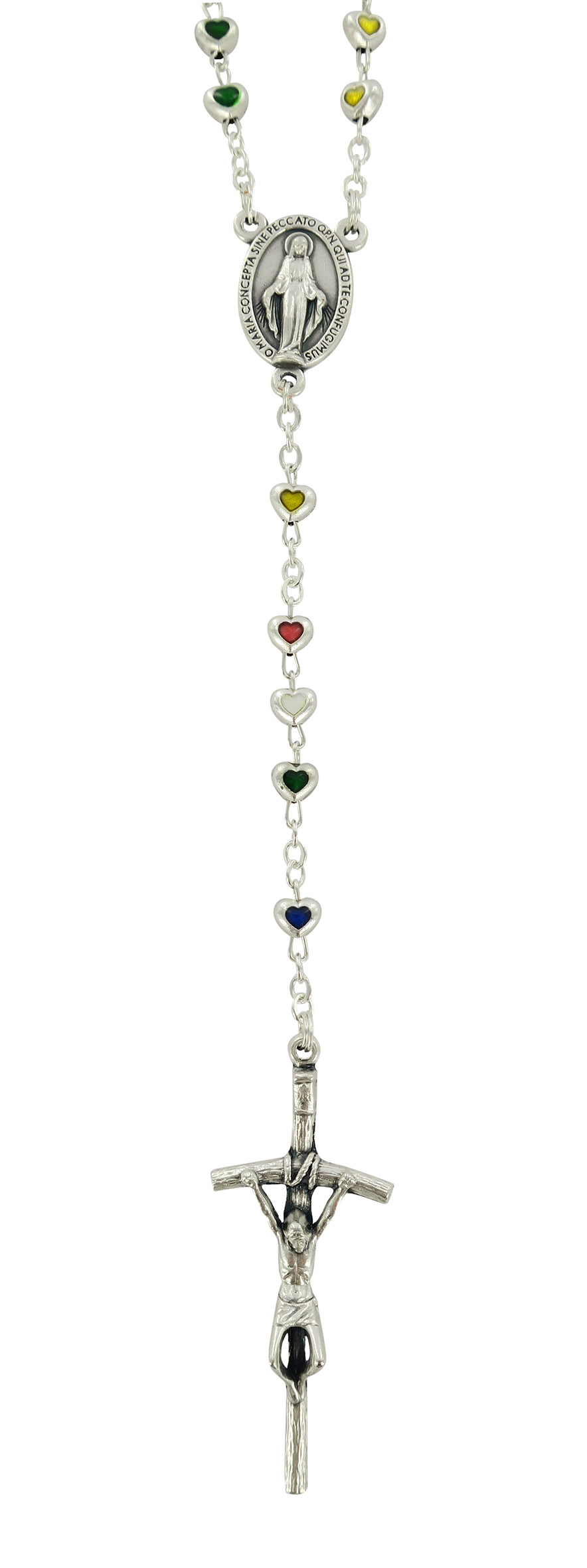 Il Rosario missionario ha lo scopo di far pregare per la pace nel mondo e per la conversione di tutti gli uomini. I cinque colori diversi rappresentano i cinque continenti e richiamano l'intenzione secondo la quale si deve pregare. La decina del Rosario, quella bianca è per la vecchia EUROPA, perche' sia capace di riappropriarsi della forza evangelizzatrice che ha generato tante Chiese; la decina gialla è per l'ASIA, che esplode di vita e di giovinezza; la decina verde è per l'AFRICA, provata dalla sofferenza, ma disponibile all'annuncio; la decina rossa è per l'AMERICA, vivaio di nuove forze missionarie; la decina azzurra è per il continente dell'OCEANIA e dell'Australia che attende una più capillare diffusione del Vangelo.