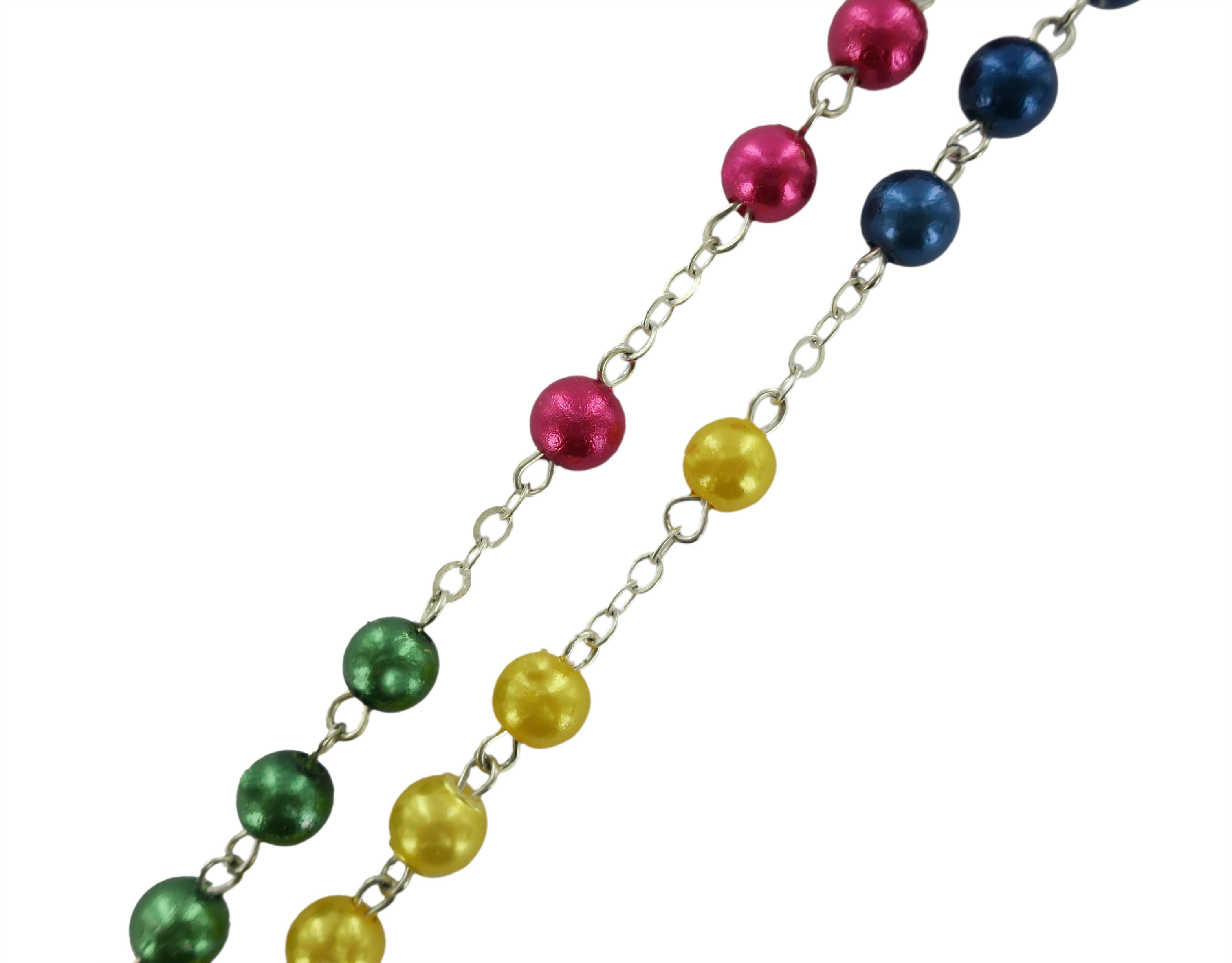 Rosario missionario con grani tondi in plastica di mm 6 legato in metallo argentato.