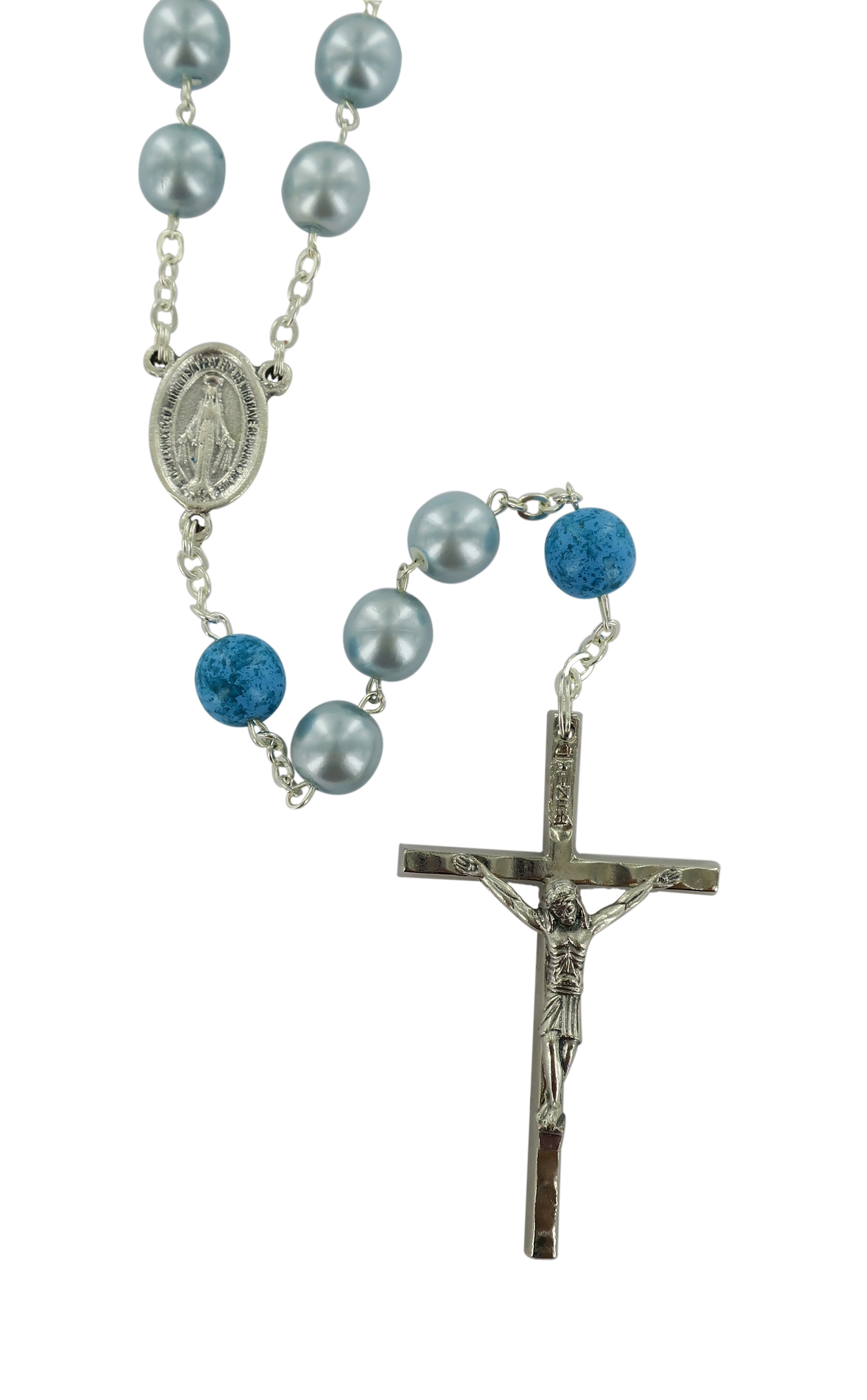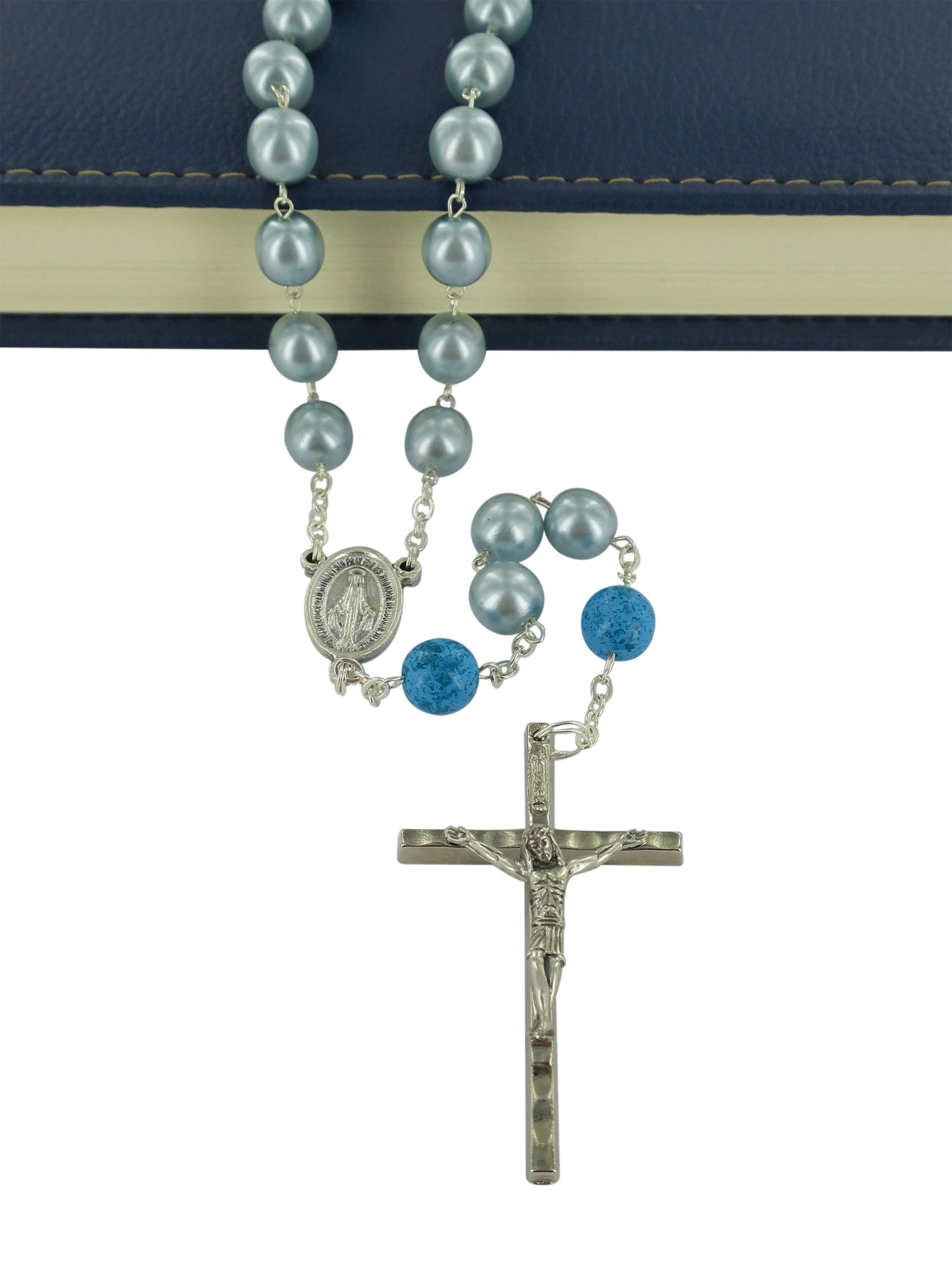 Rosario imitazione perla vetro azzurro Pater p. dura