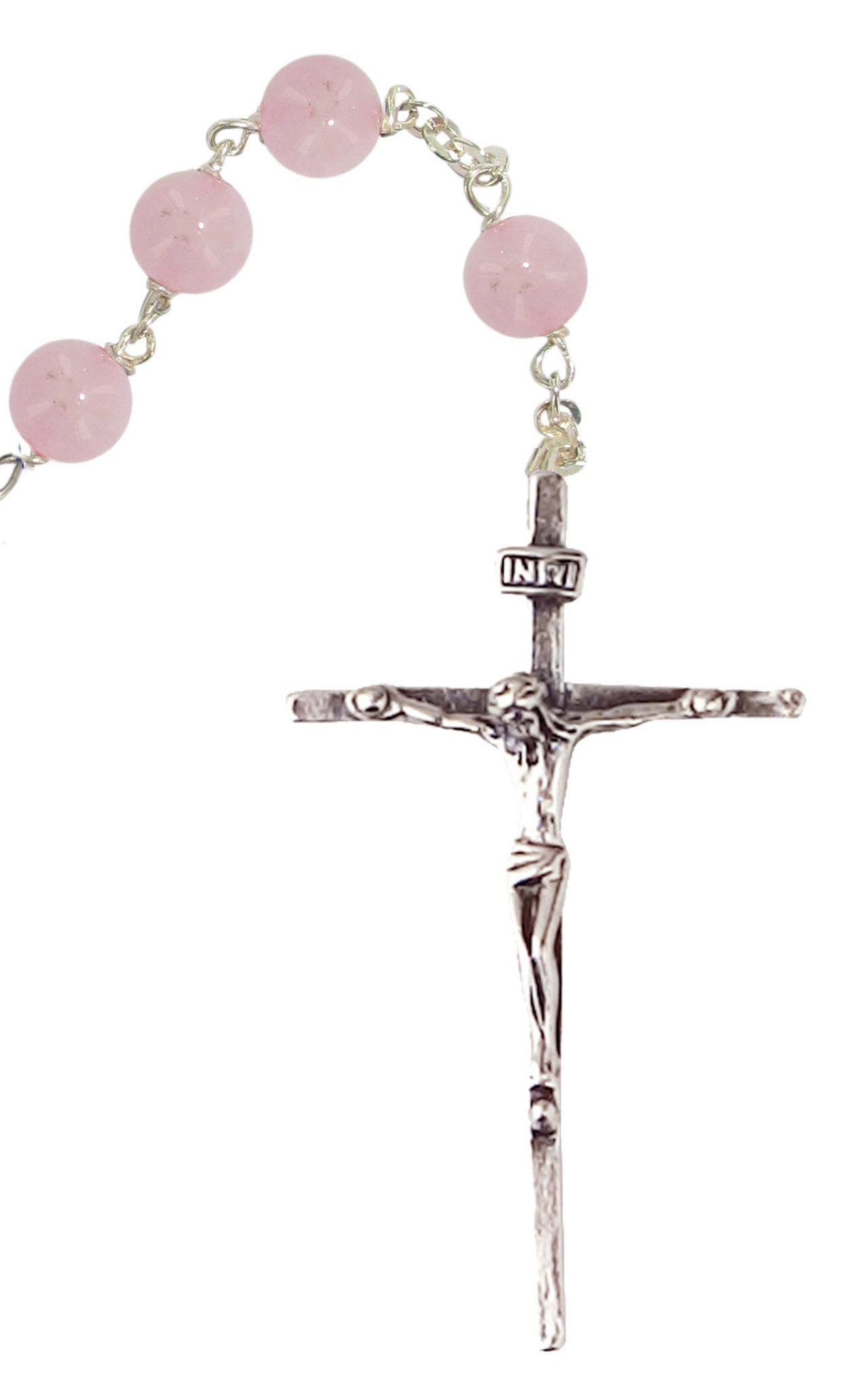Rosario in argento con grani in quarzo rosa da Ø 6 mm