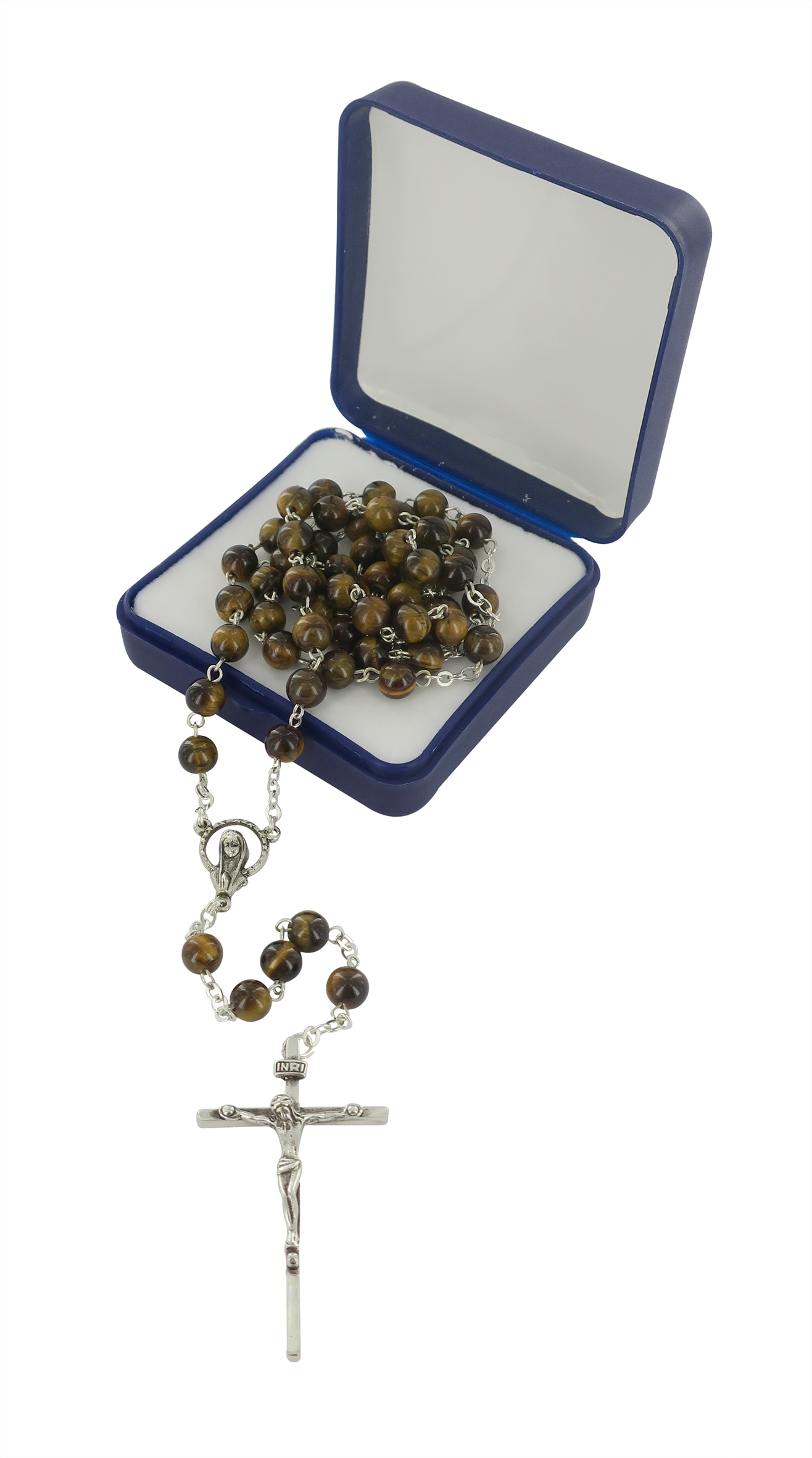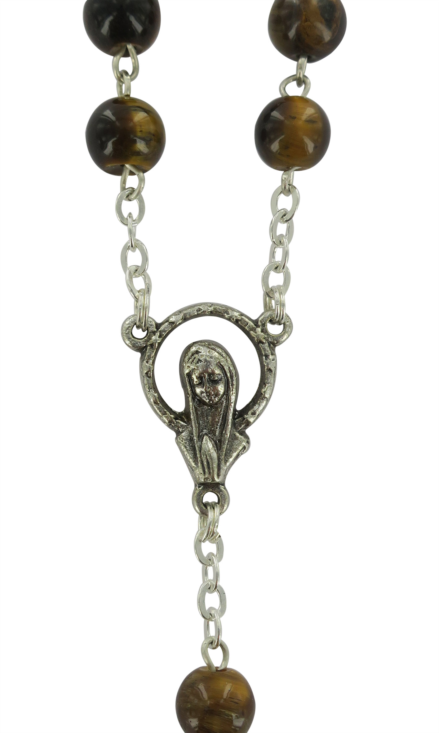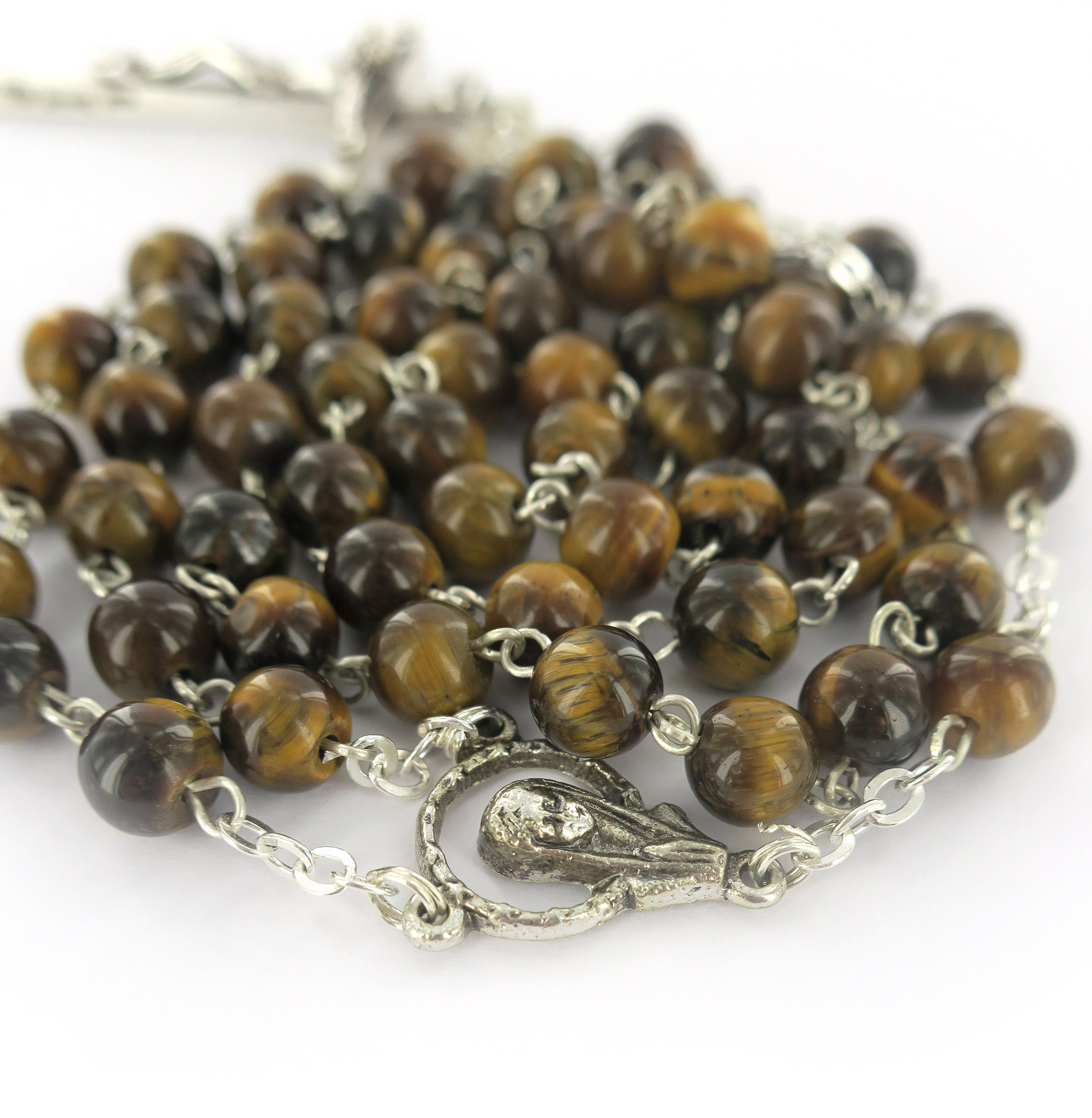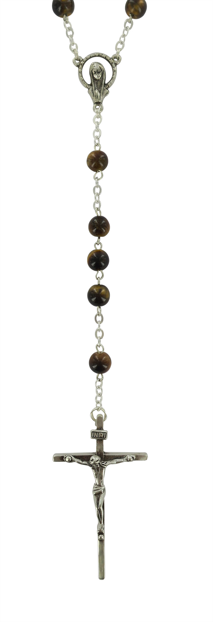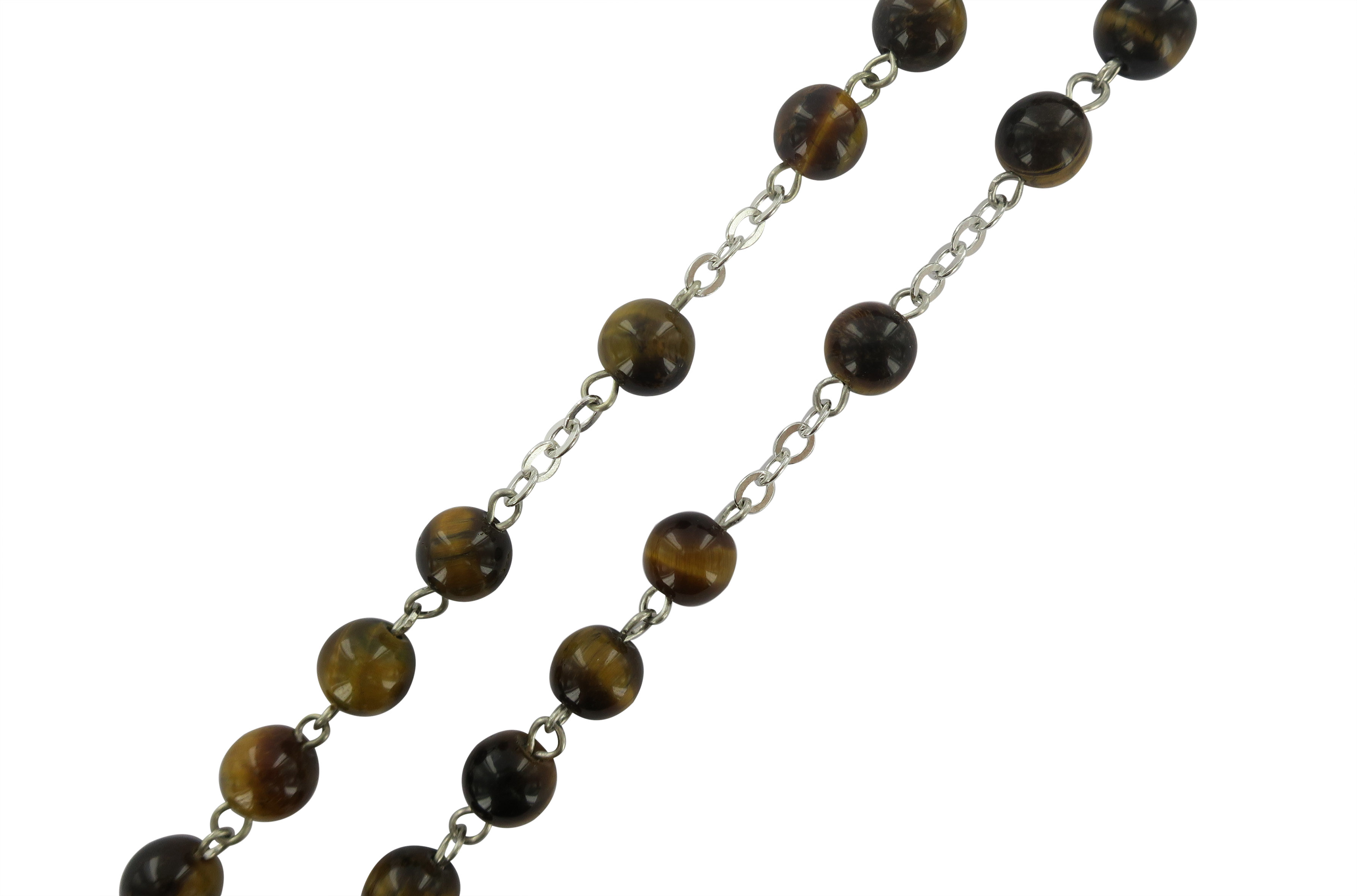 Rosario in argento con grani tondi in occhio di tigre da Ø 6 mm