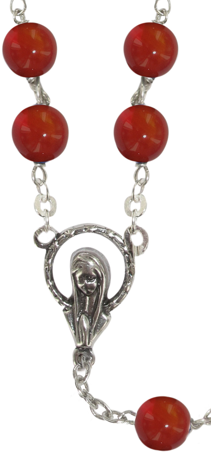 Rosario in argento in corniola con grani tondi mm 6